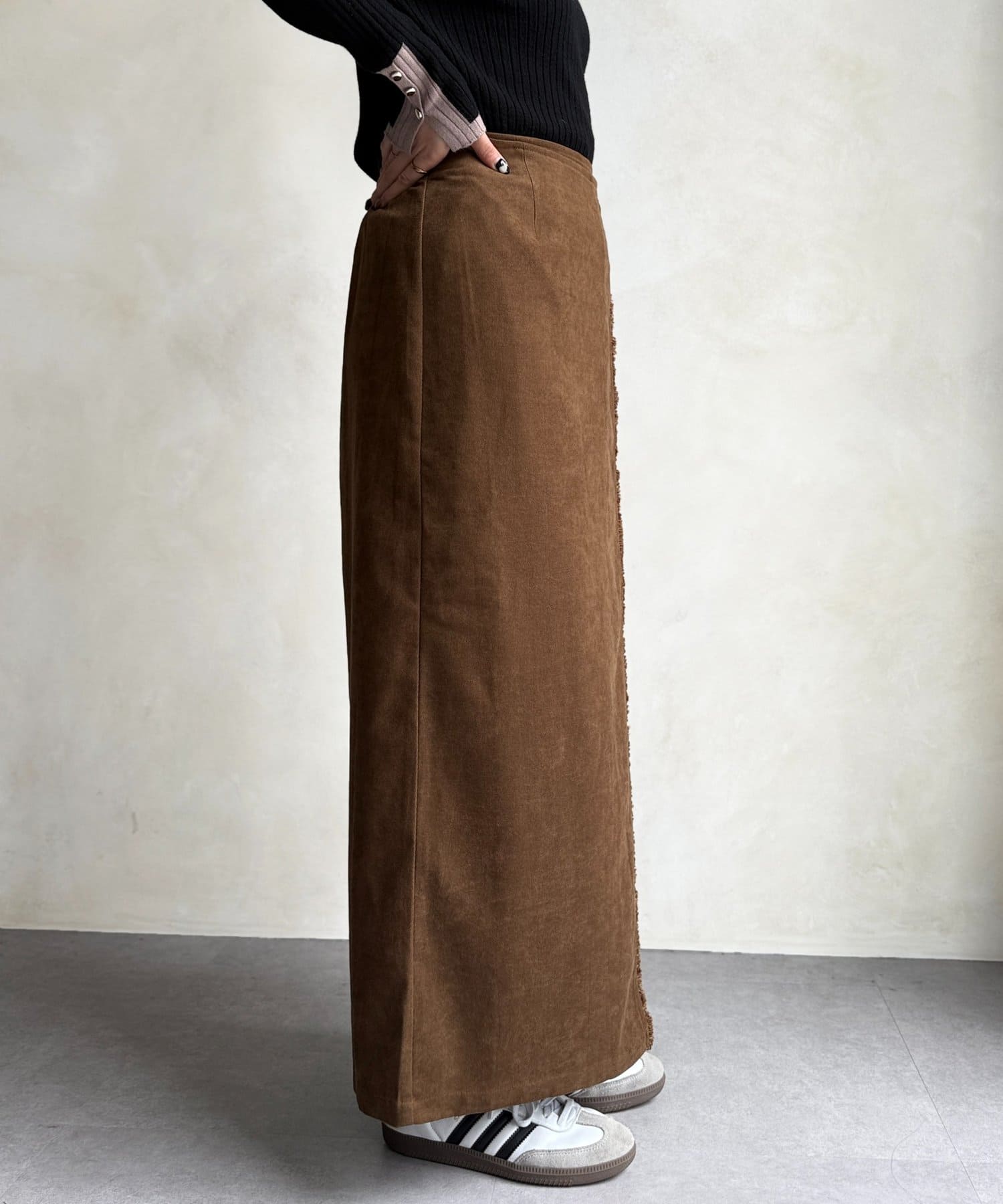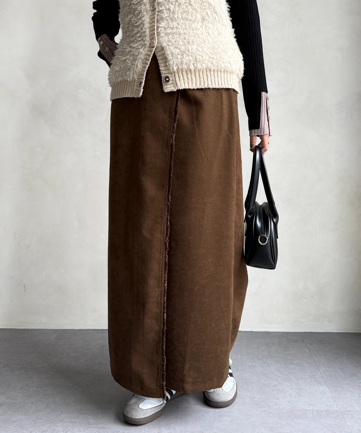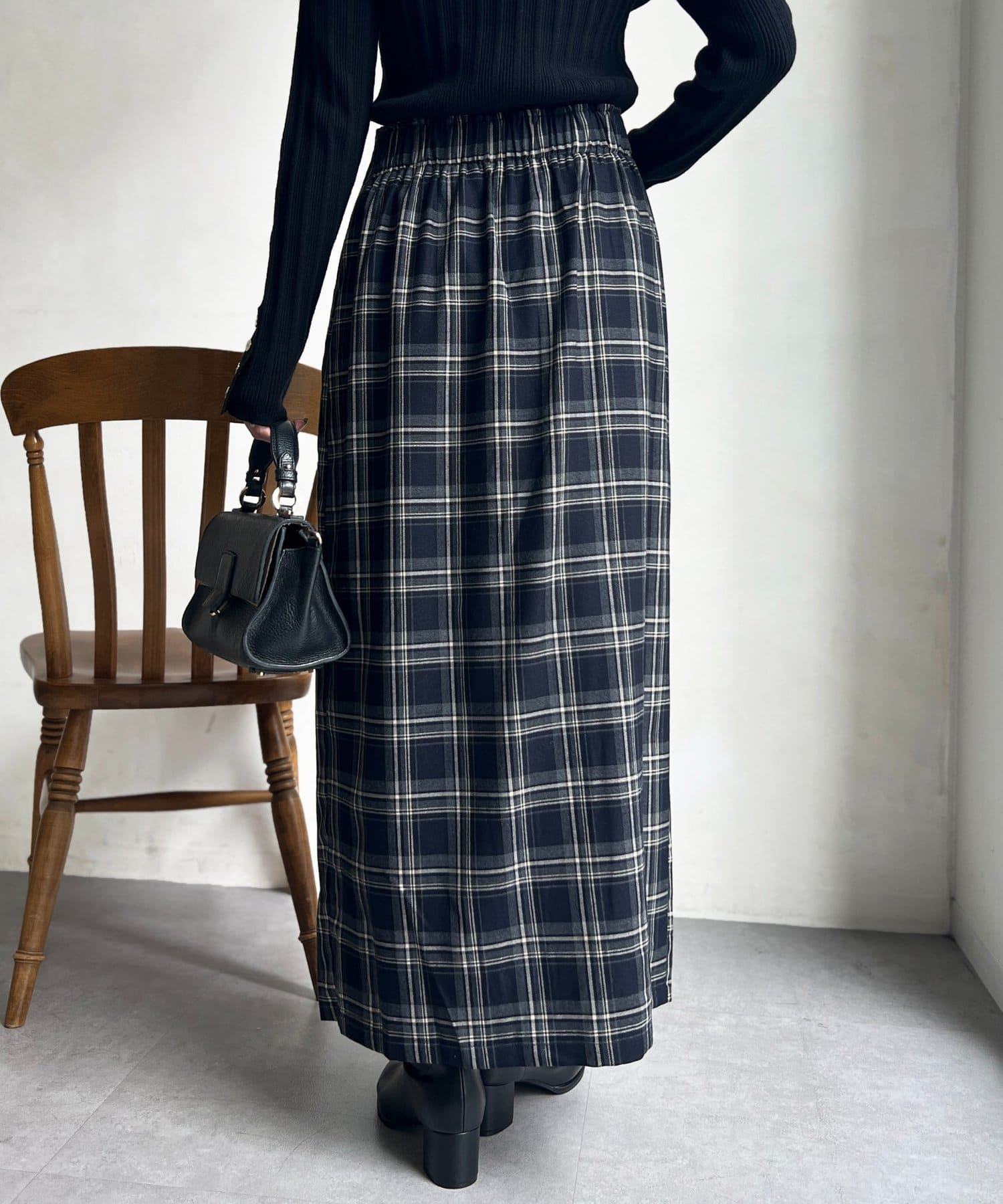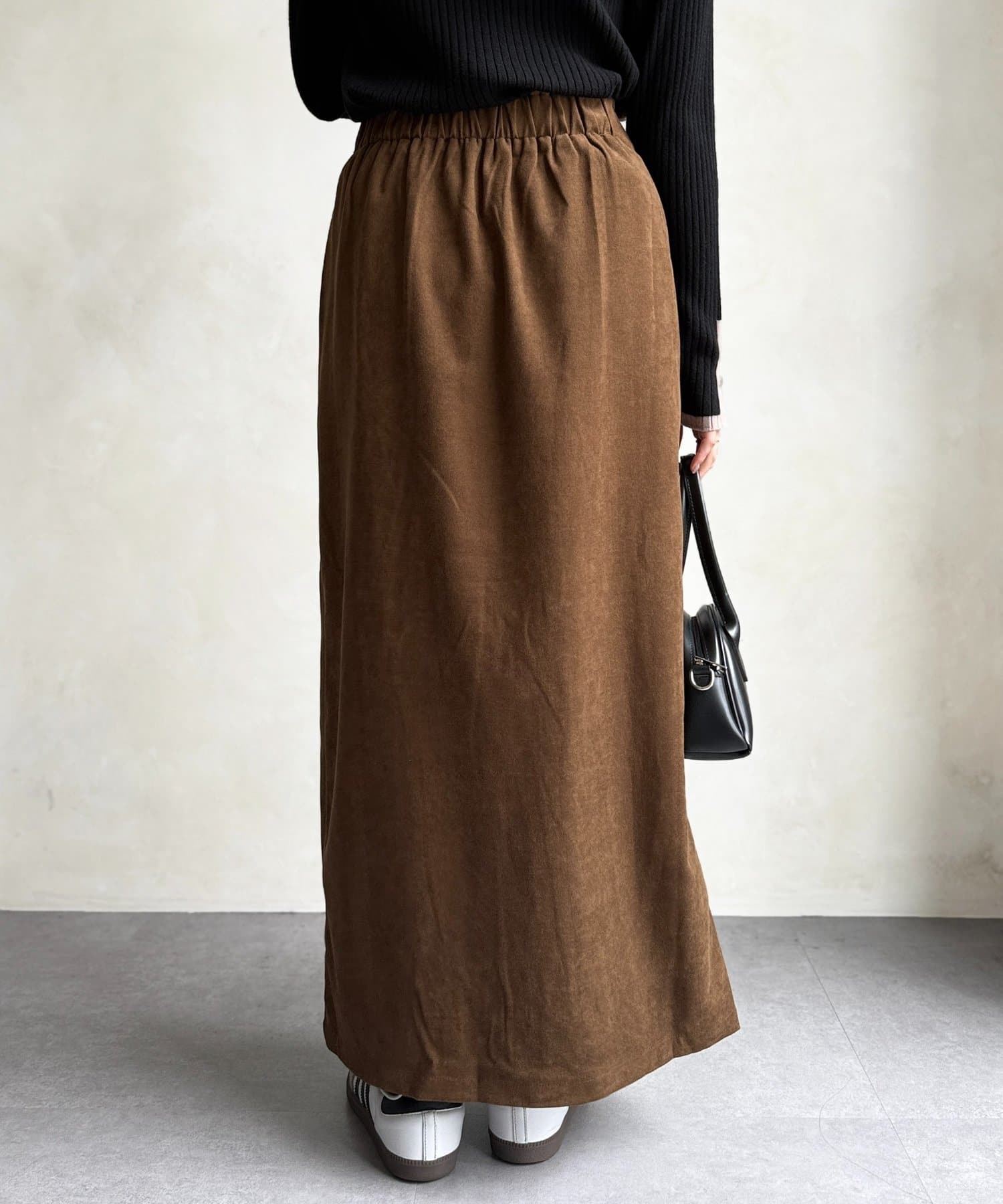 後ろウエストがゴム仕様でウエスト回りもストレスフリーで、着脱に便利なサイドジップ付きなのも嬉しいポイント◎
