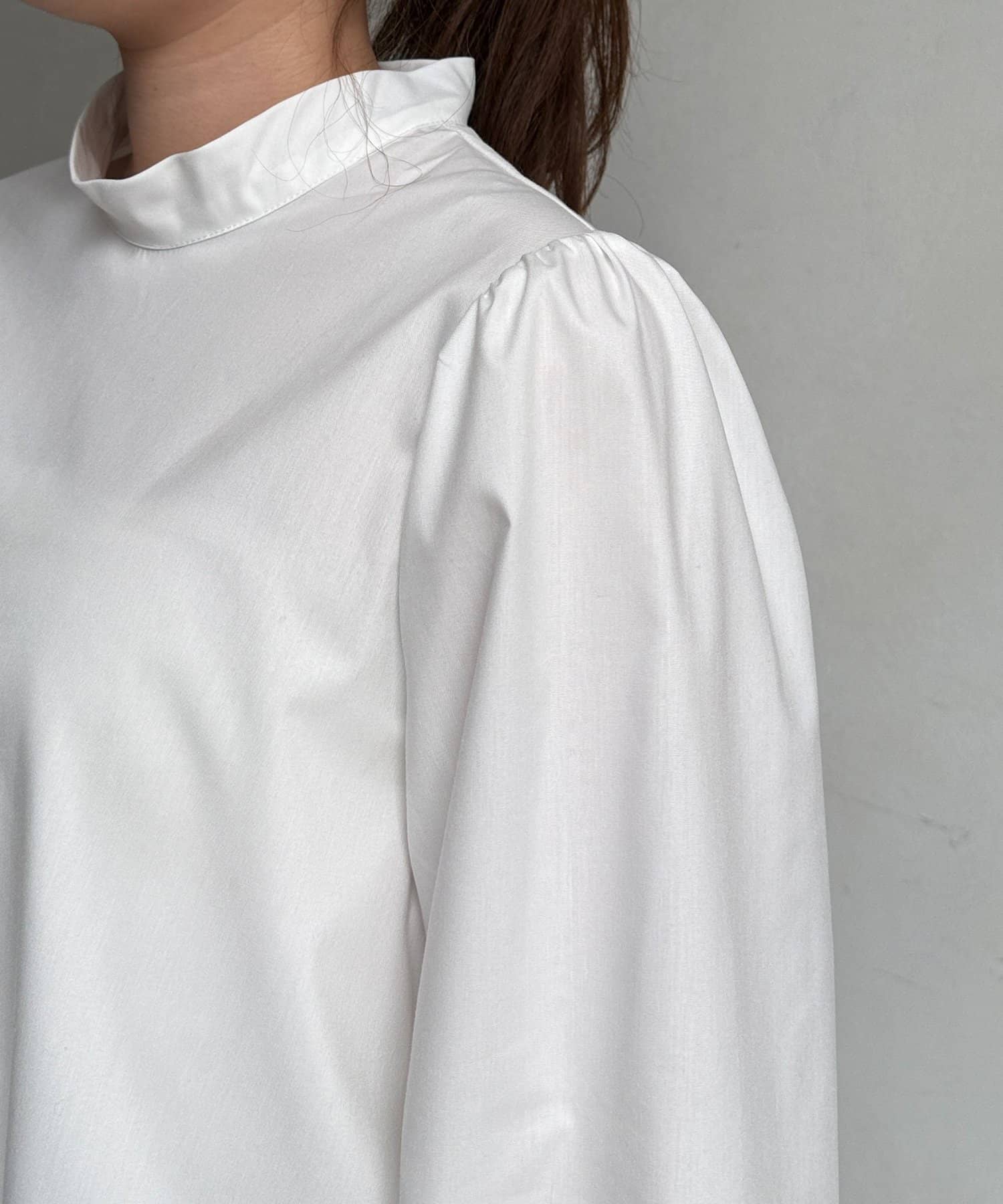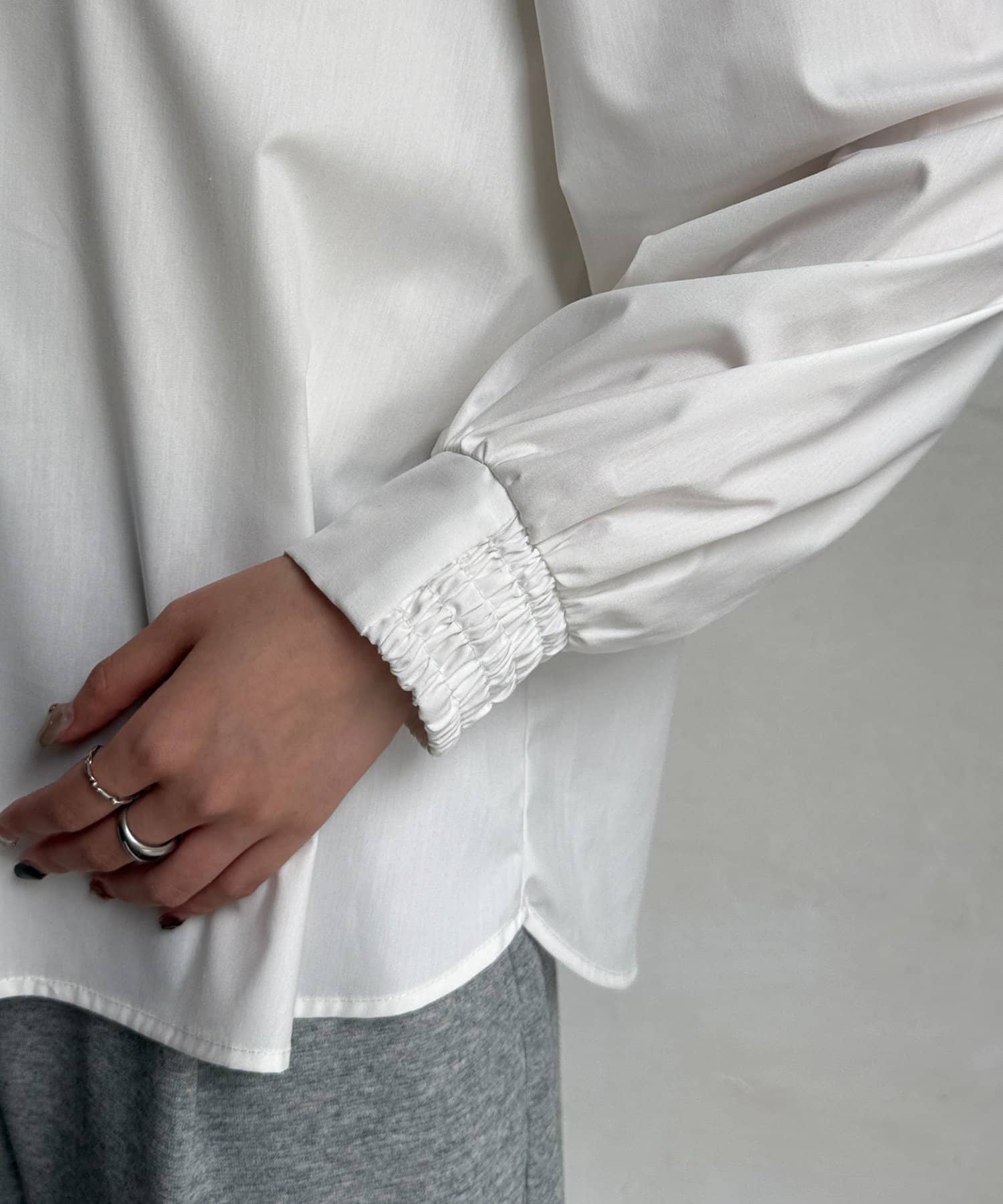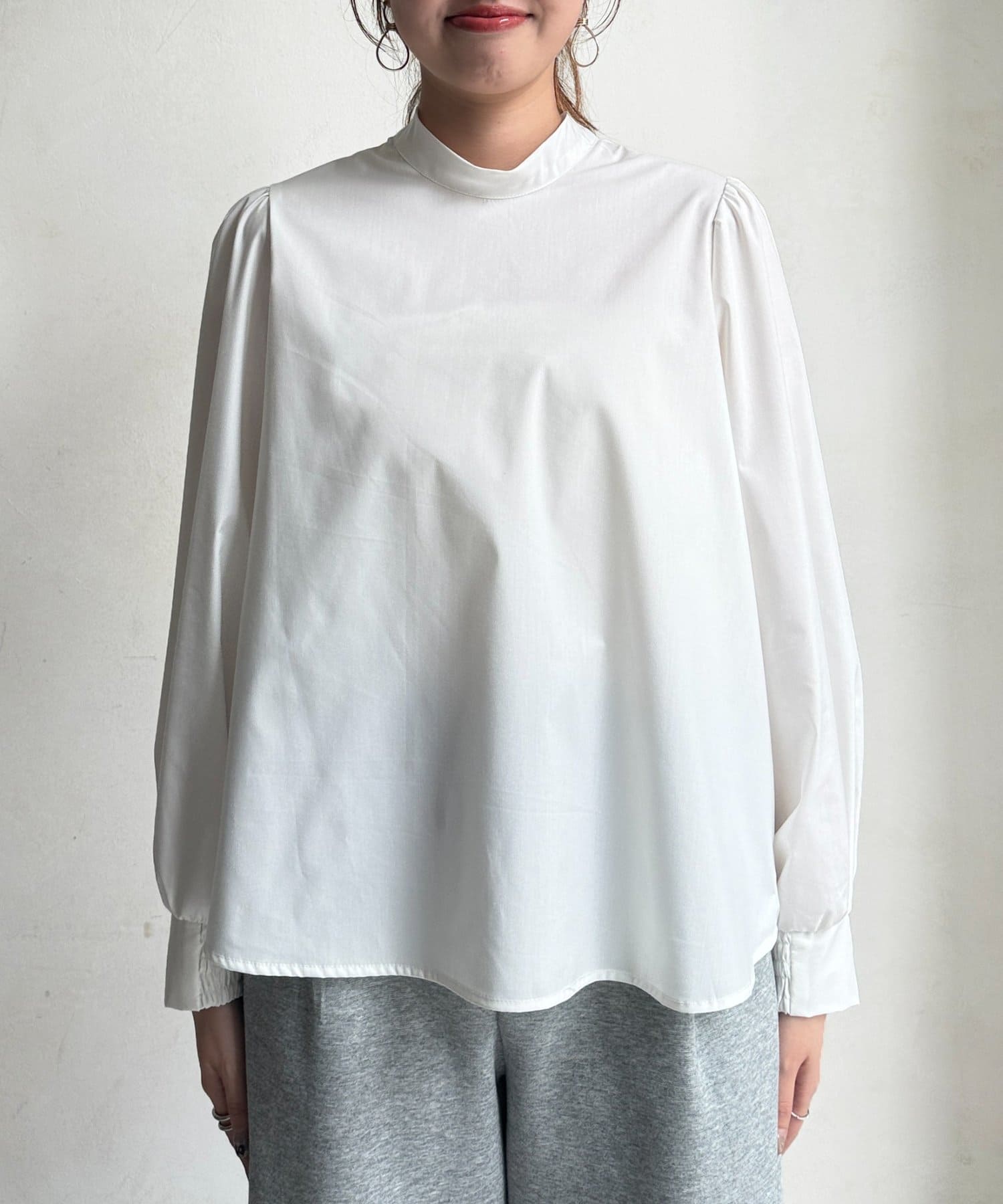 ハリのある素材とボリュームスリーブがオフスタイルにも使いやすい万能アイテム!