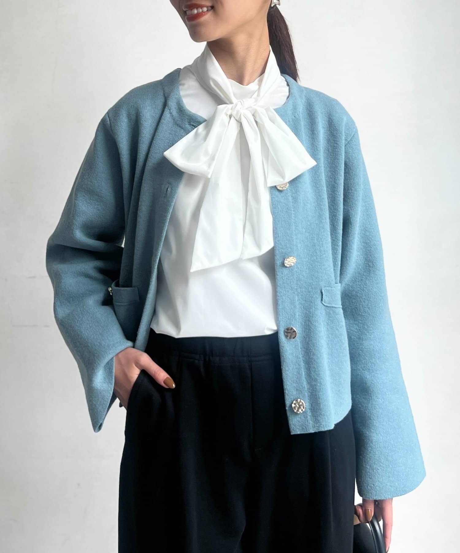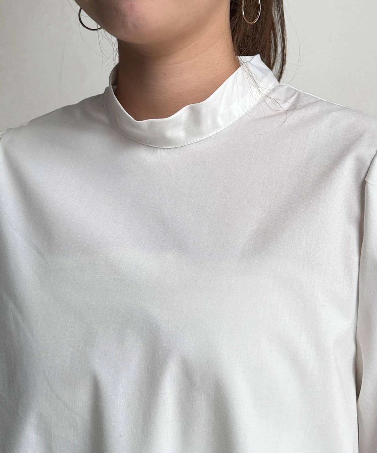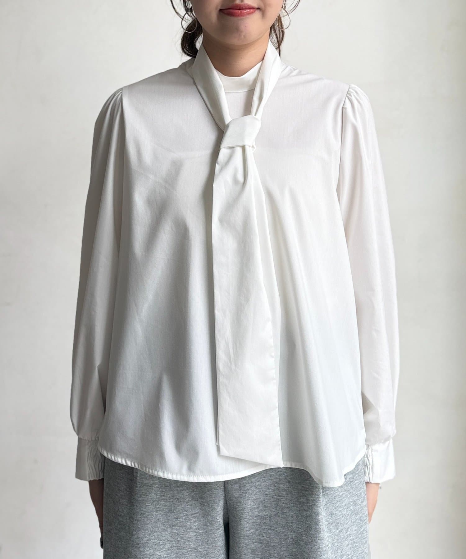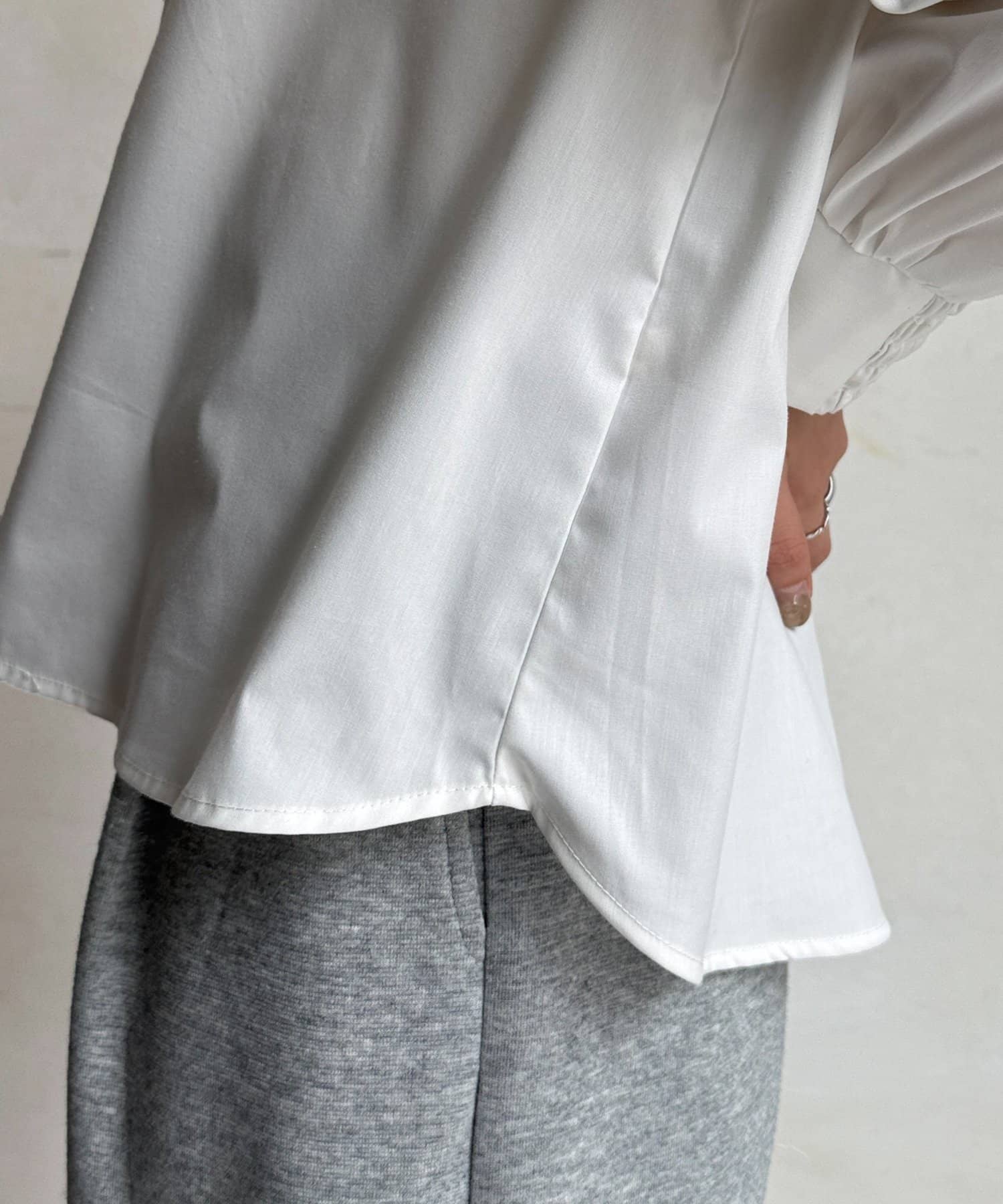 ハリのある素材とボリュームスリーブがオフスタイルにも使いやすい万能アイテム!