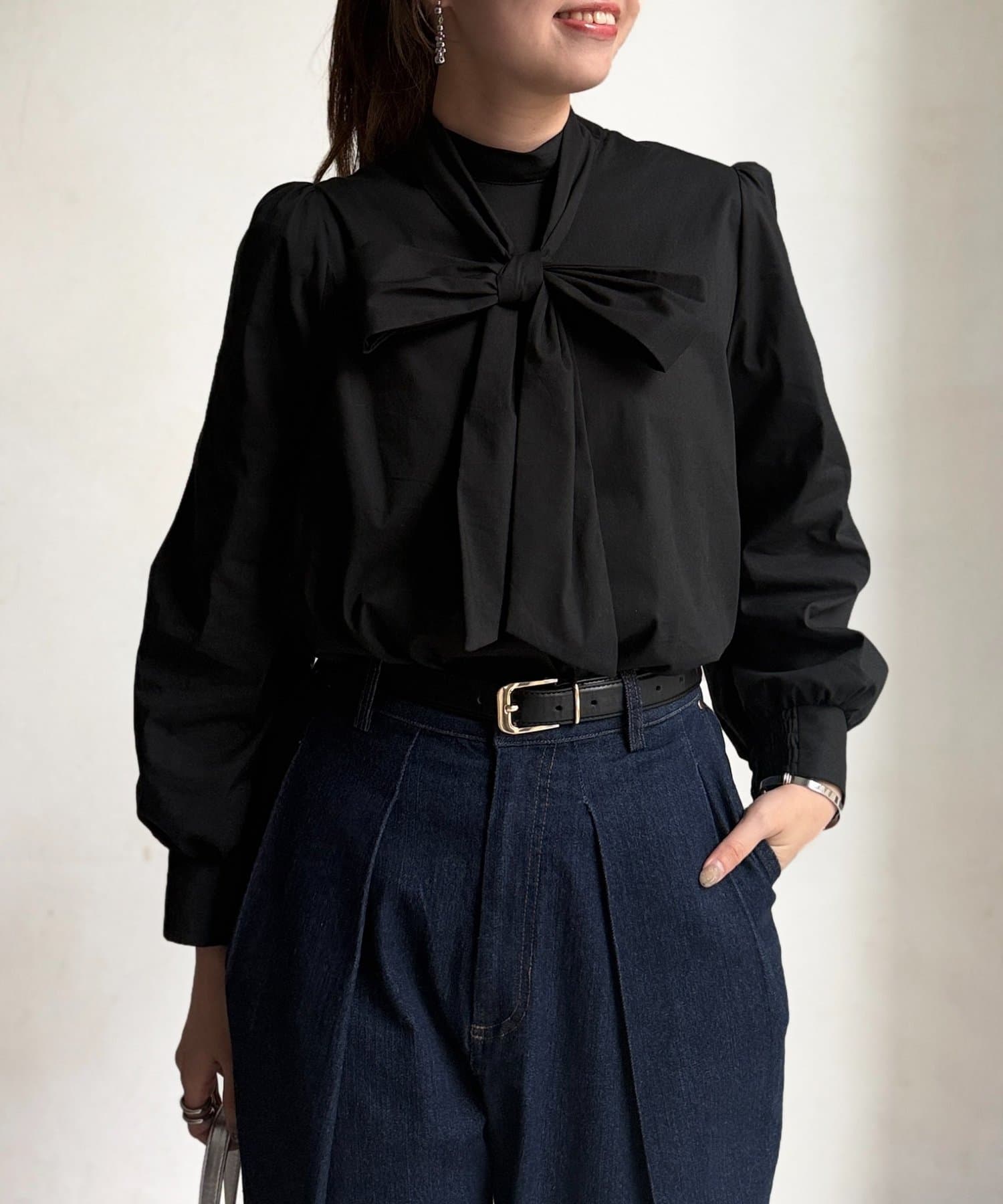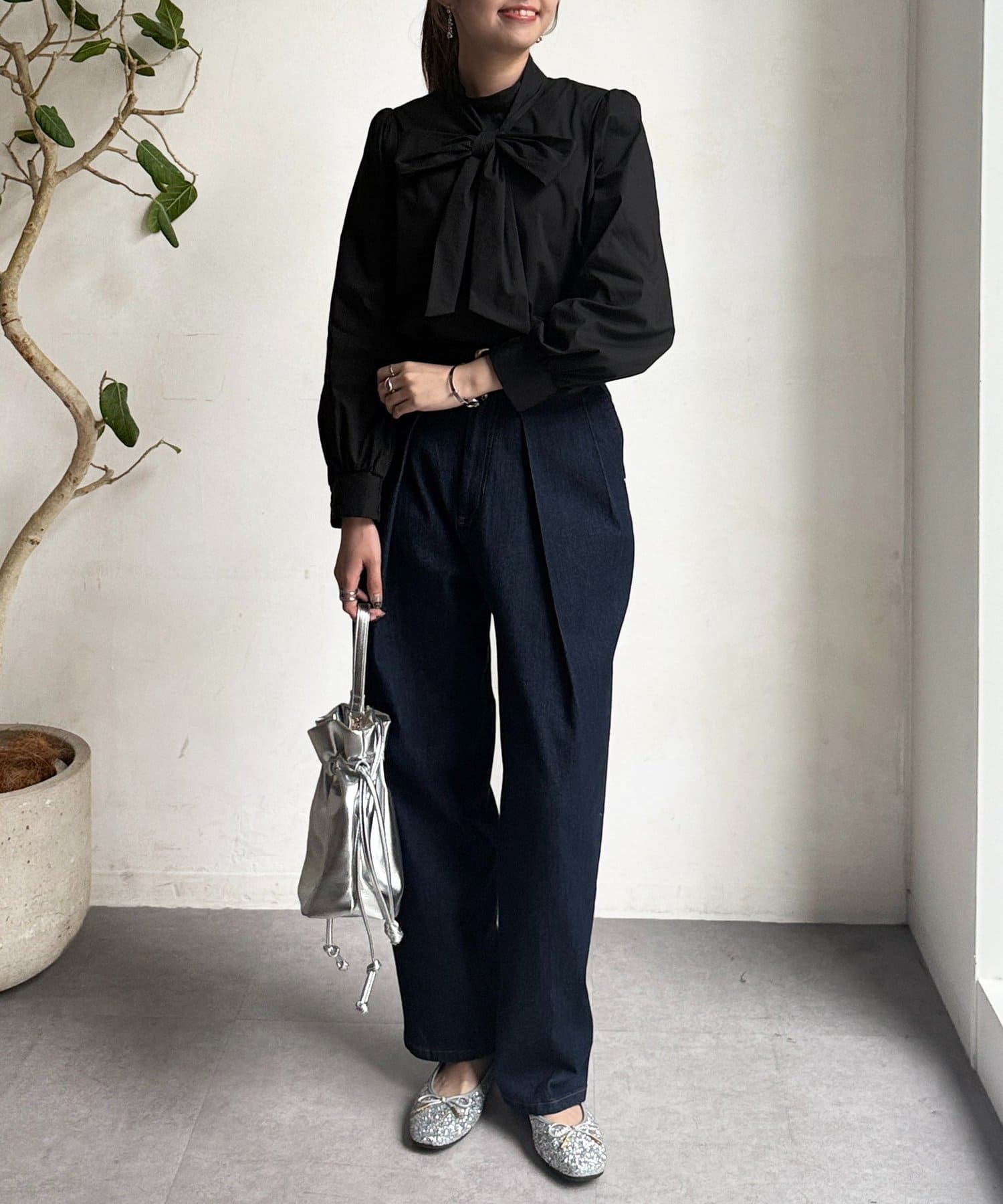 細めのリボンが甘くなりすぎず程よくフェミニンな印象にしてくれます♪