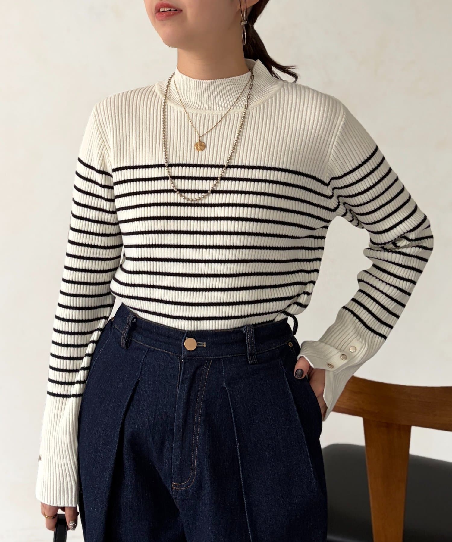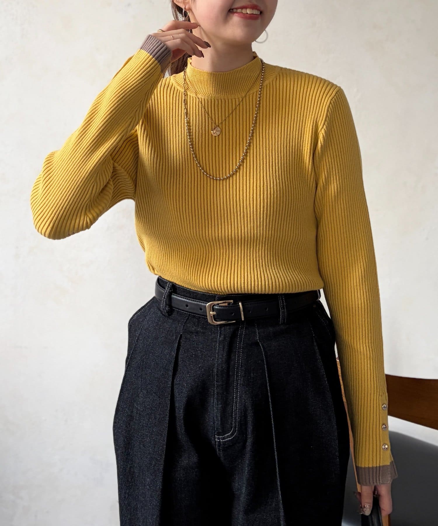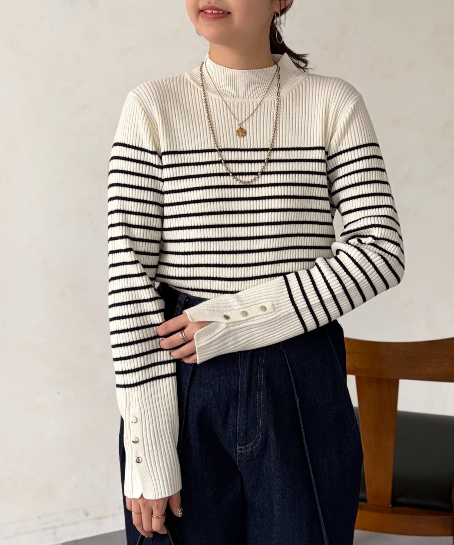 絶妙なプチハイネックのデザインがこなれた印象になり、ハイネックが苦手な方にもおすすめです ♪
