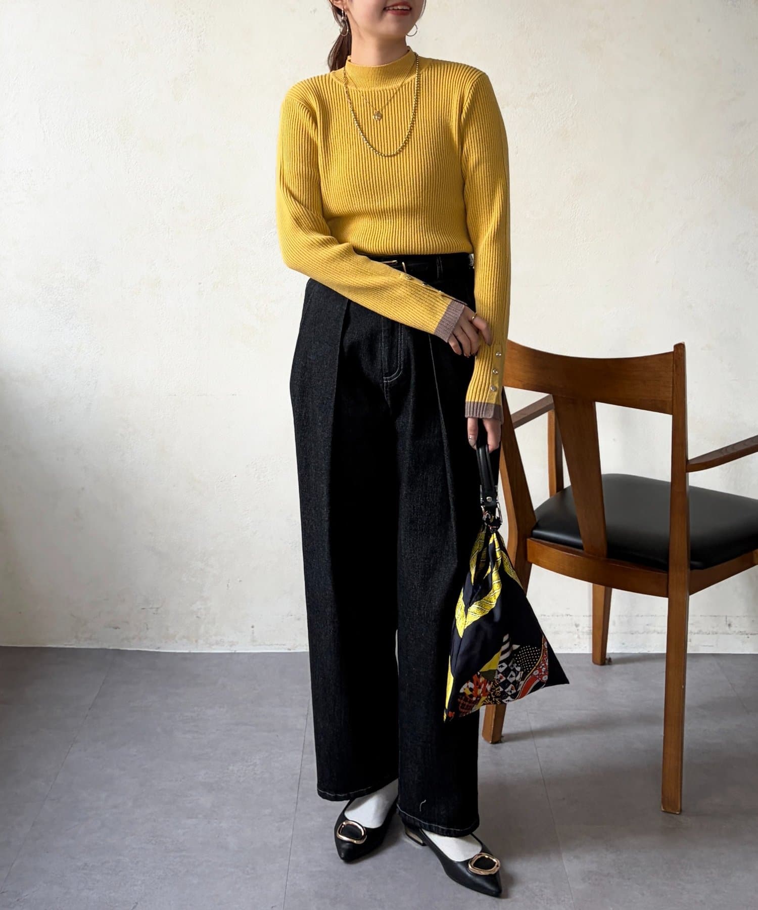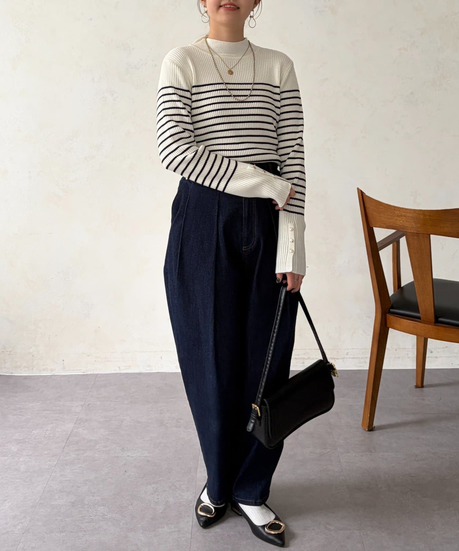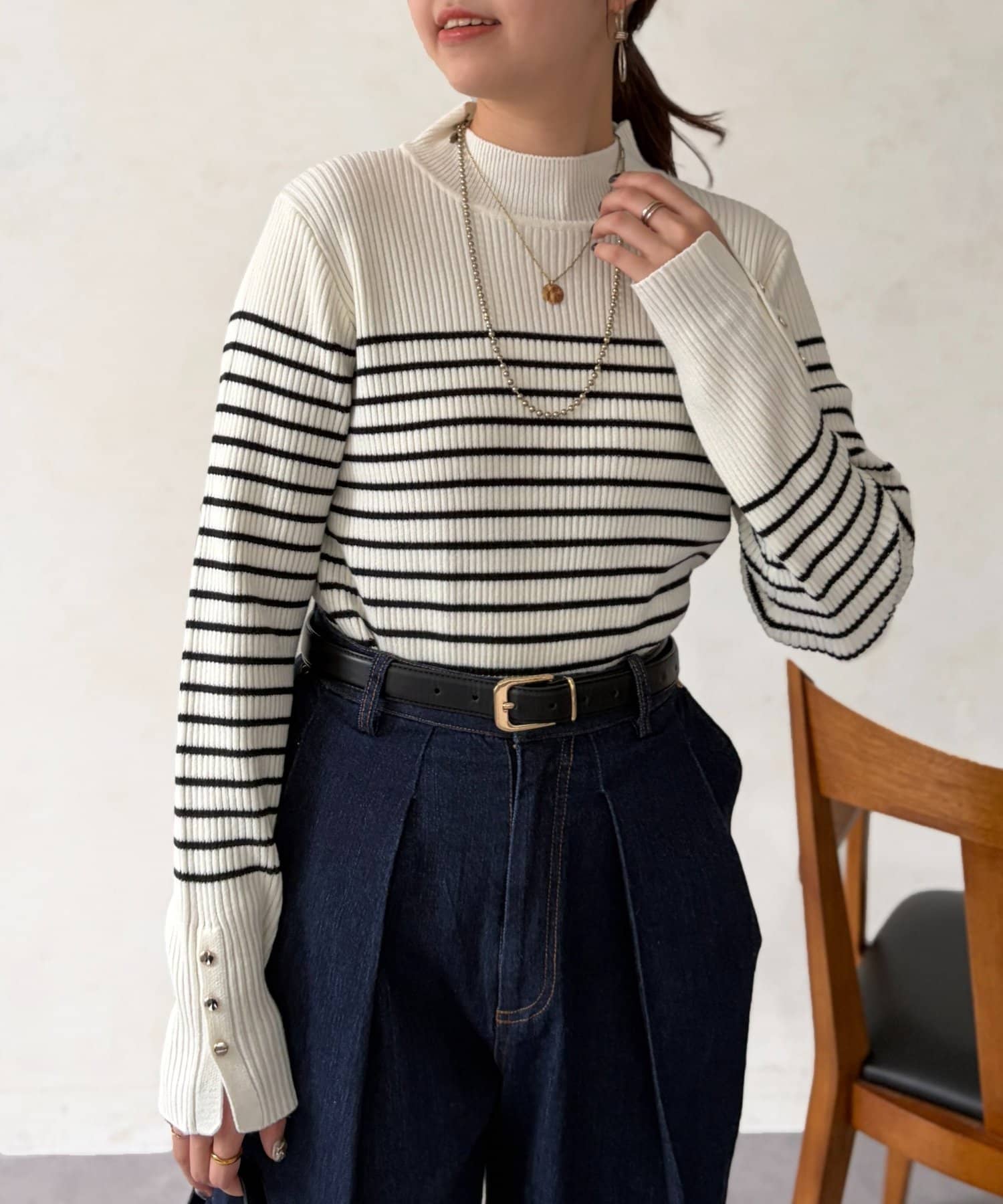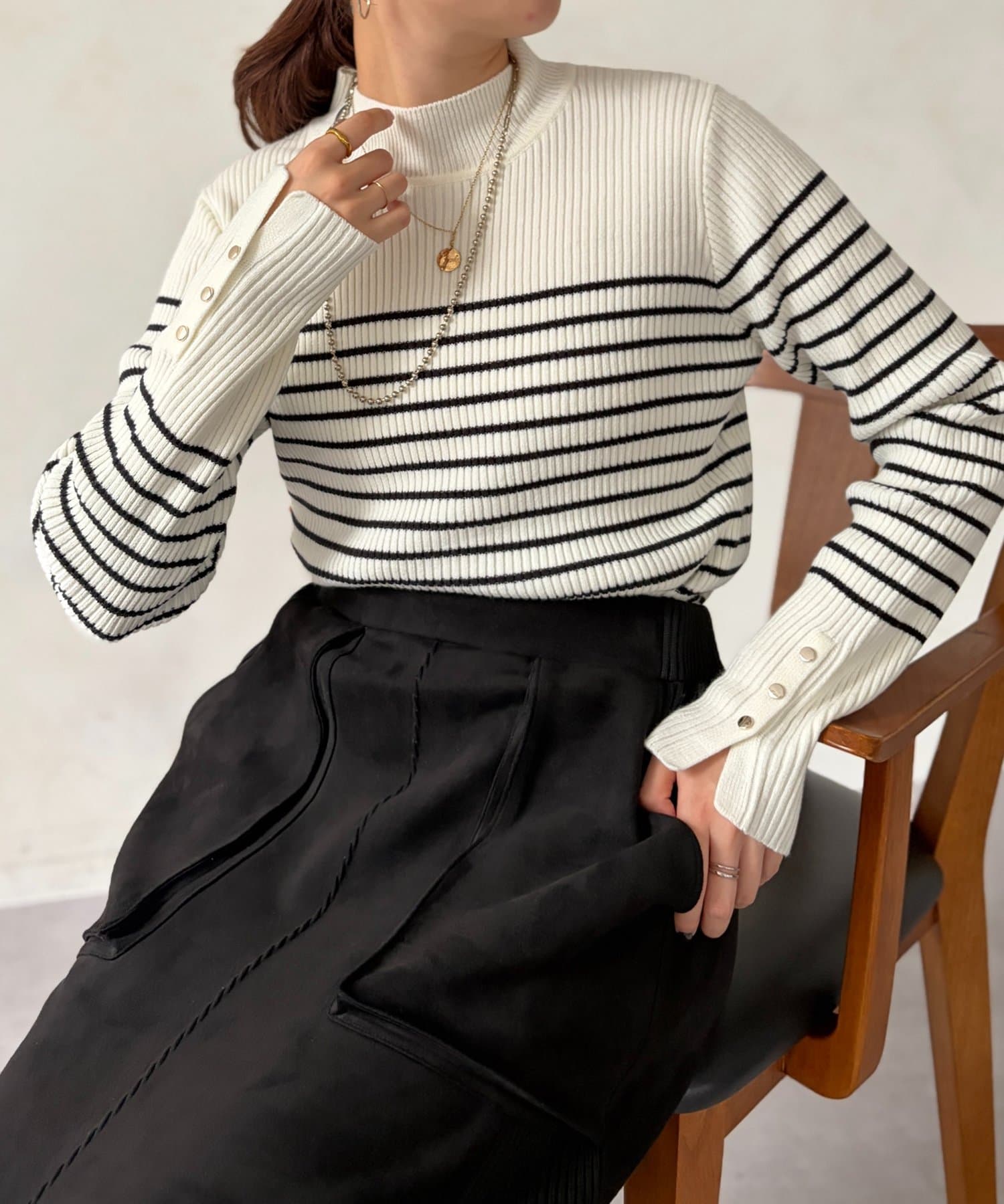 絶妙なプチハイネックのデザインがこなれた印象になり、ハイネックが苦手な方にもおすすめです ♪