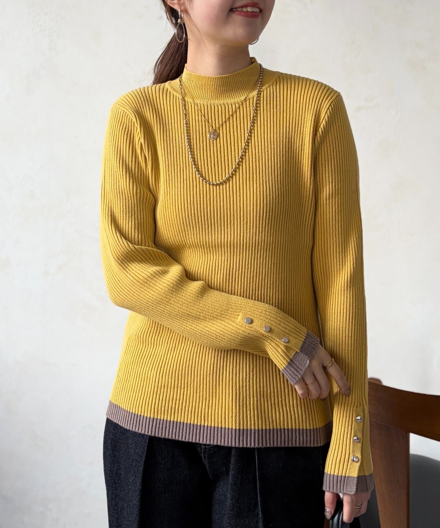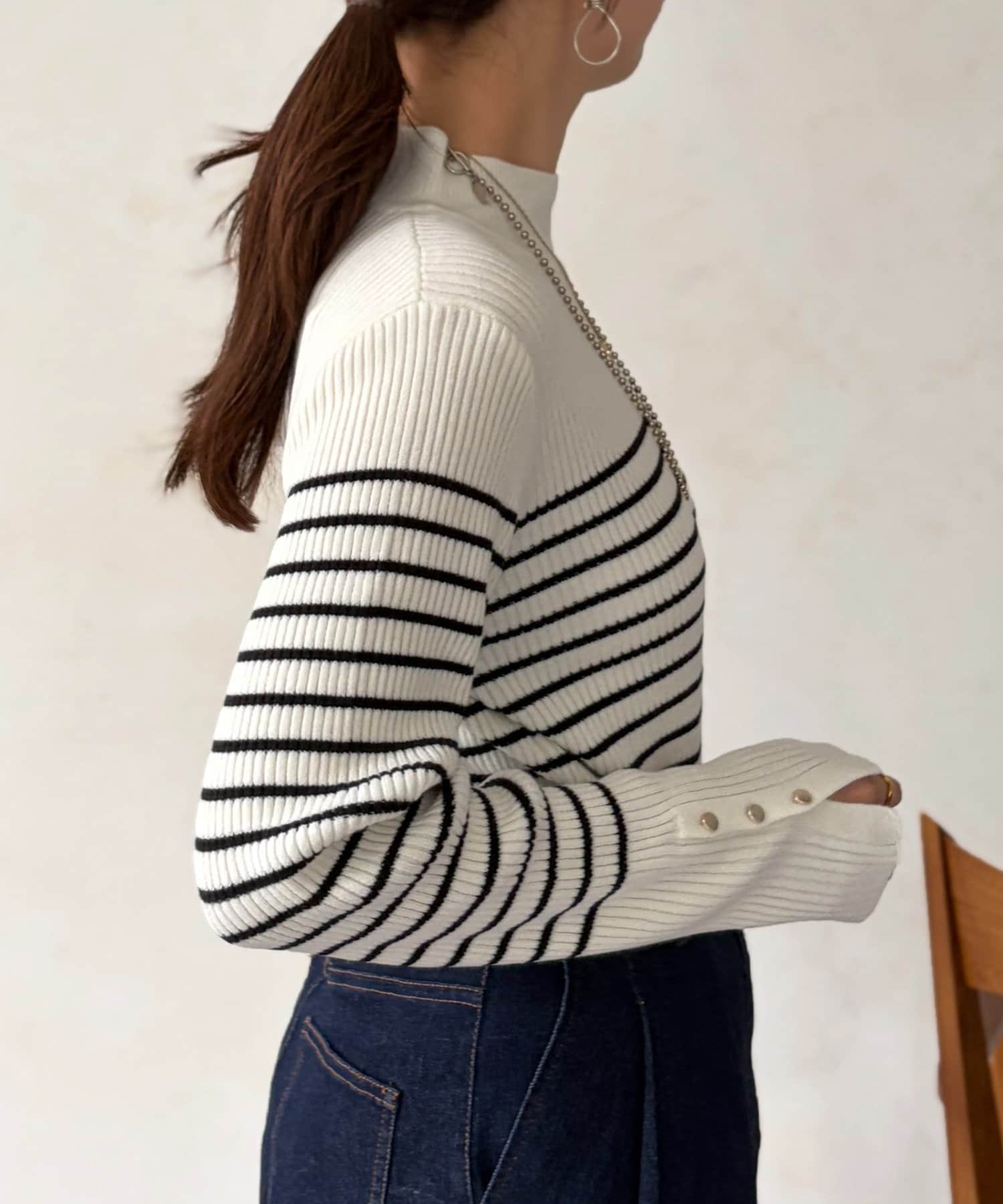 袖口ボタンハイネックプルオーバー