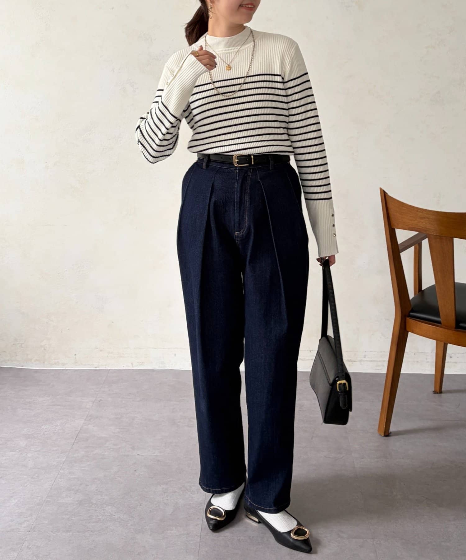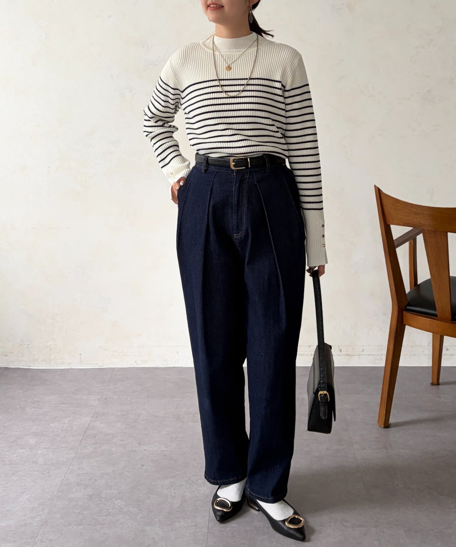 ゴールドボタンが上品さをプラスしカジュアルになりすぎないデザインです!