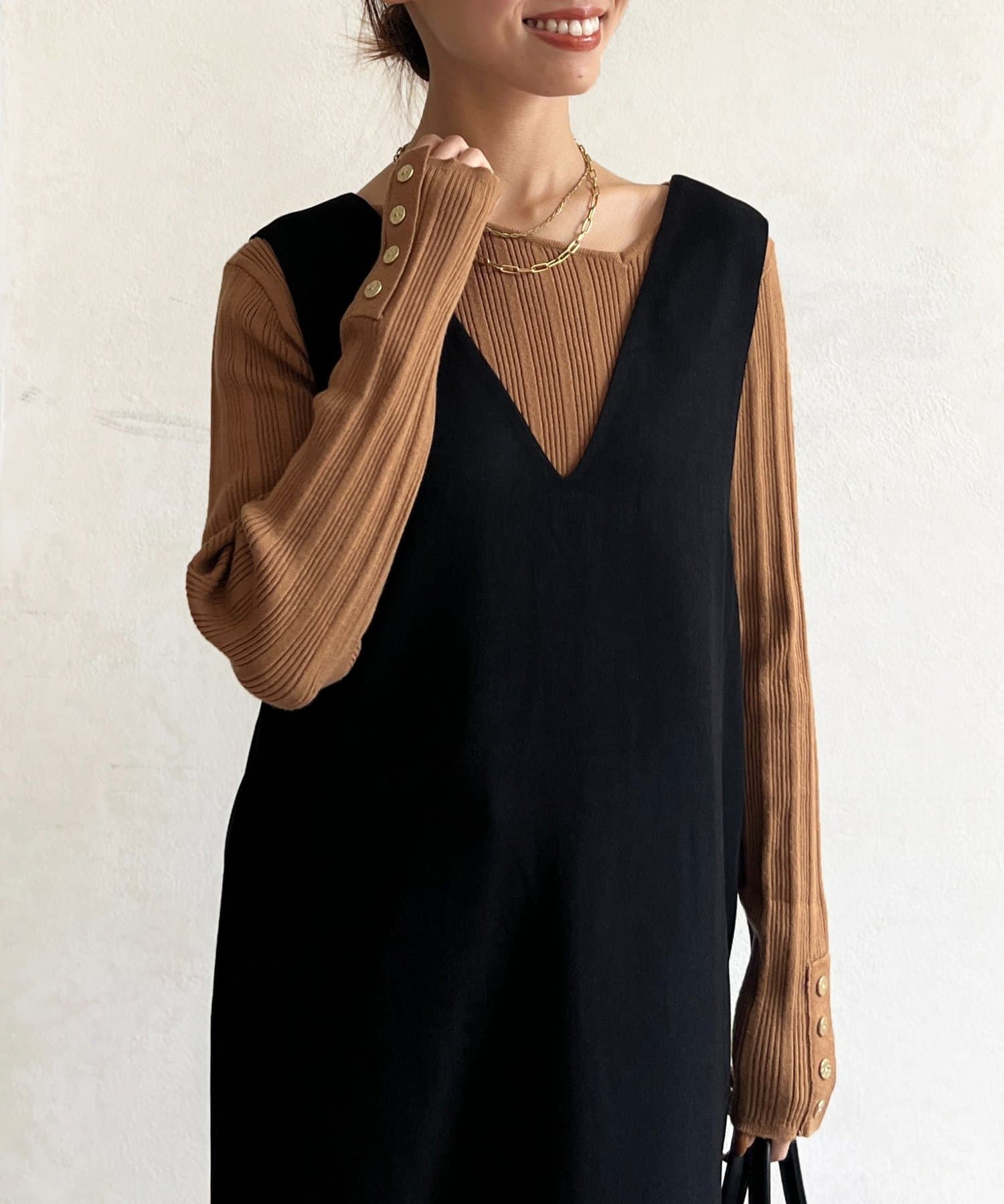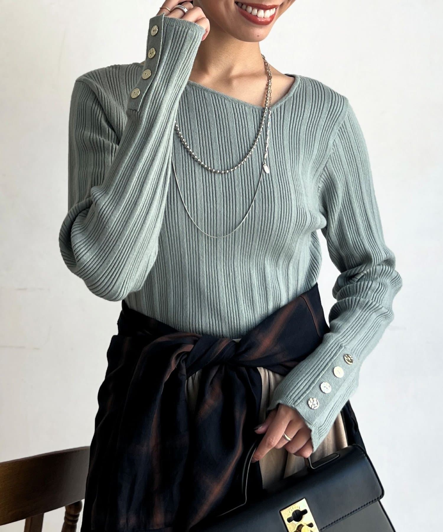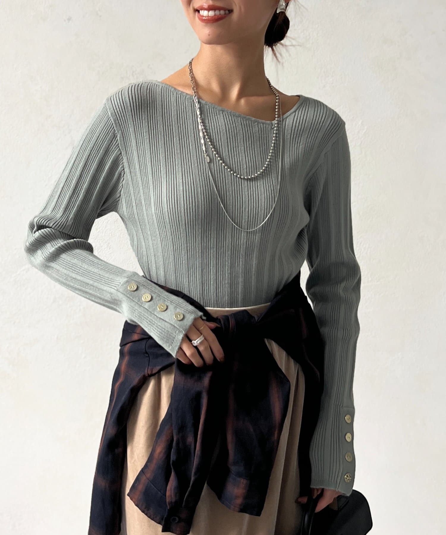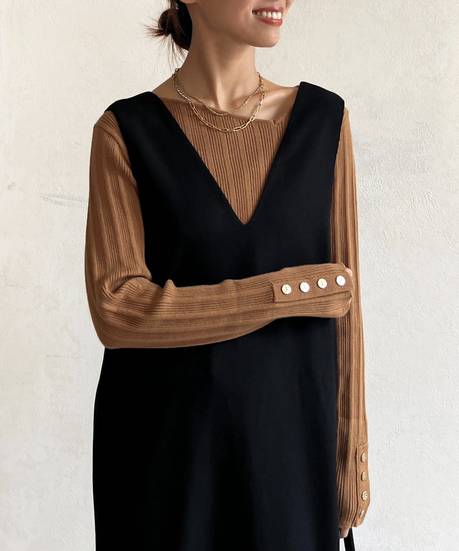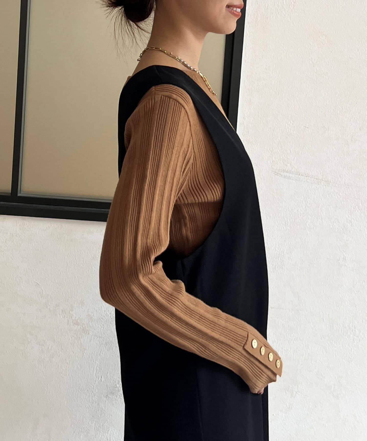 薄すぎず厚すきないちょうど良い生地感なので、インナーとして、1枚でメインとしても活躍してくれるニット。