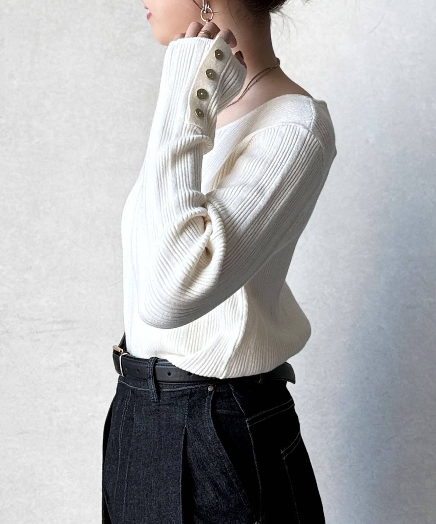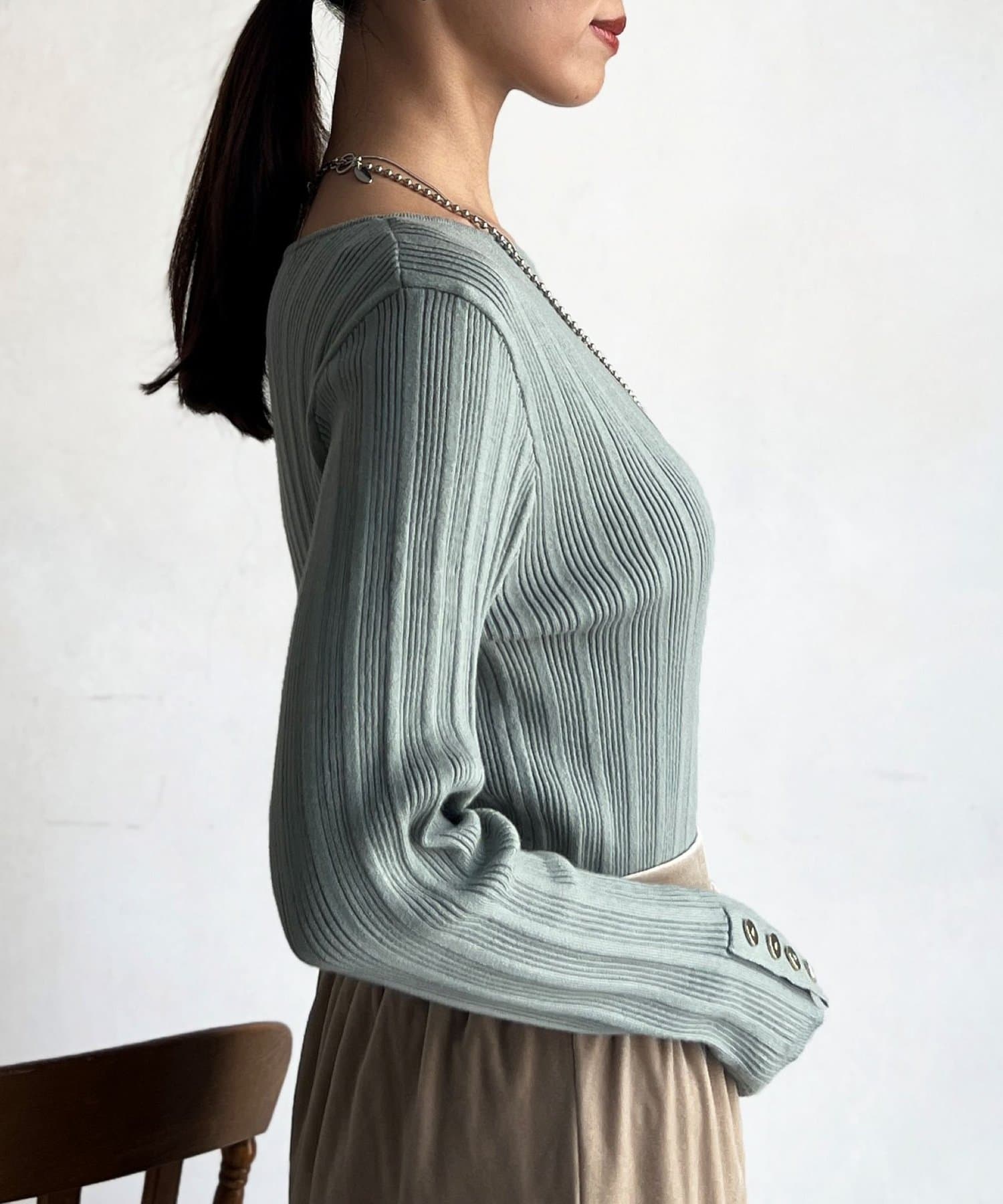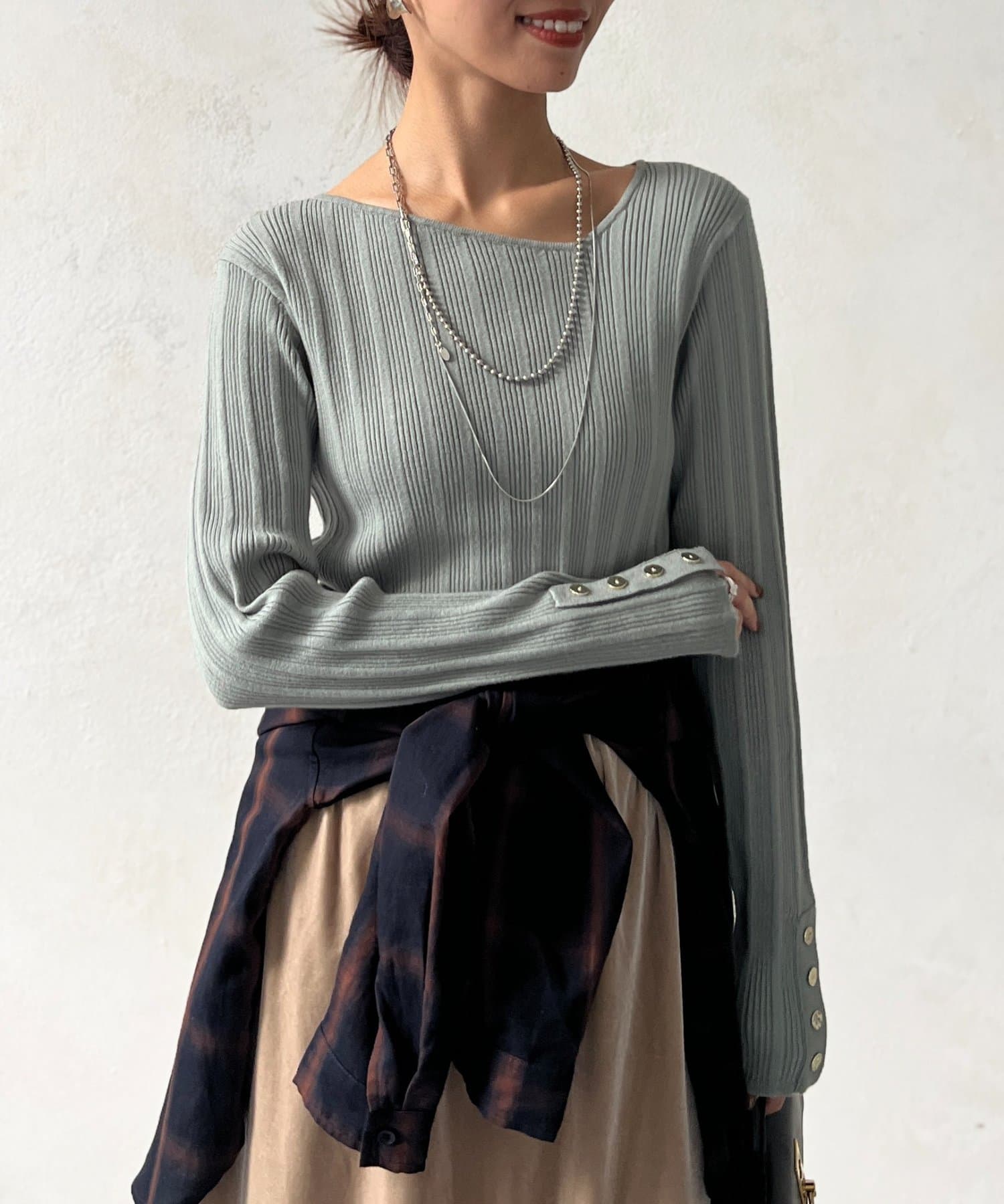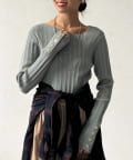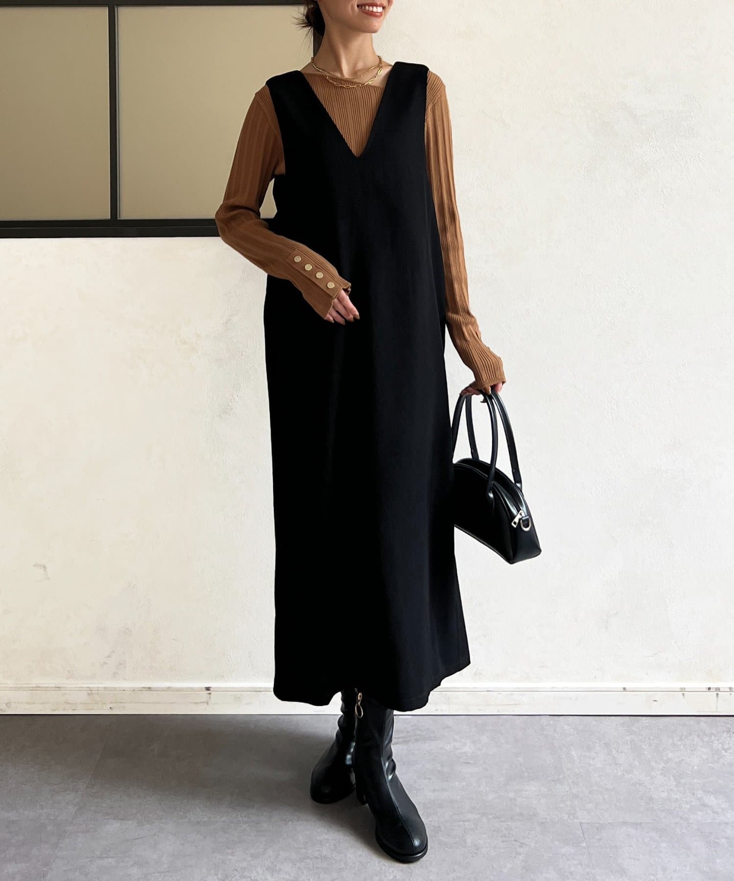 薄すぎず厚すきないちょうど良い生地感なので、インナーとして、1枚でメインとしても活躍してくれるニット。