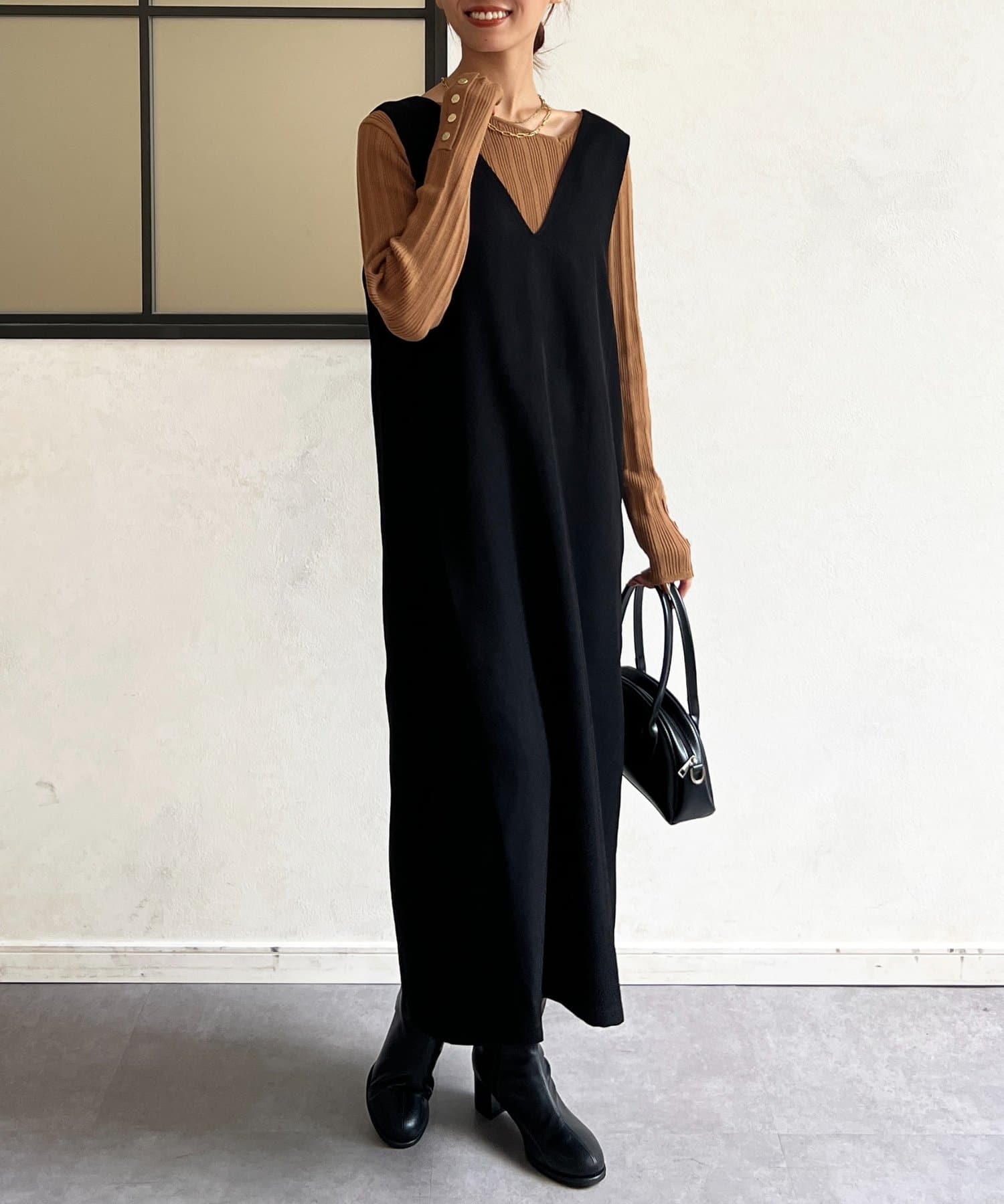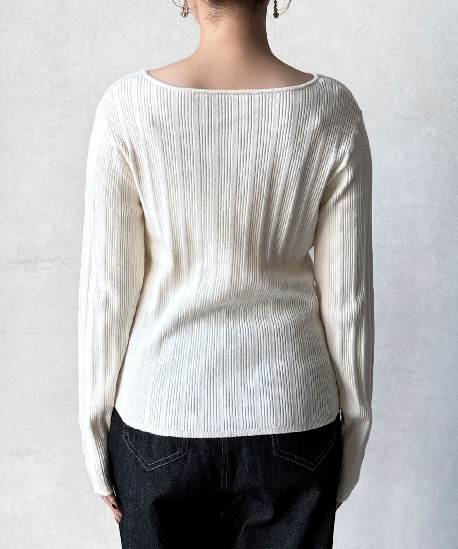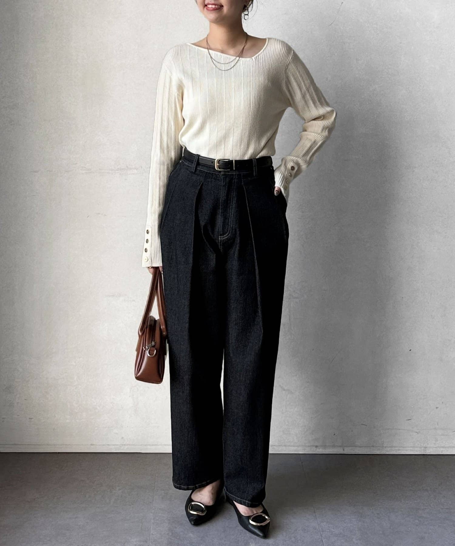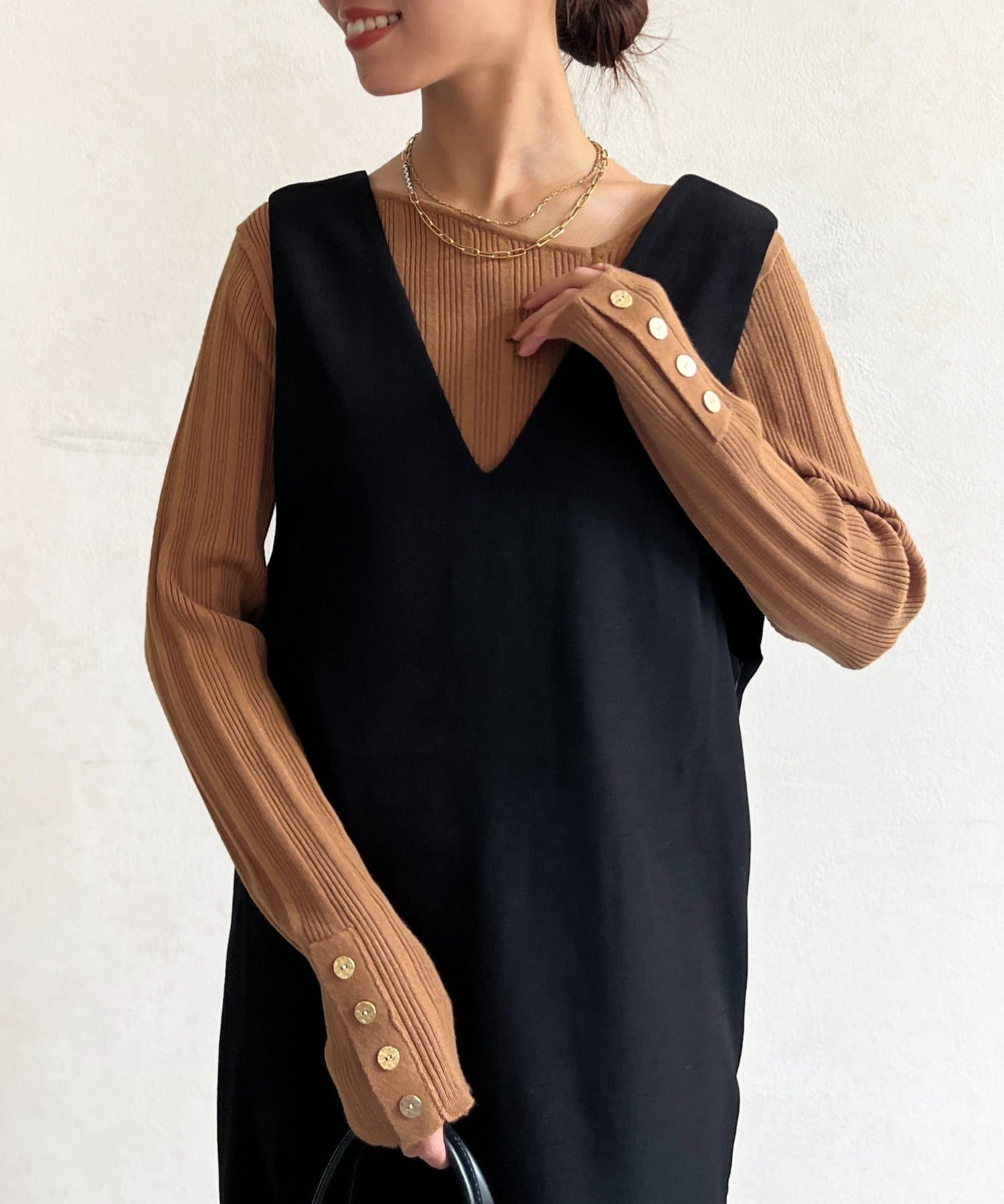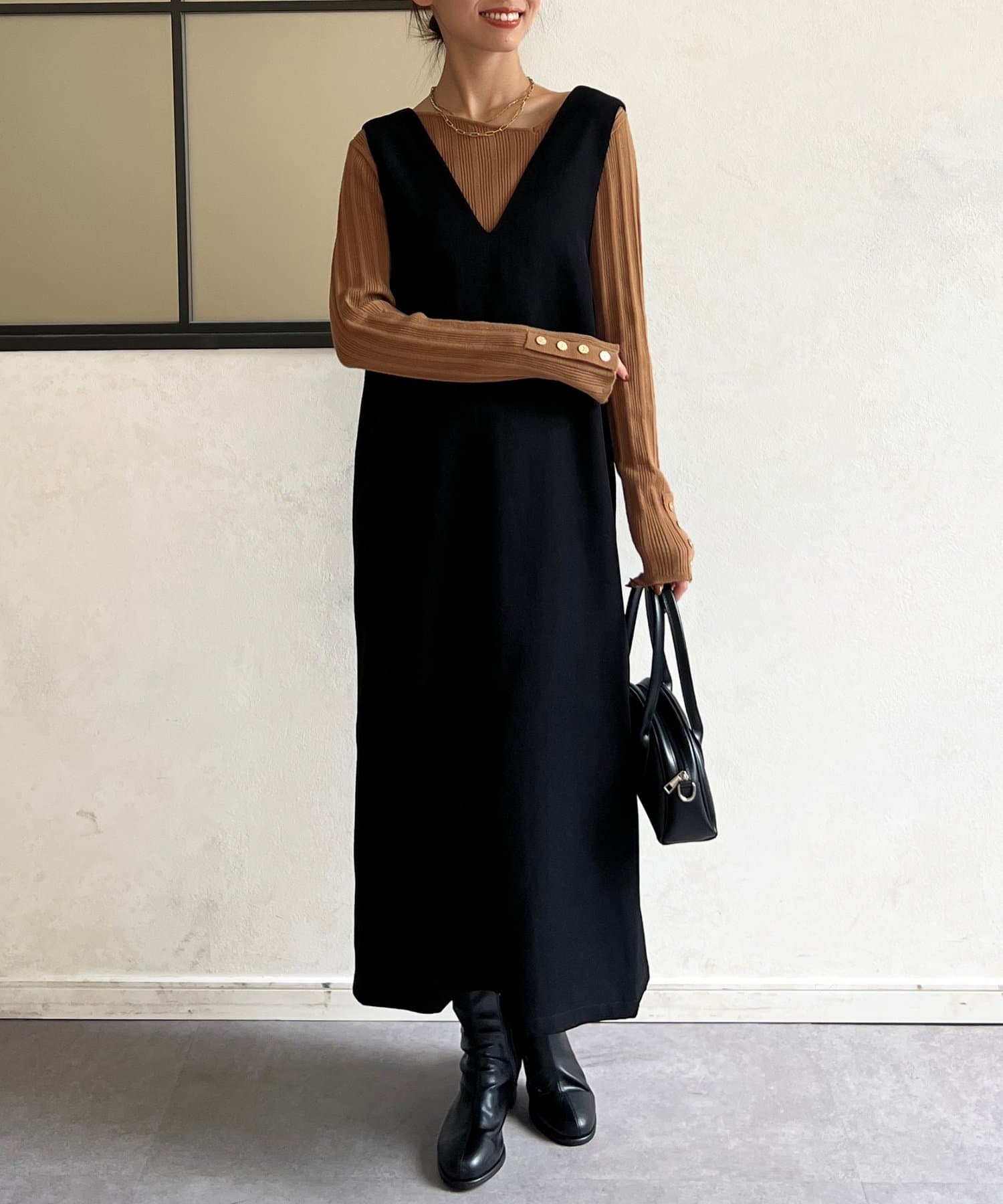 薄すぎず厚すきないちょうど良い生地感なので、インナーとして、1枚でメインとしても活躍してくれるニット。