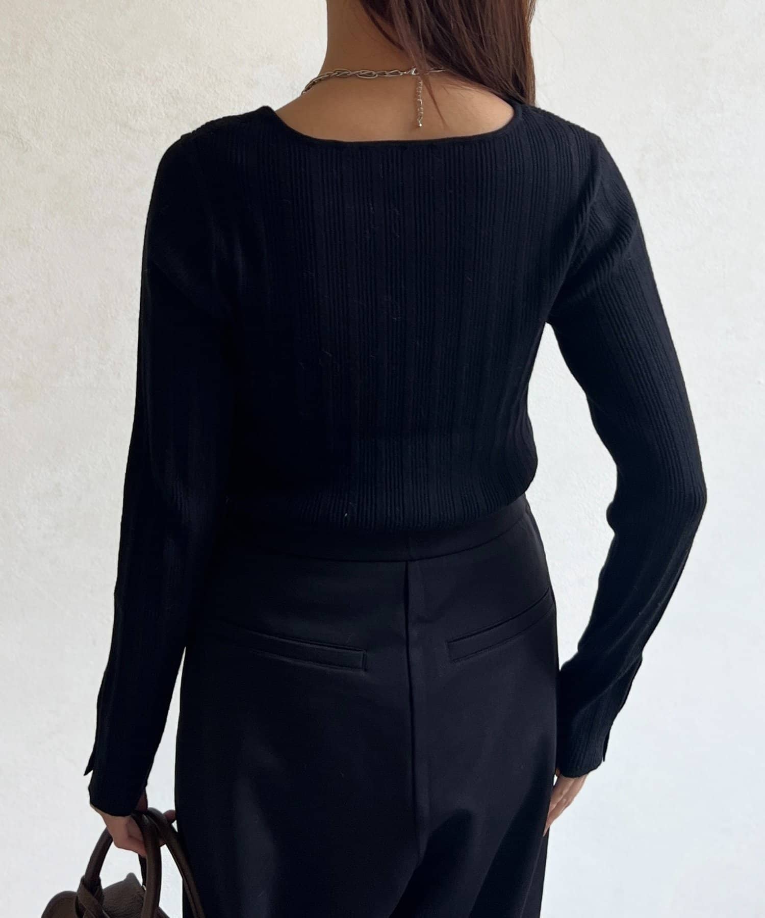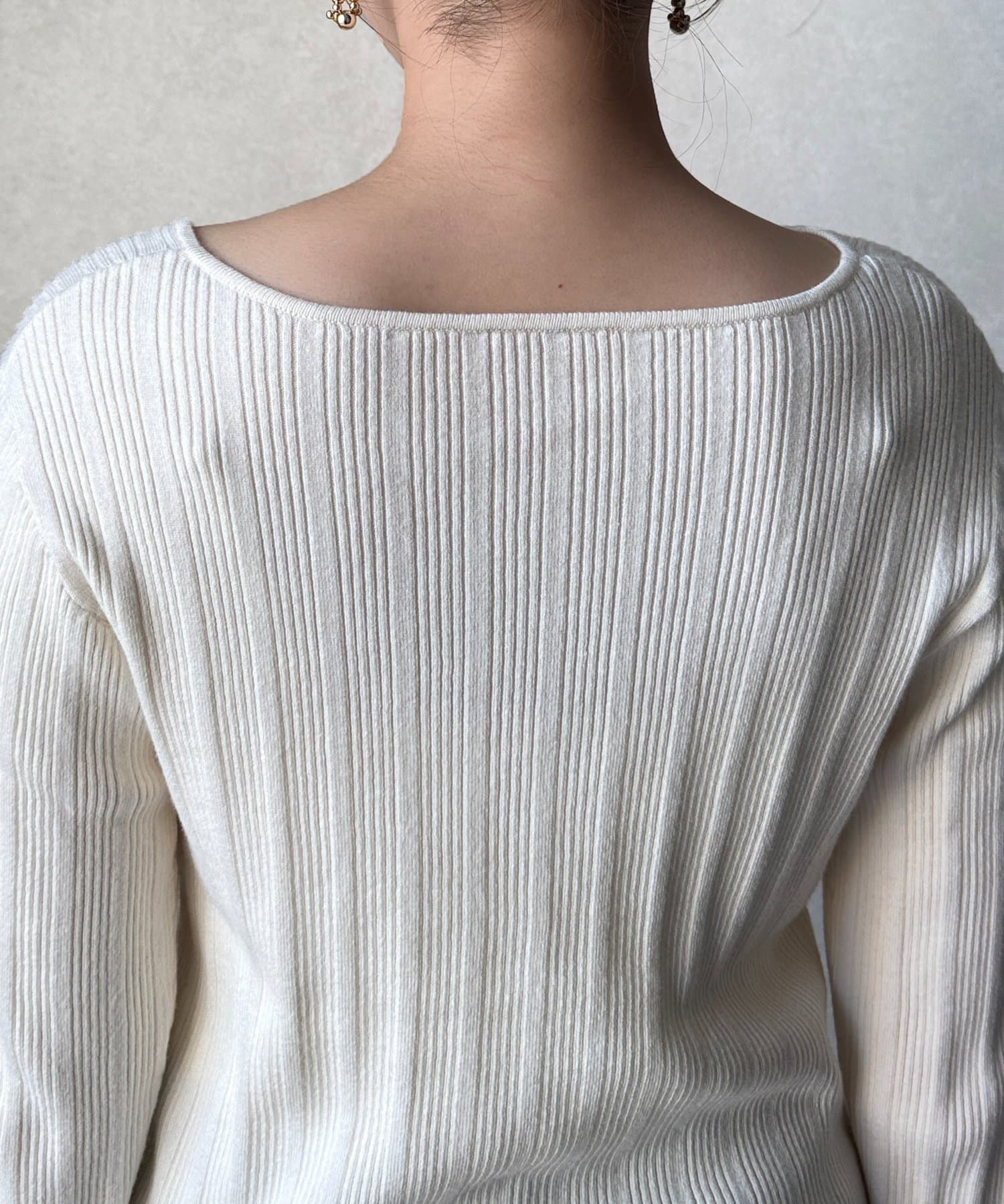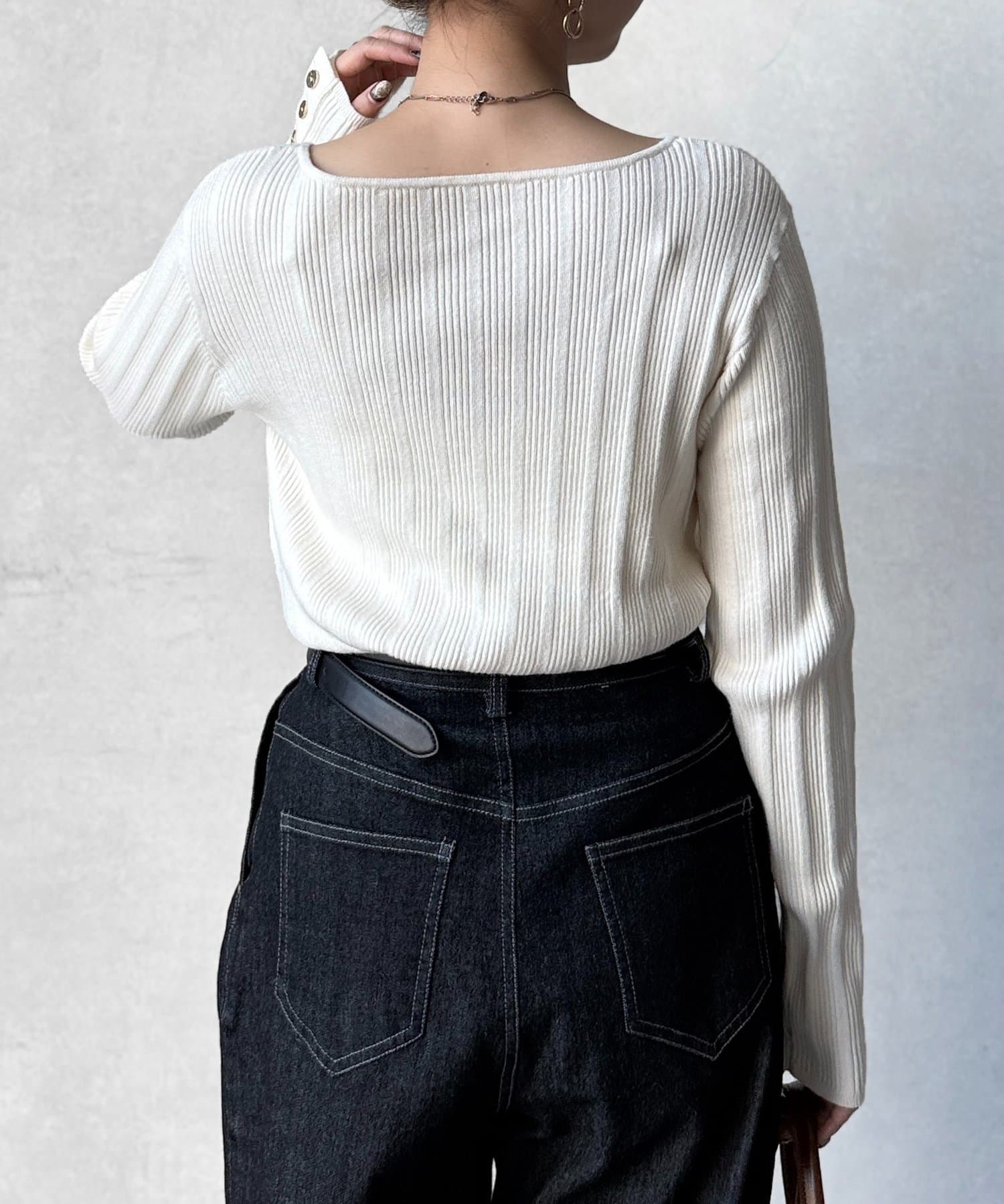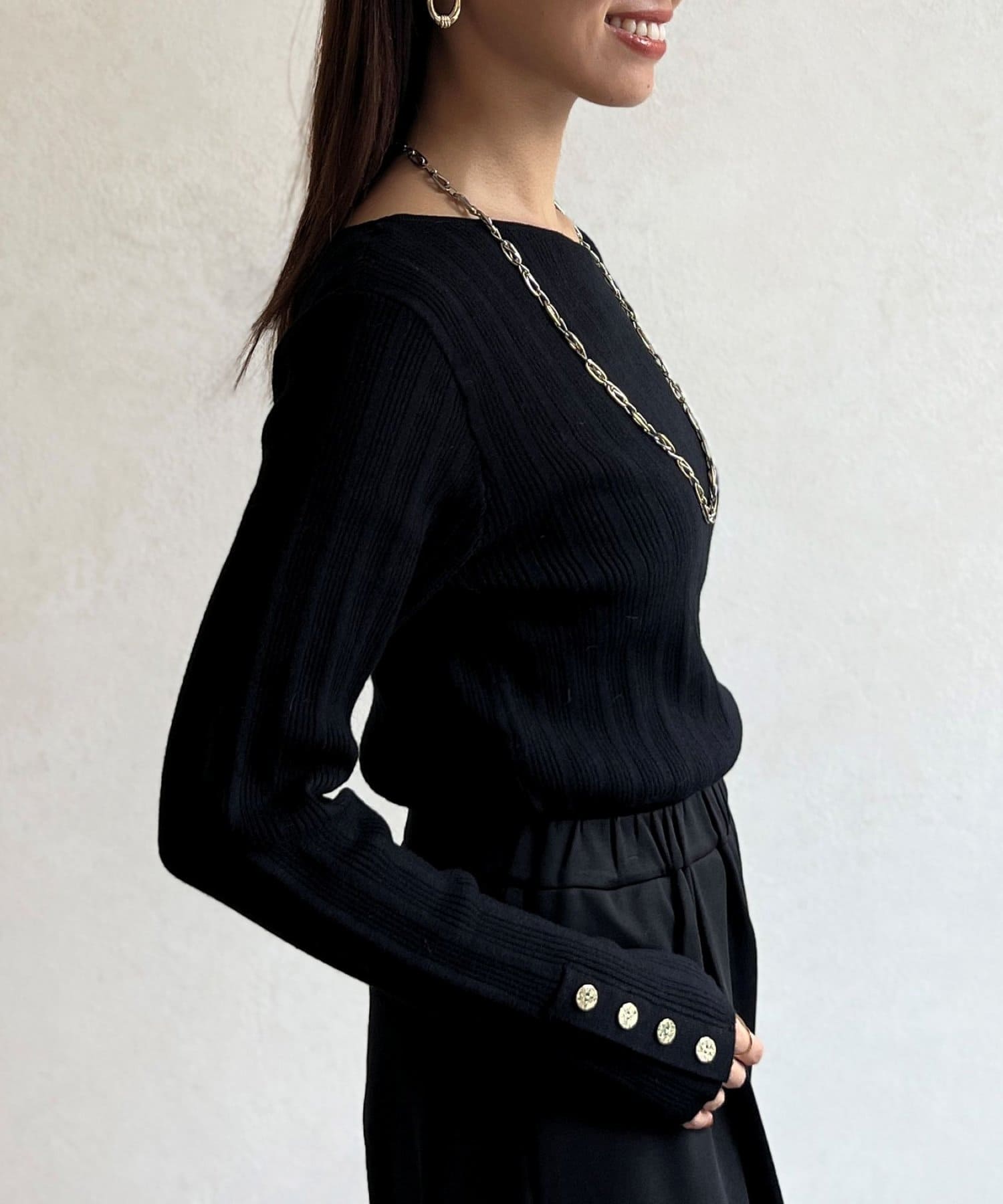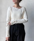 薄すぎず厚すきないちょうど良い生地感なので、インナーとして、1枚でメインとしても活躍してくれるニット。