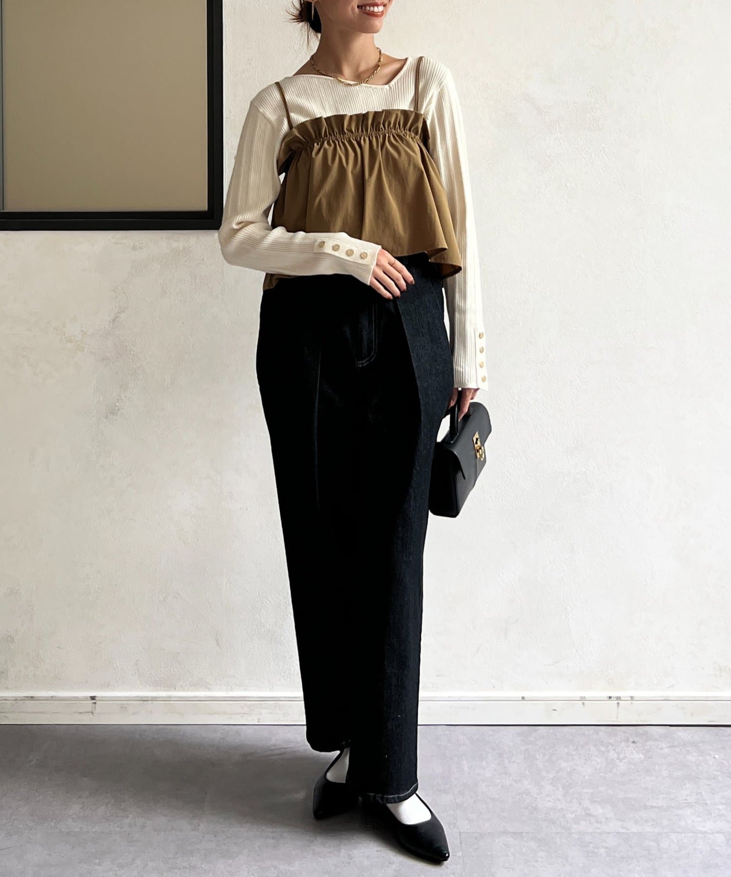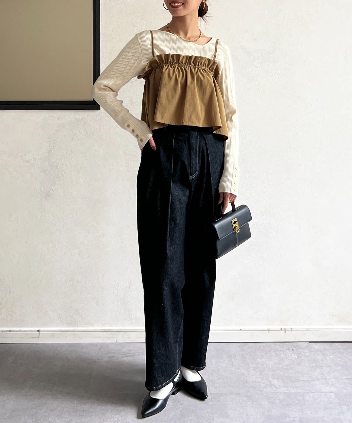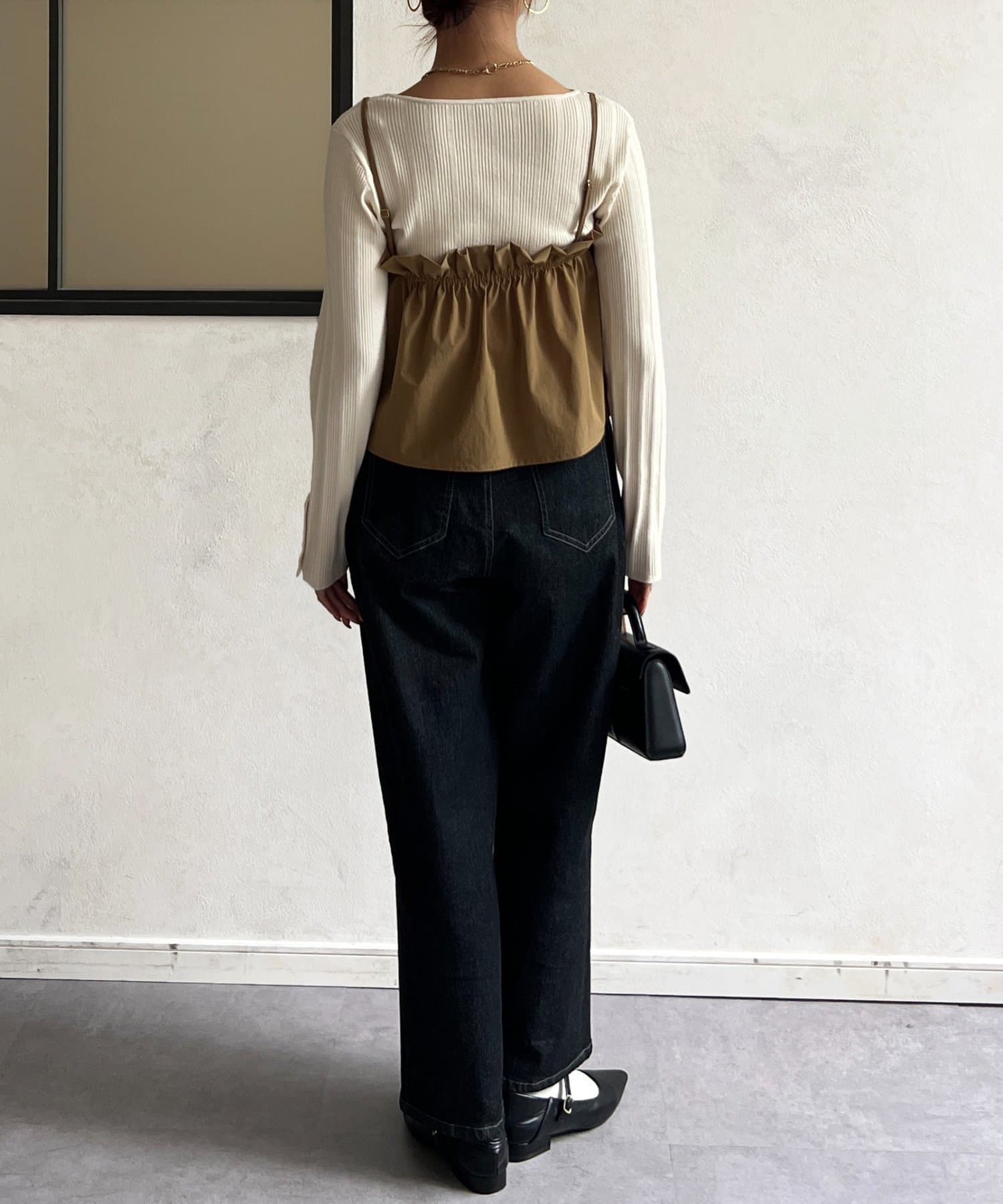 ジャケットやGジャンなど羽織のインナーとしてもおすすめです!サロペットやジレとも相性抜群♪