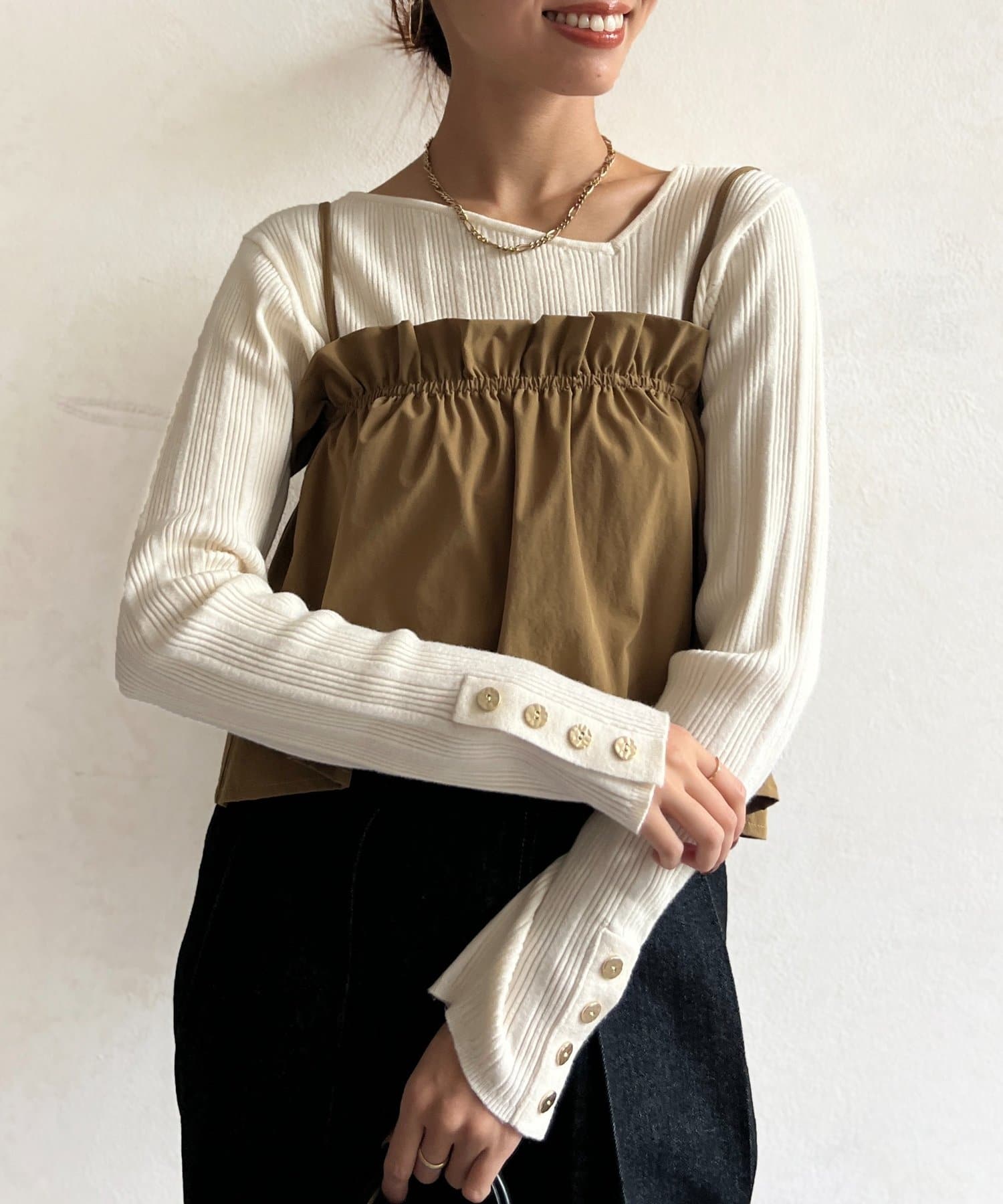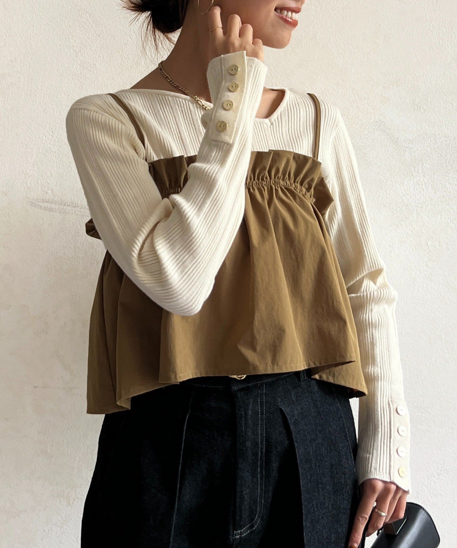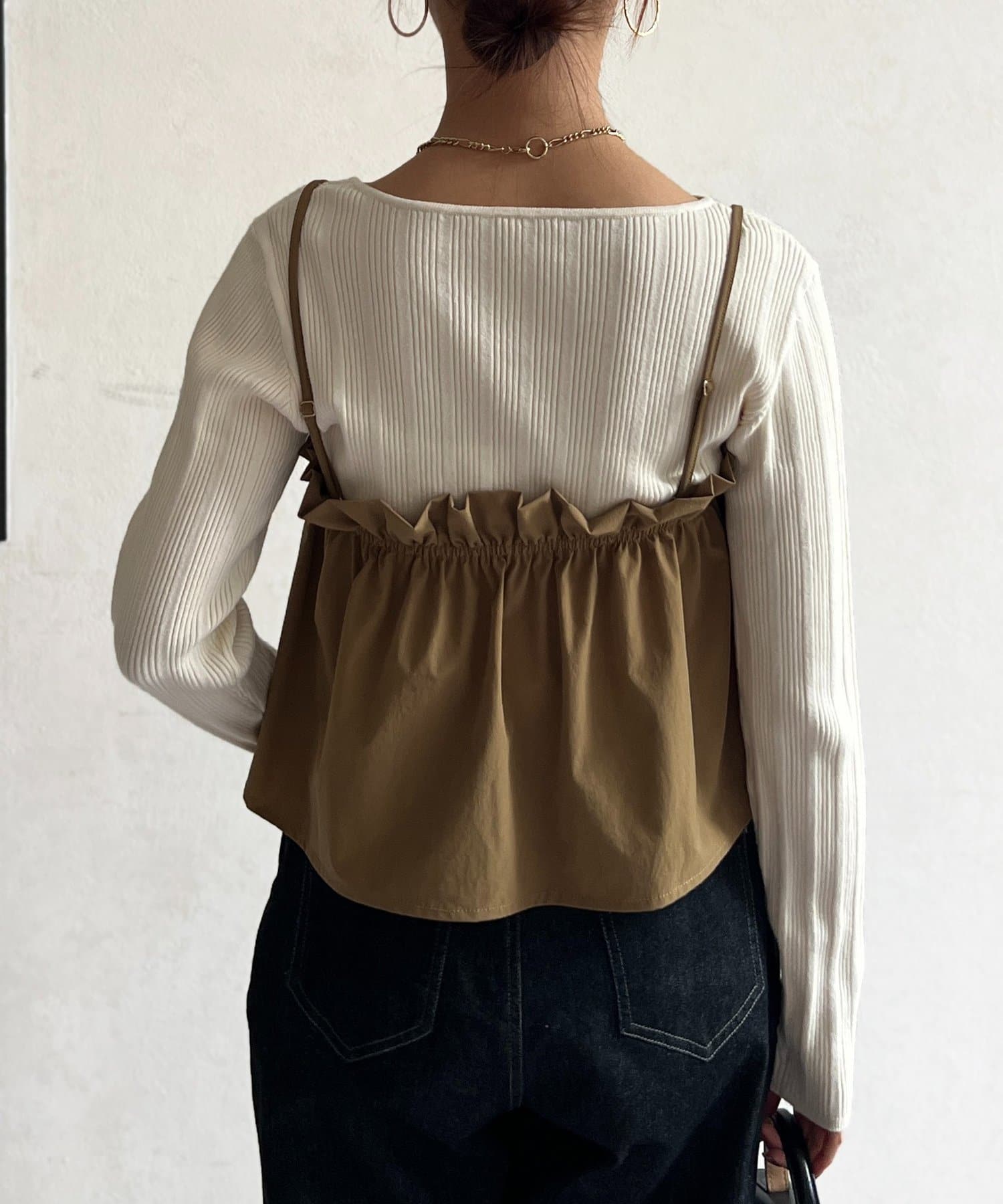 ジャケットやGジャンなど羽織のインナーとしてもおすすめです!サロペットやジレとも相性抜群♪