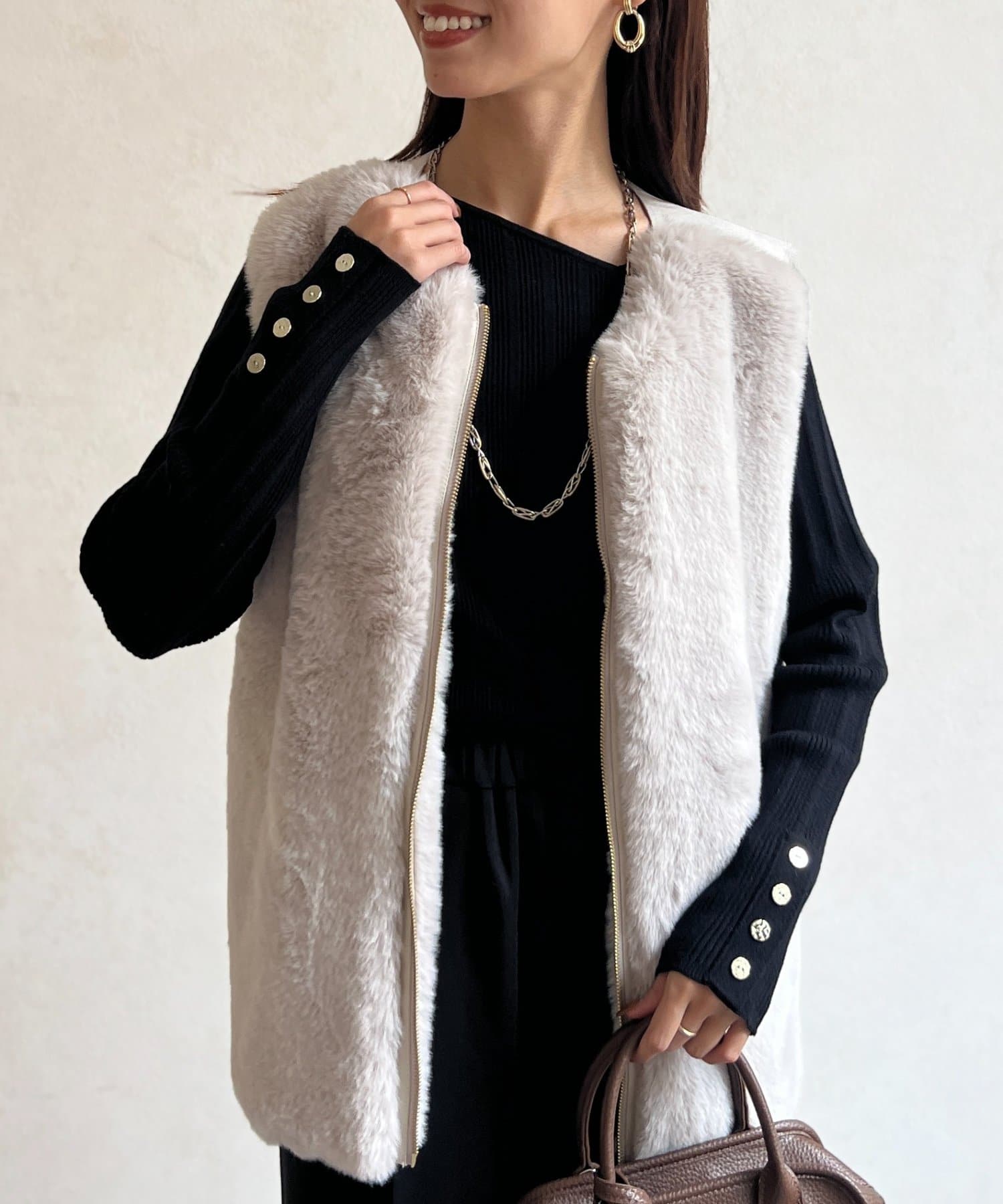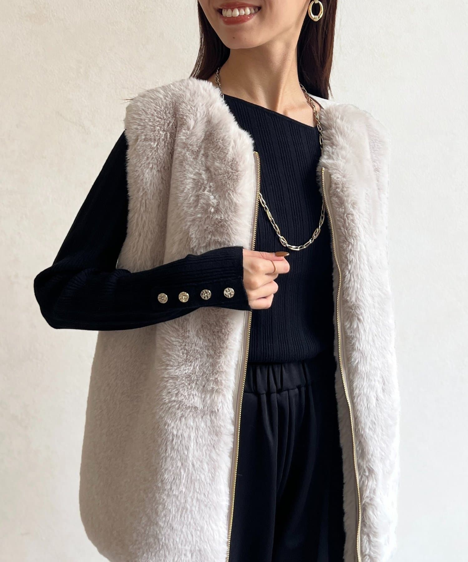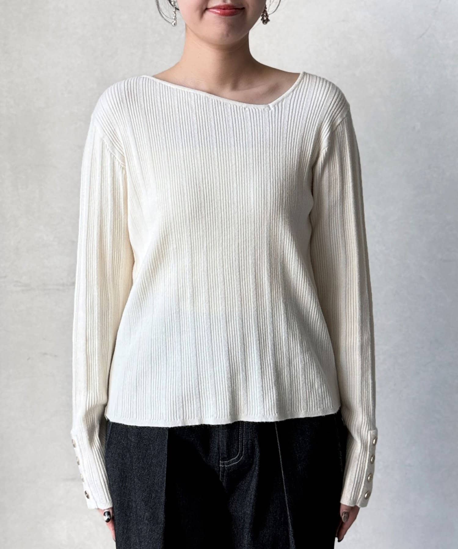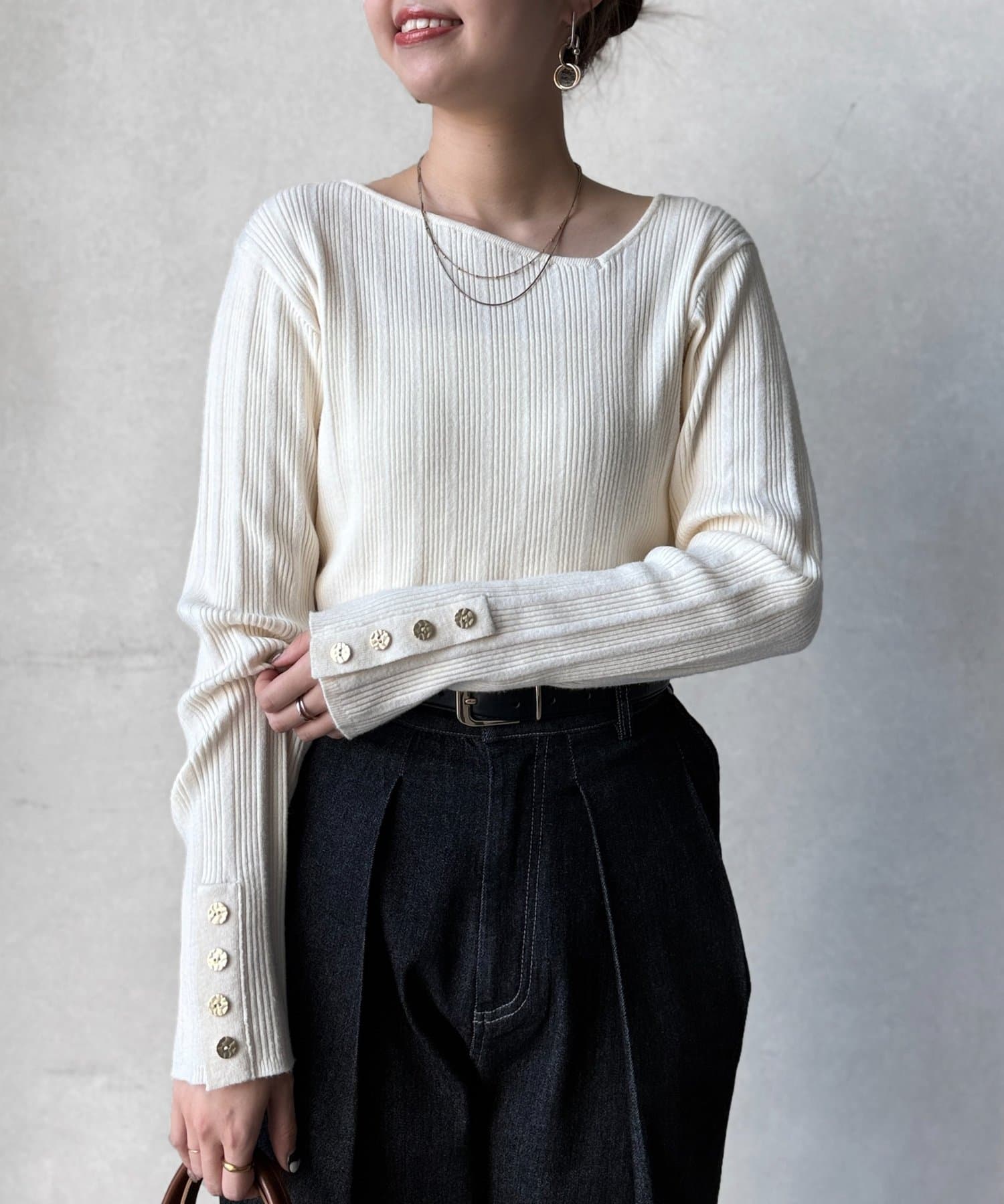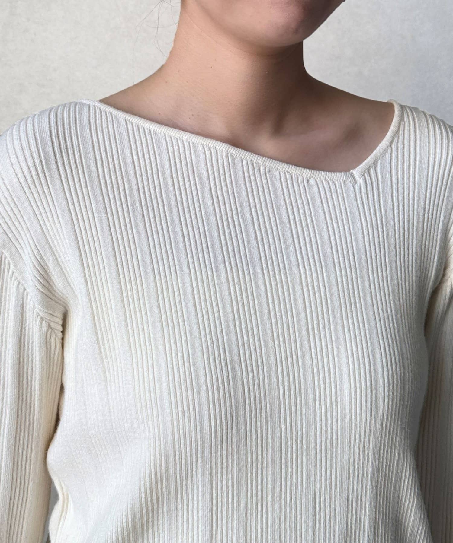 ネックラインがアシンメトリーでになっているので、デコルテやお顔まわりがすっきりと見えるのも嬉しいポイントです!