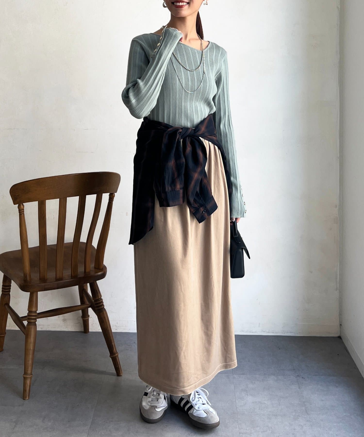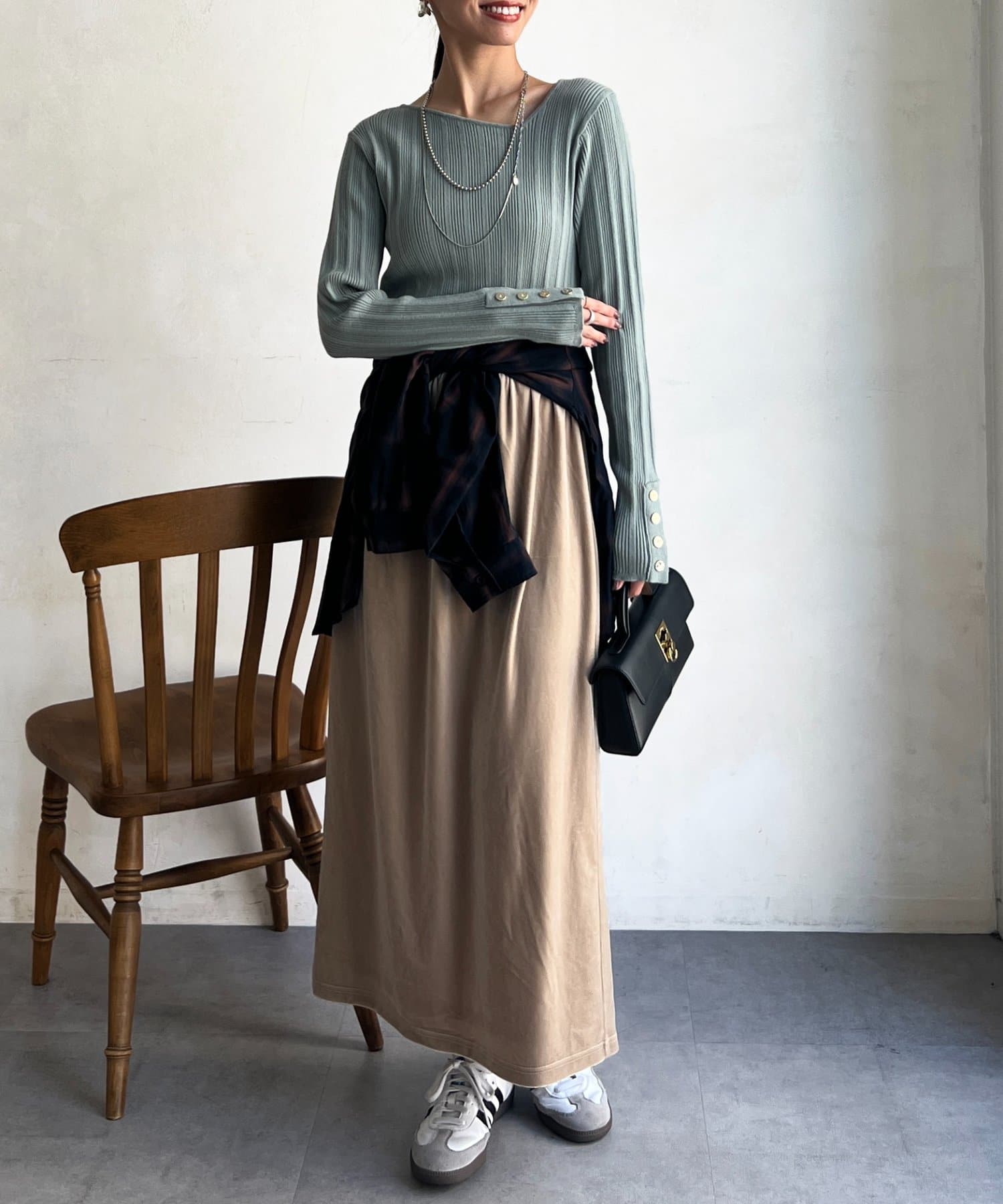 1枚でデニムやロングスカートと合わせてシンプルなコーディネートにも◎