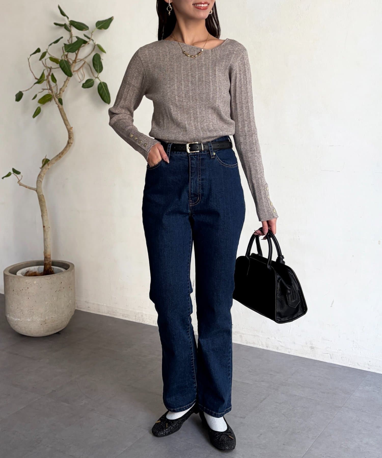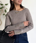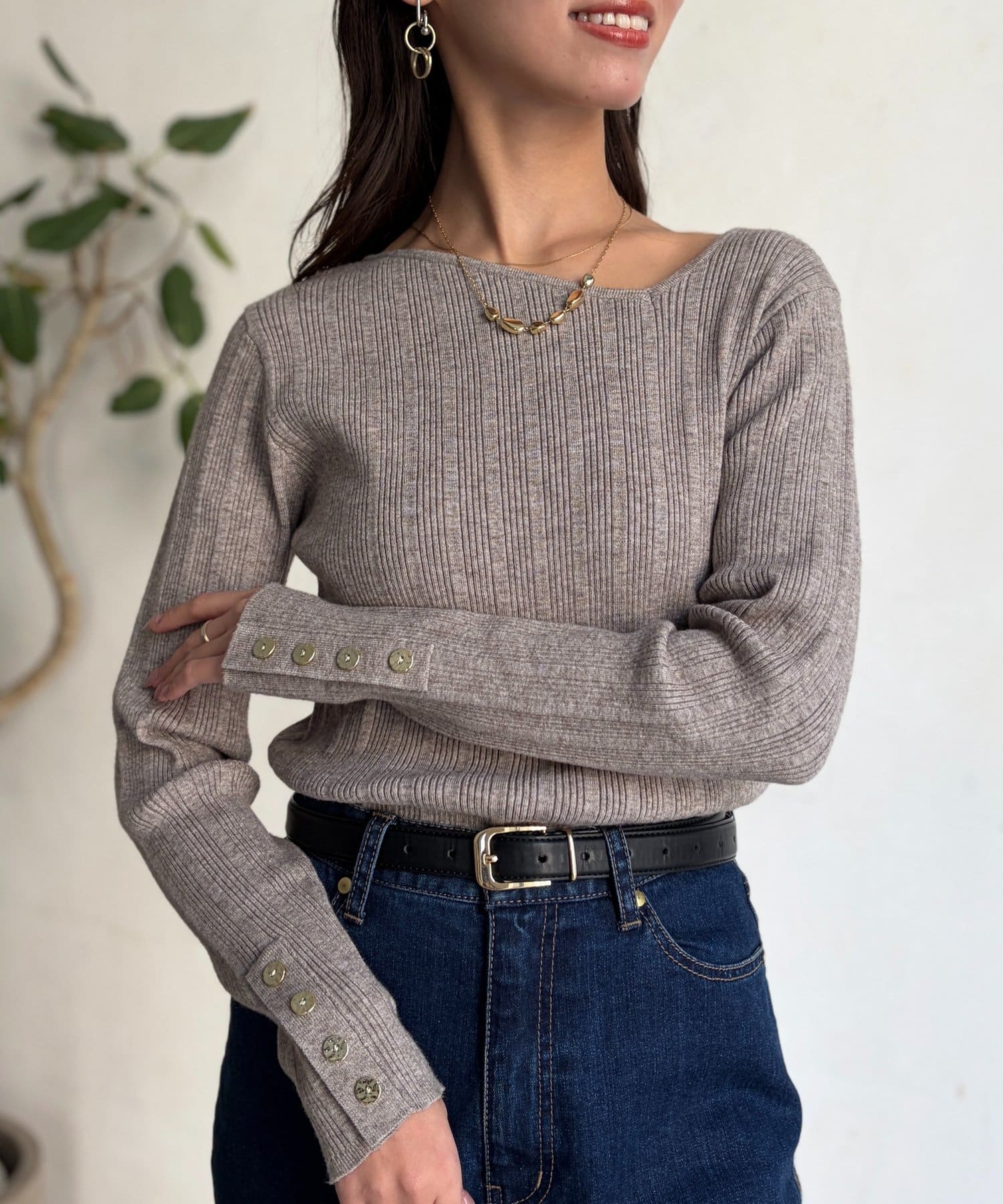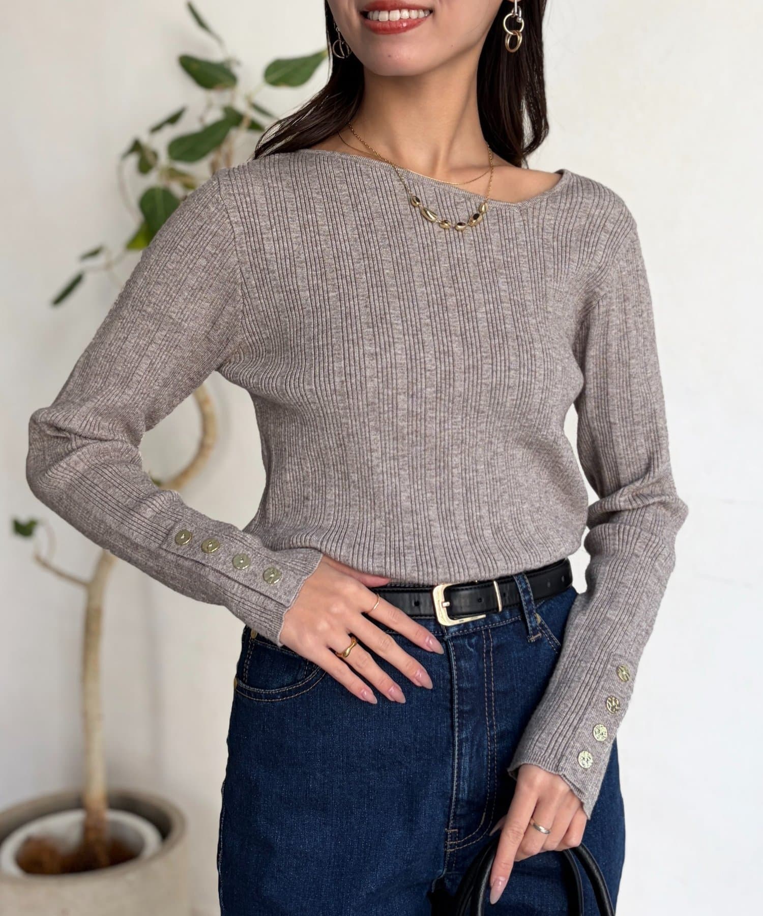 薄すぎず厚すきないちょうど良い生地感なので、インナーとして、1枚でメインとしても活躍してくれるニット。