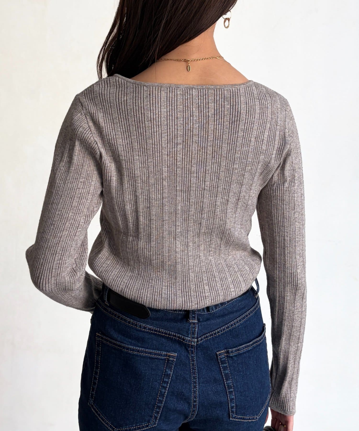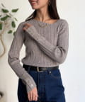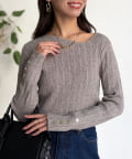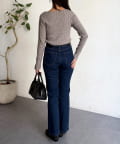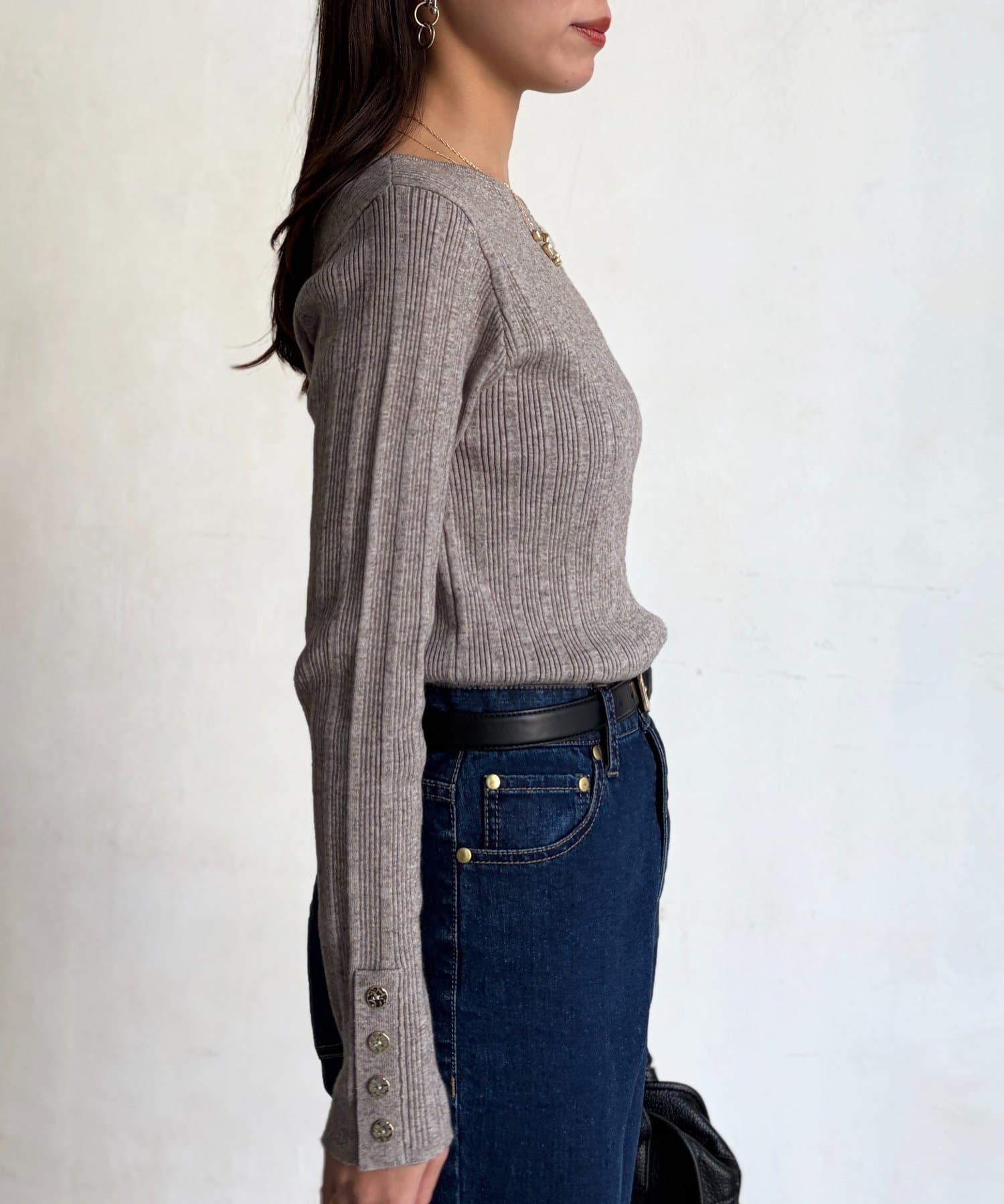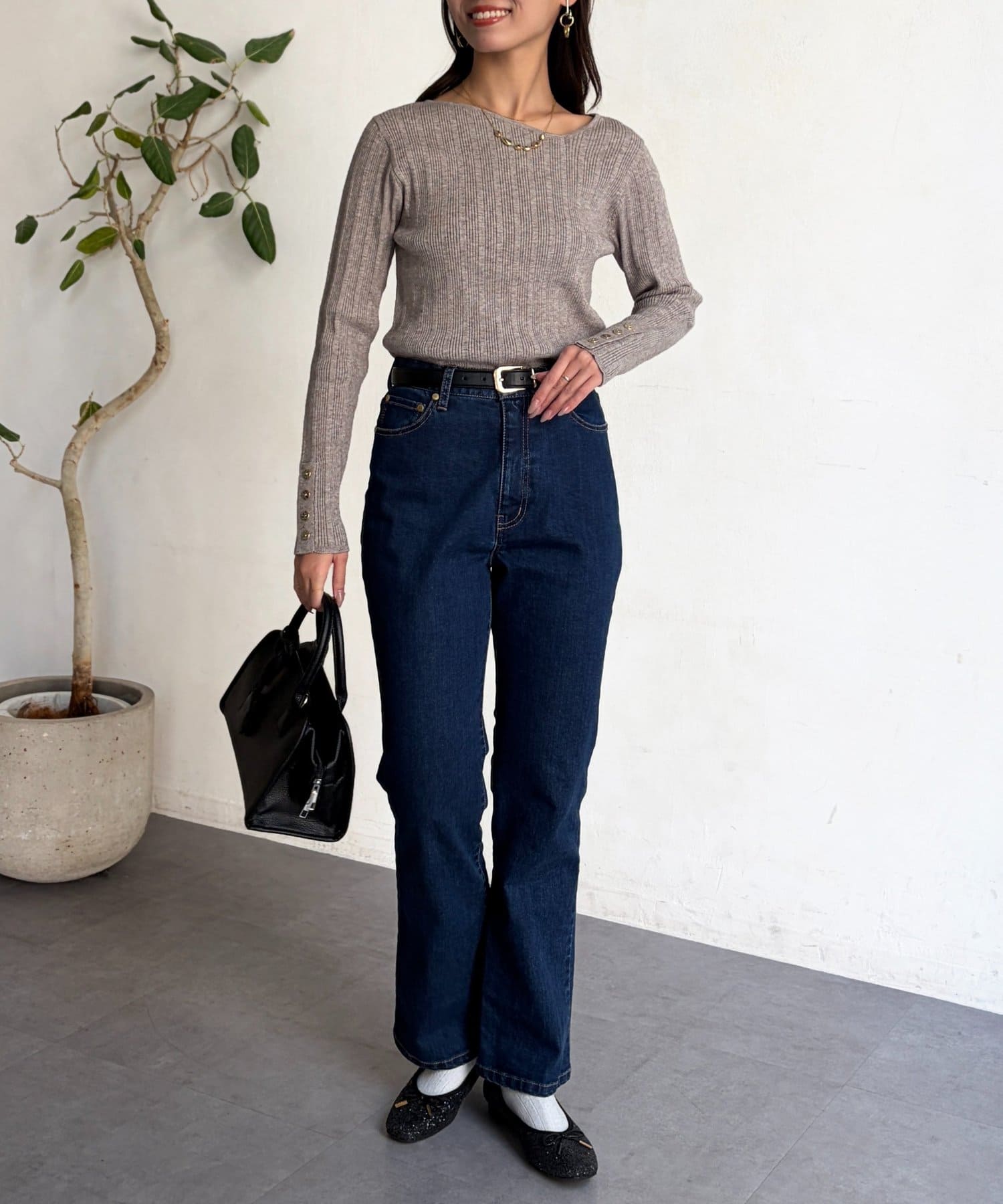 薄すぎず厚すきないちょうど良い生地感なので、インナーとして、1枚でメインとしても活躍してくれるニット。