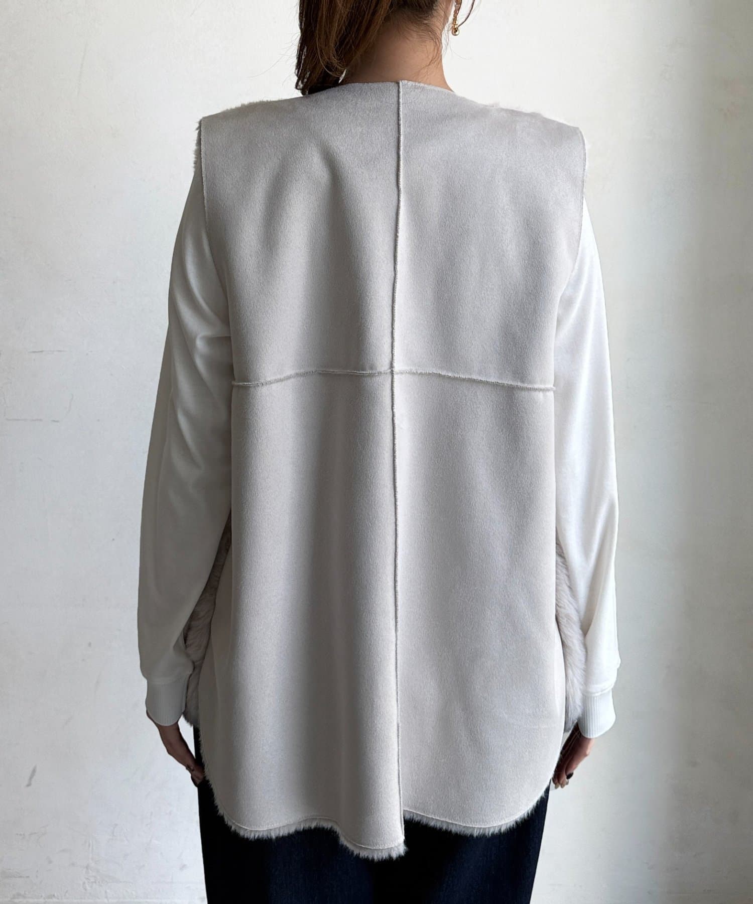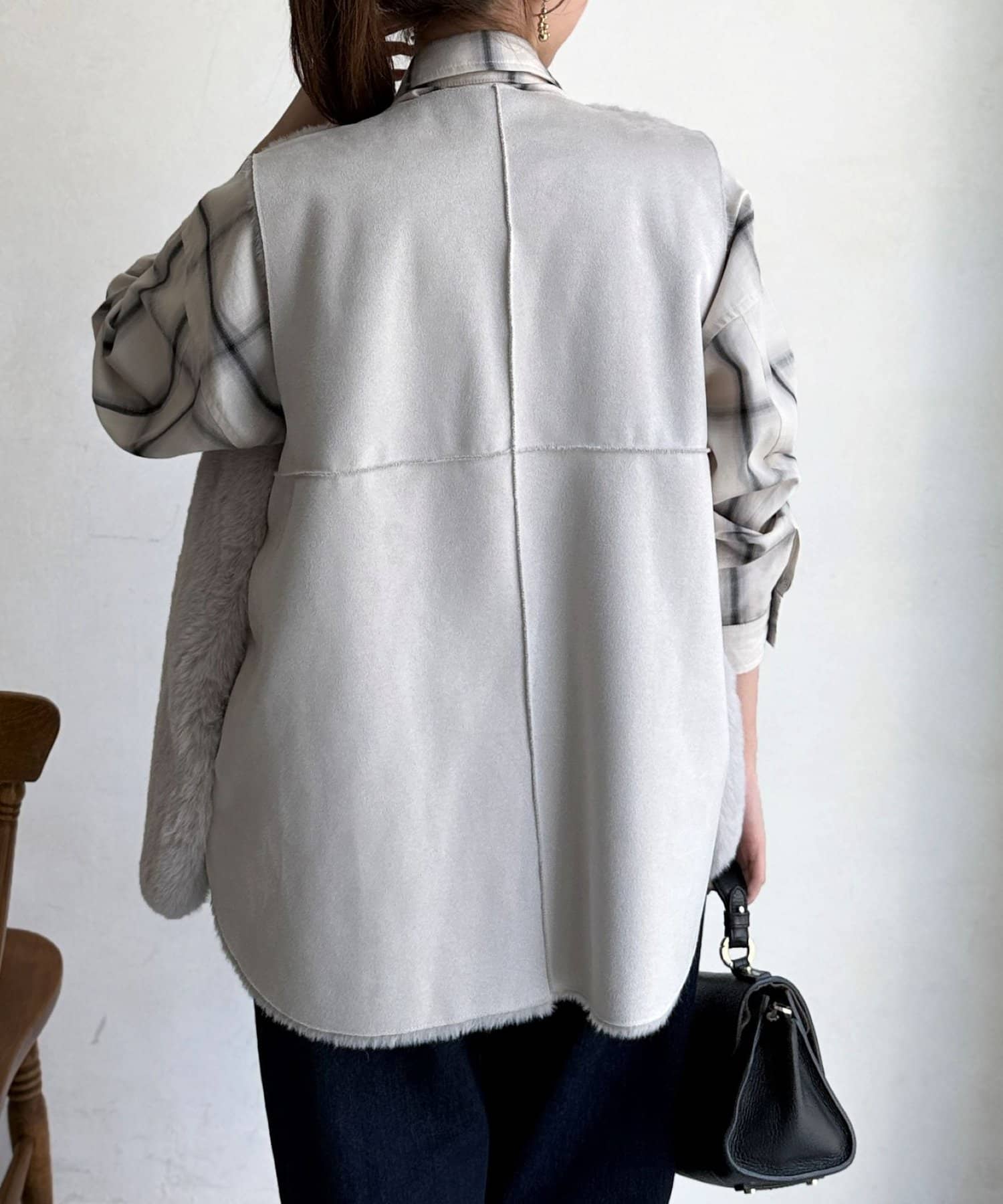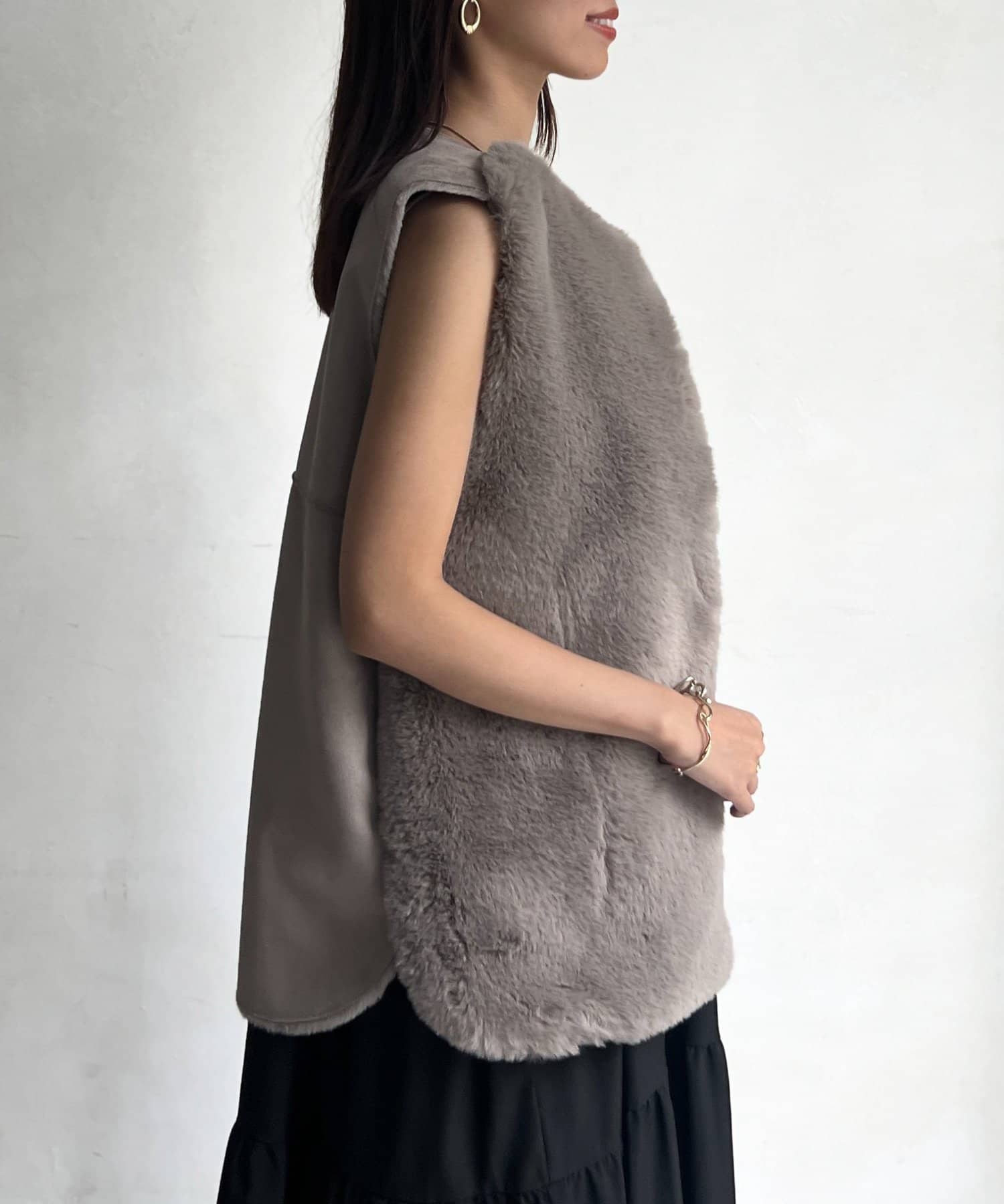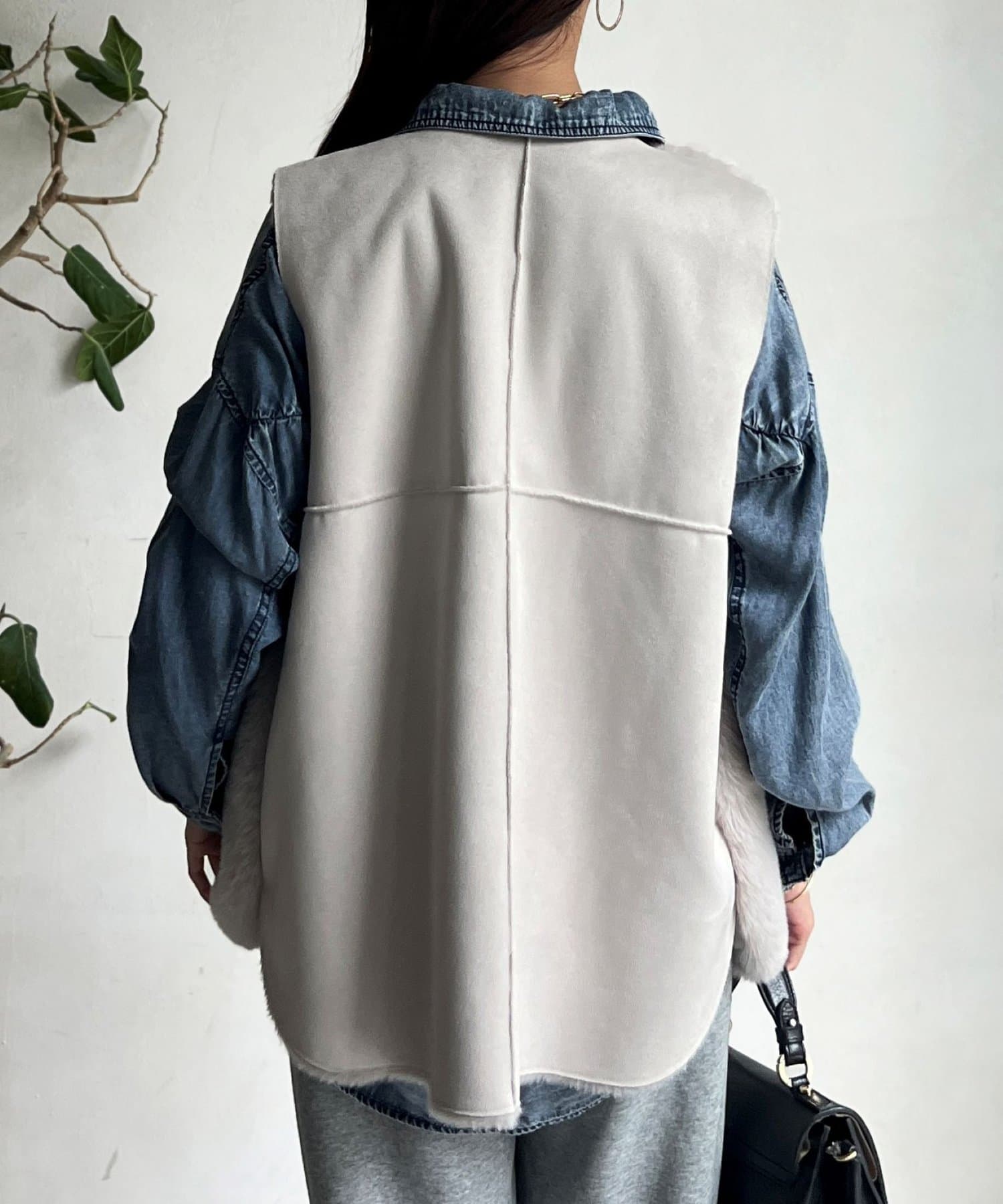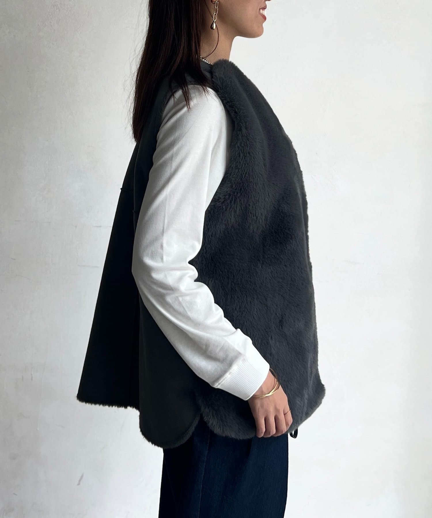 前がフェイクファーで後ろがフェイクムートンの切替ベスト。