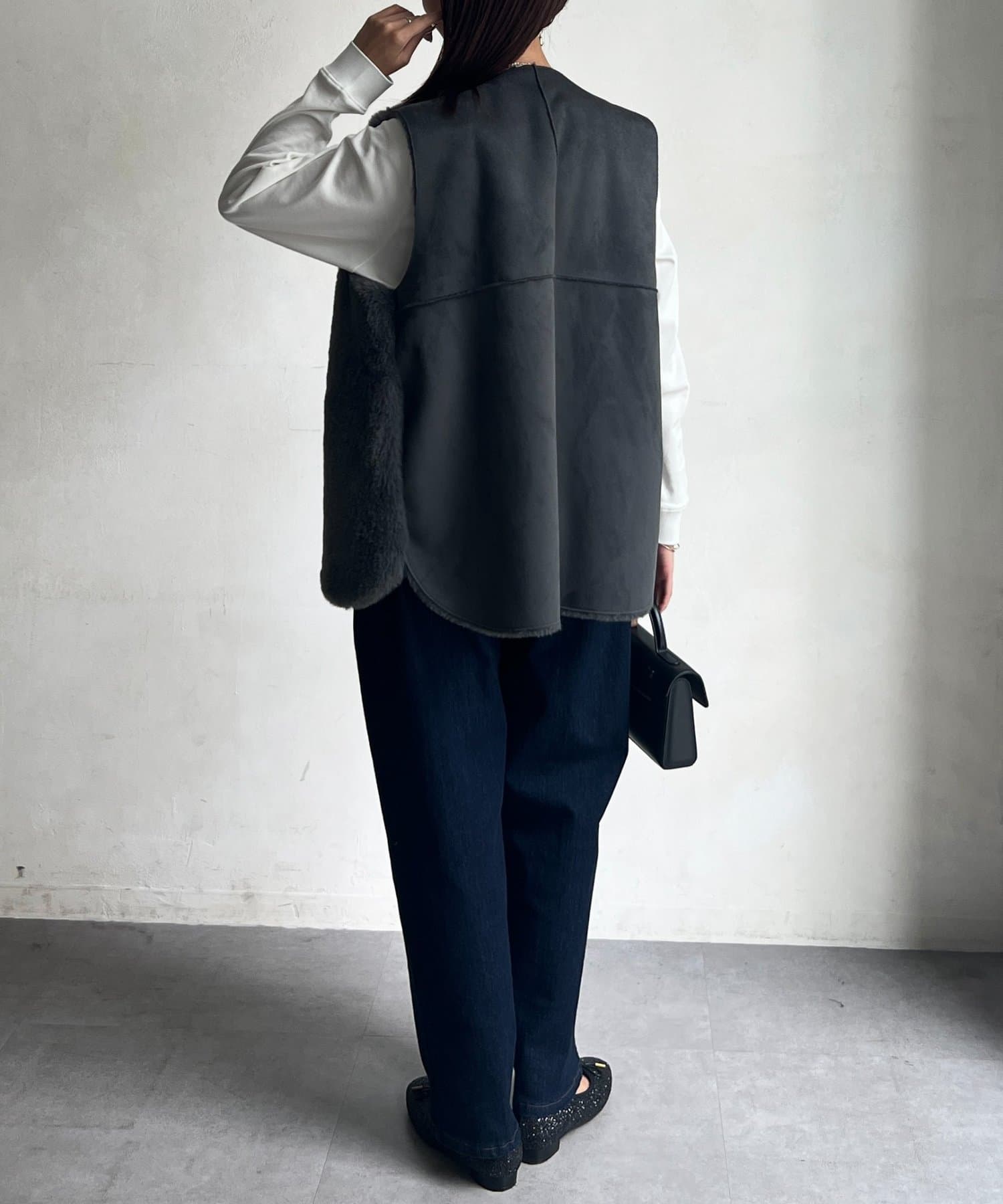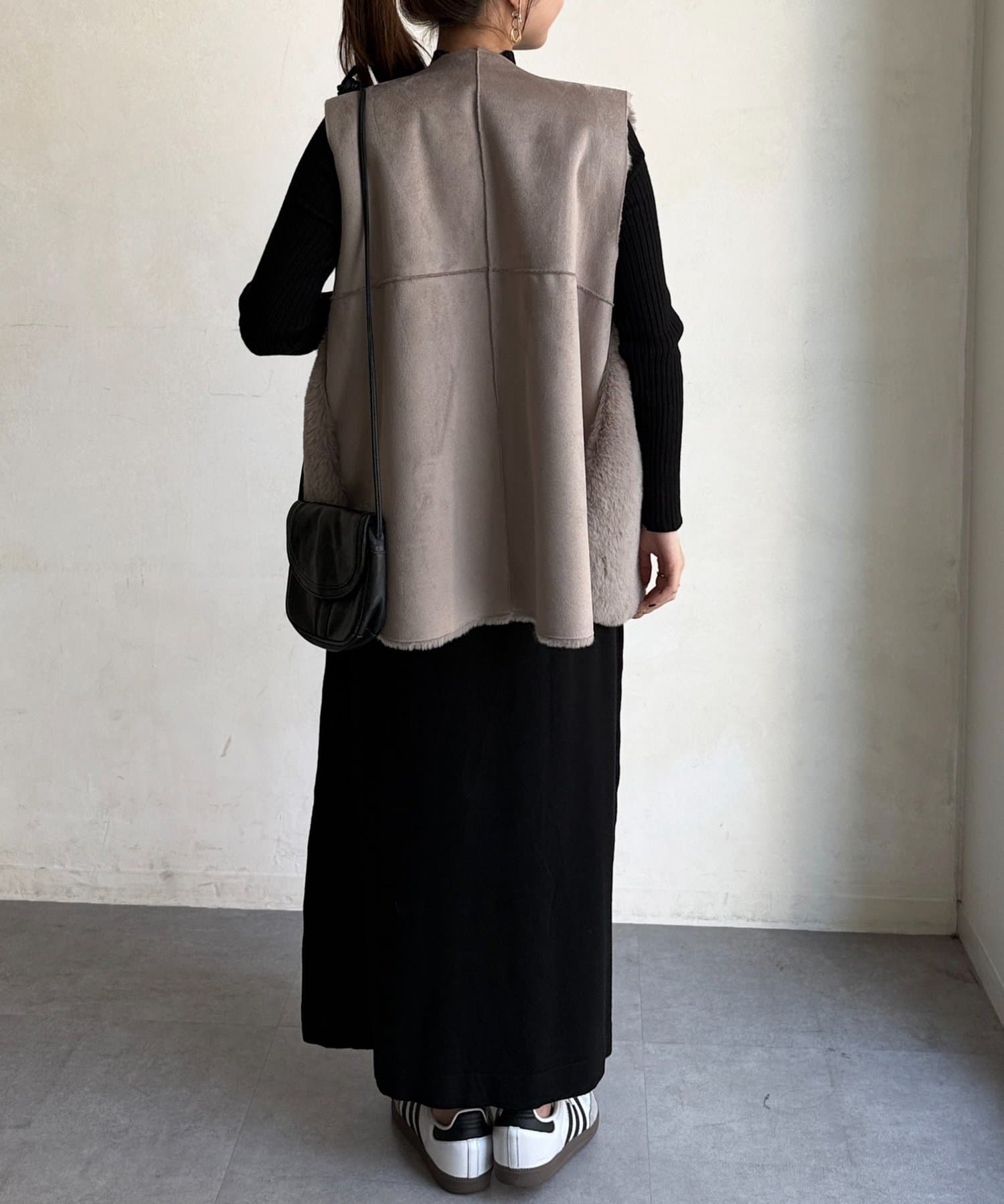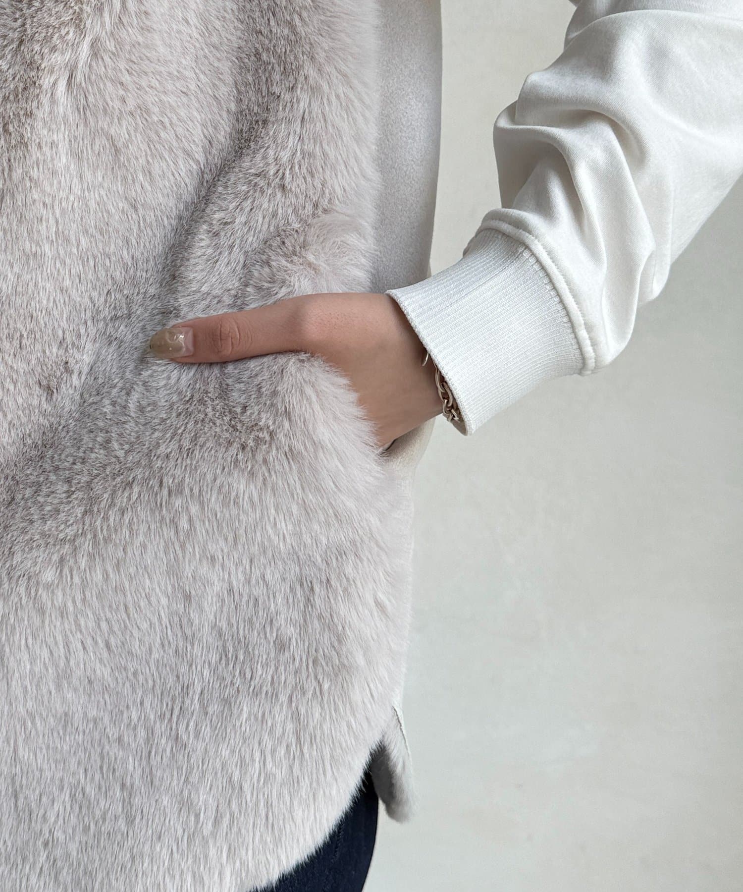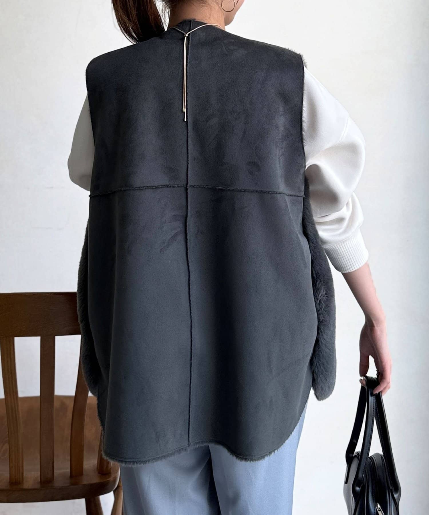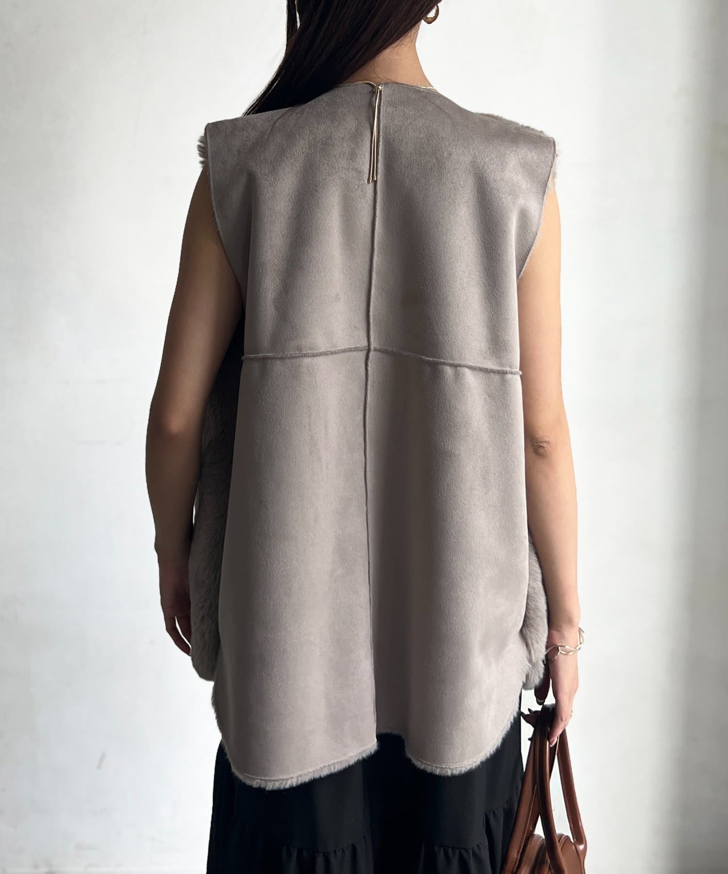 前がフェイクファーで後ろがフェイクムートンの切替ベスト。