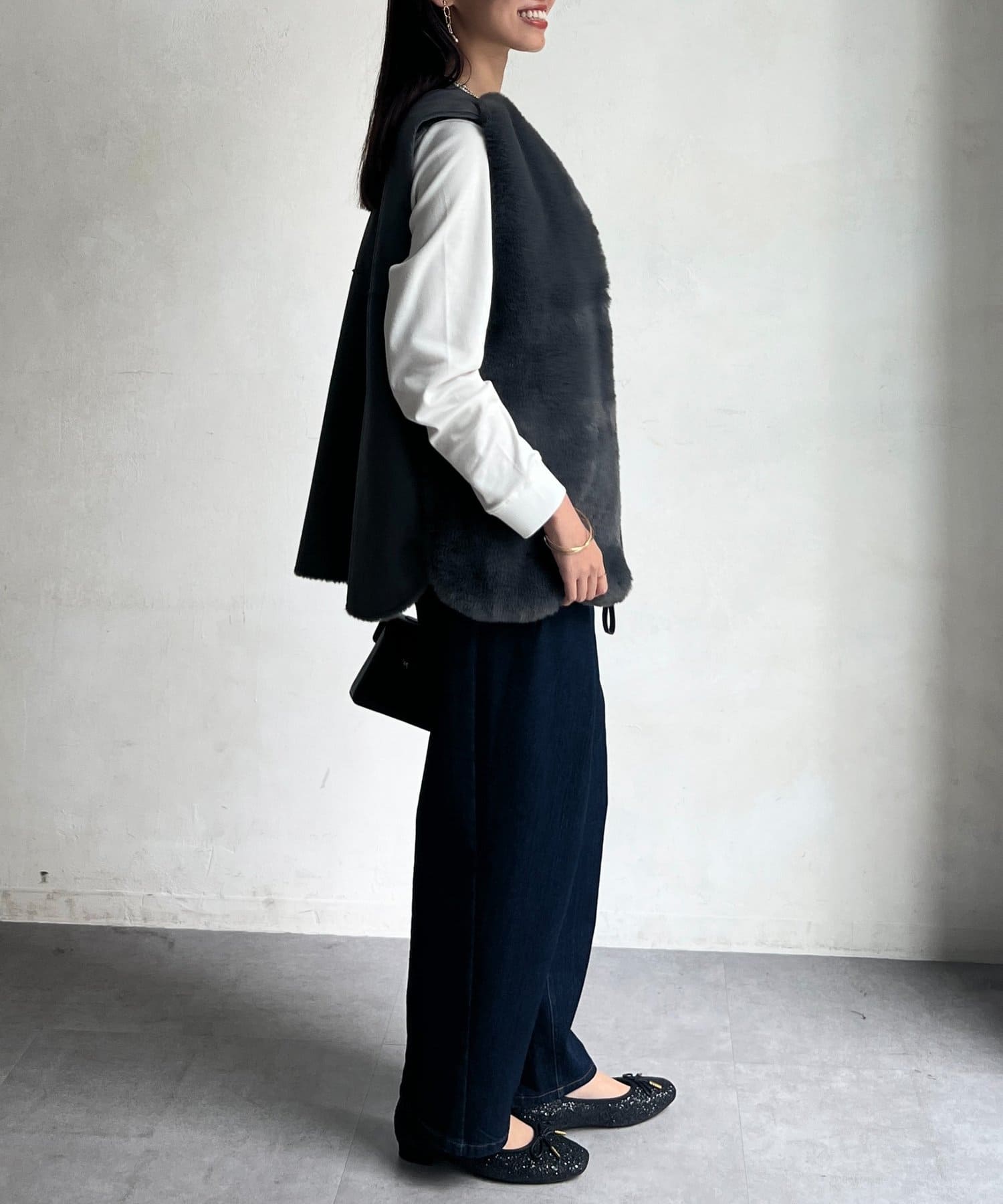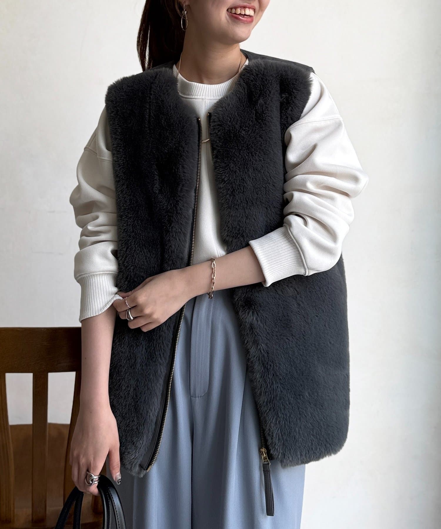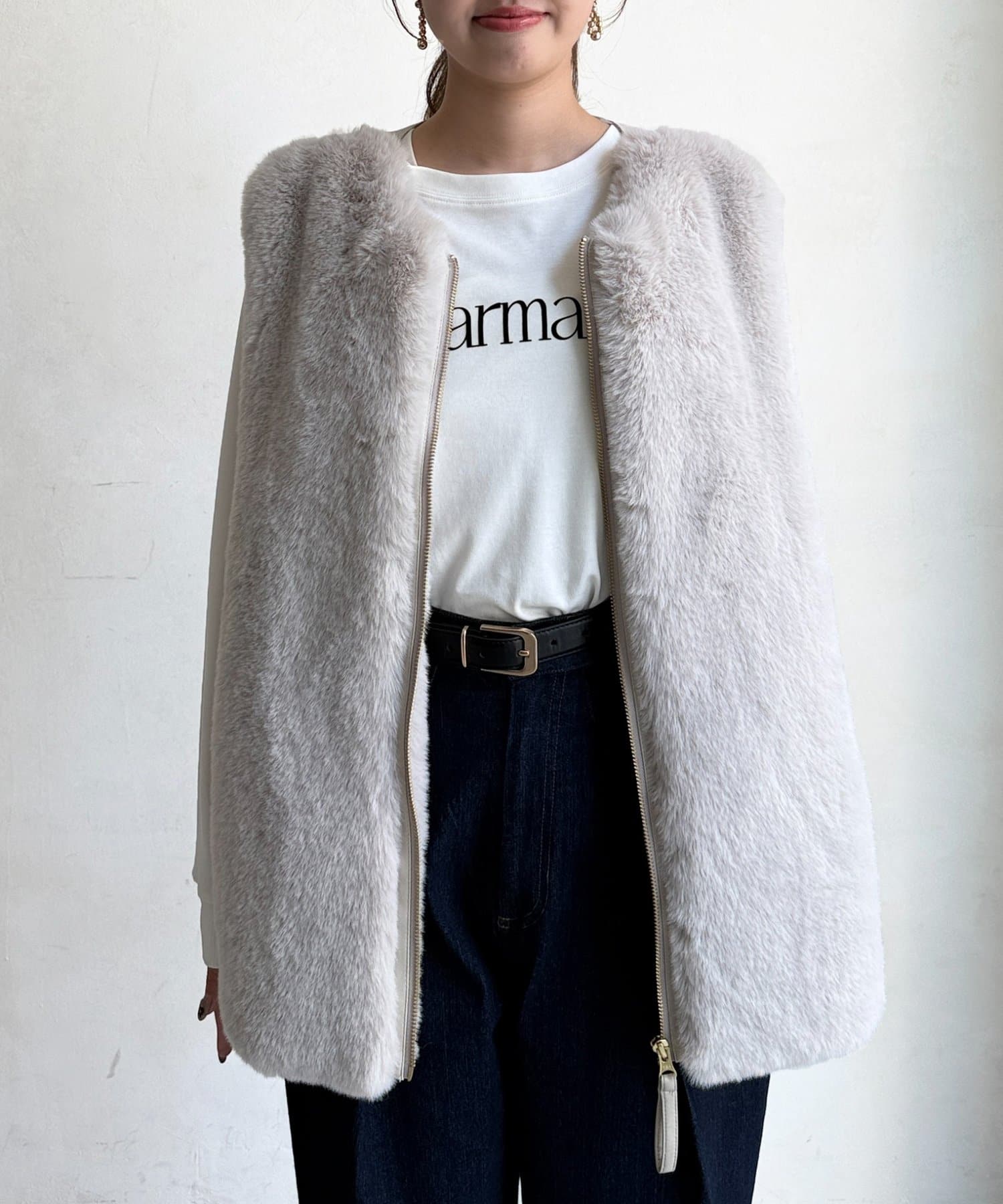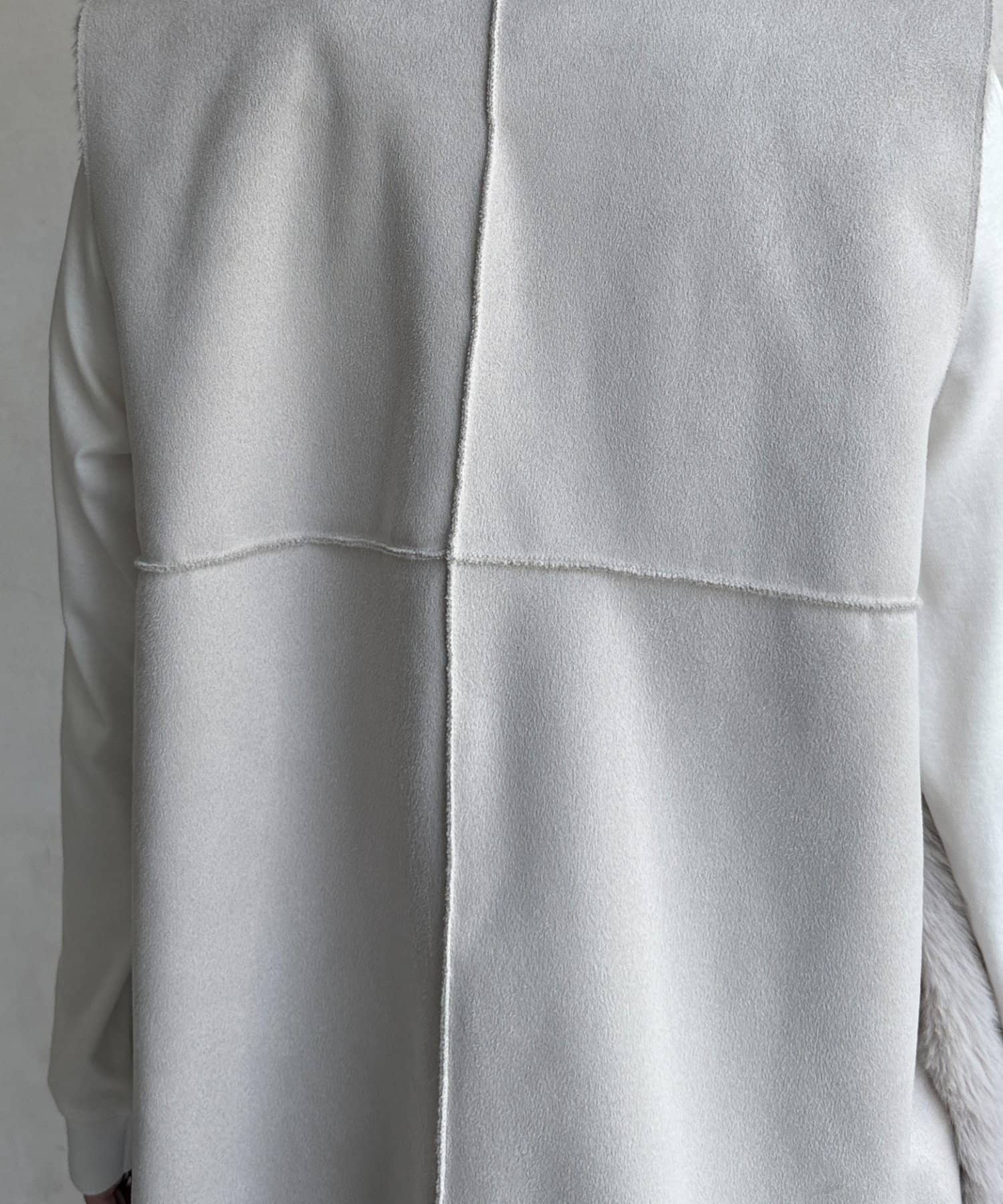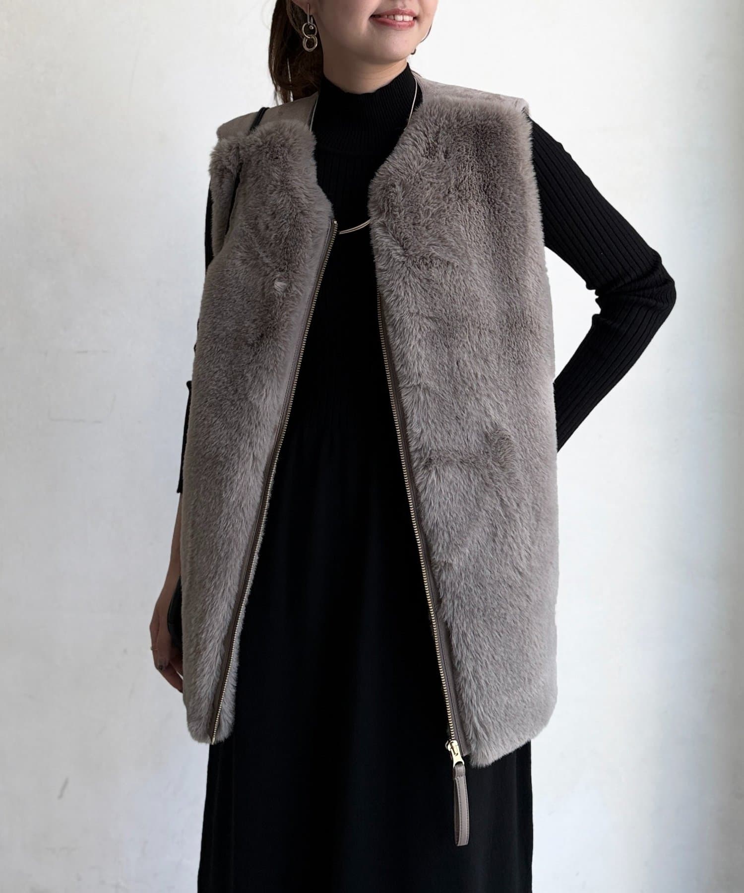 前がフェイクファーで後ろがフェイクムートンの切替ベスト。