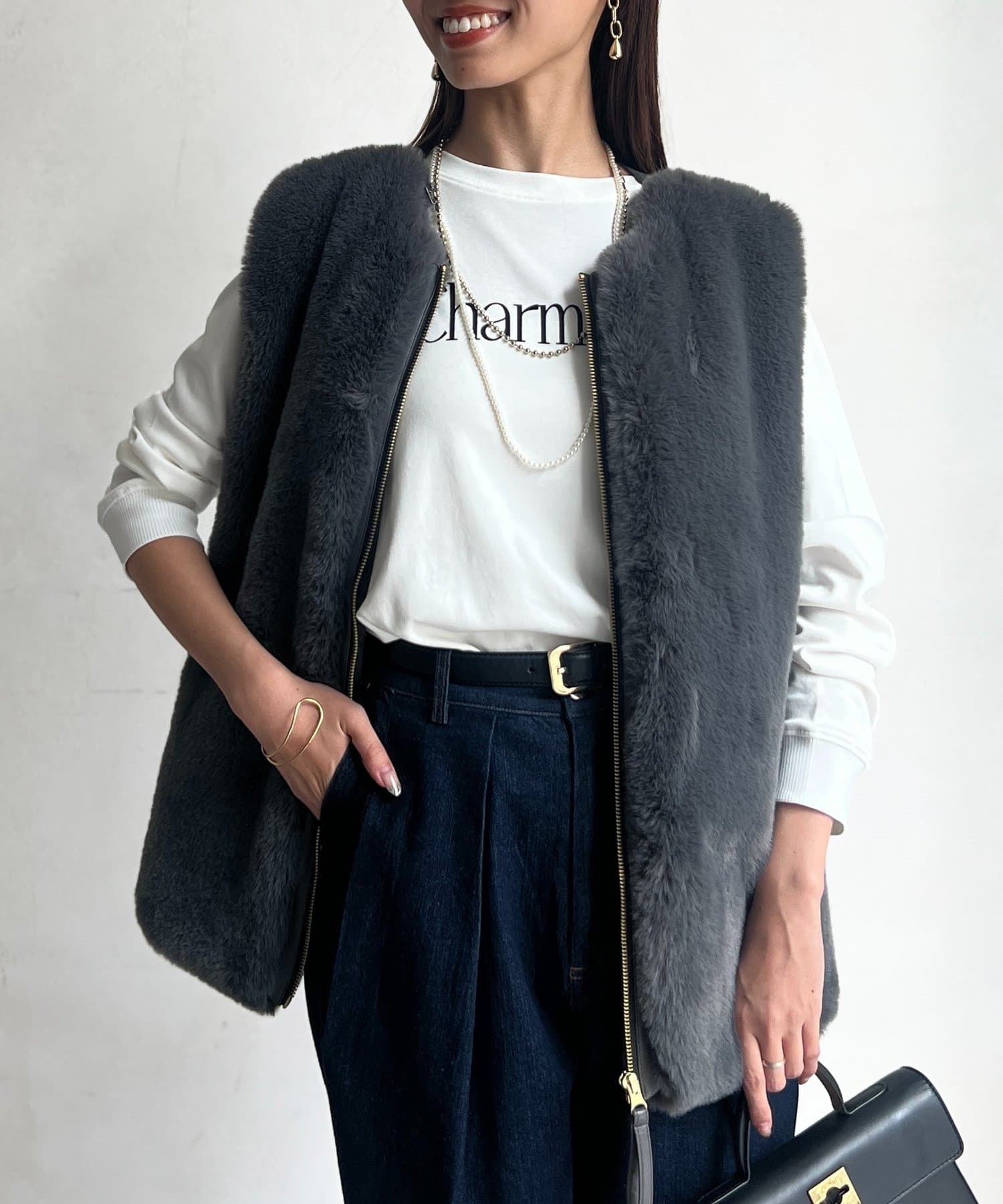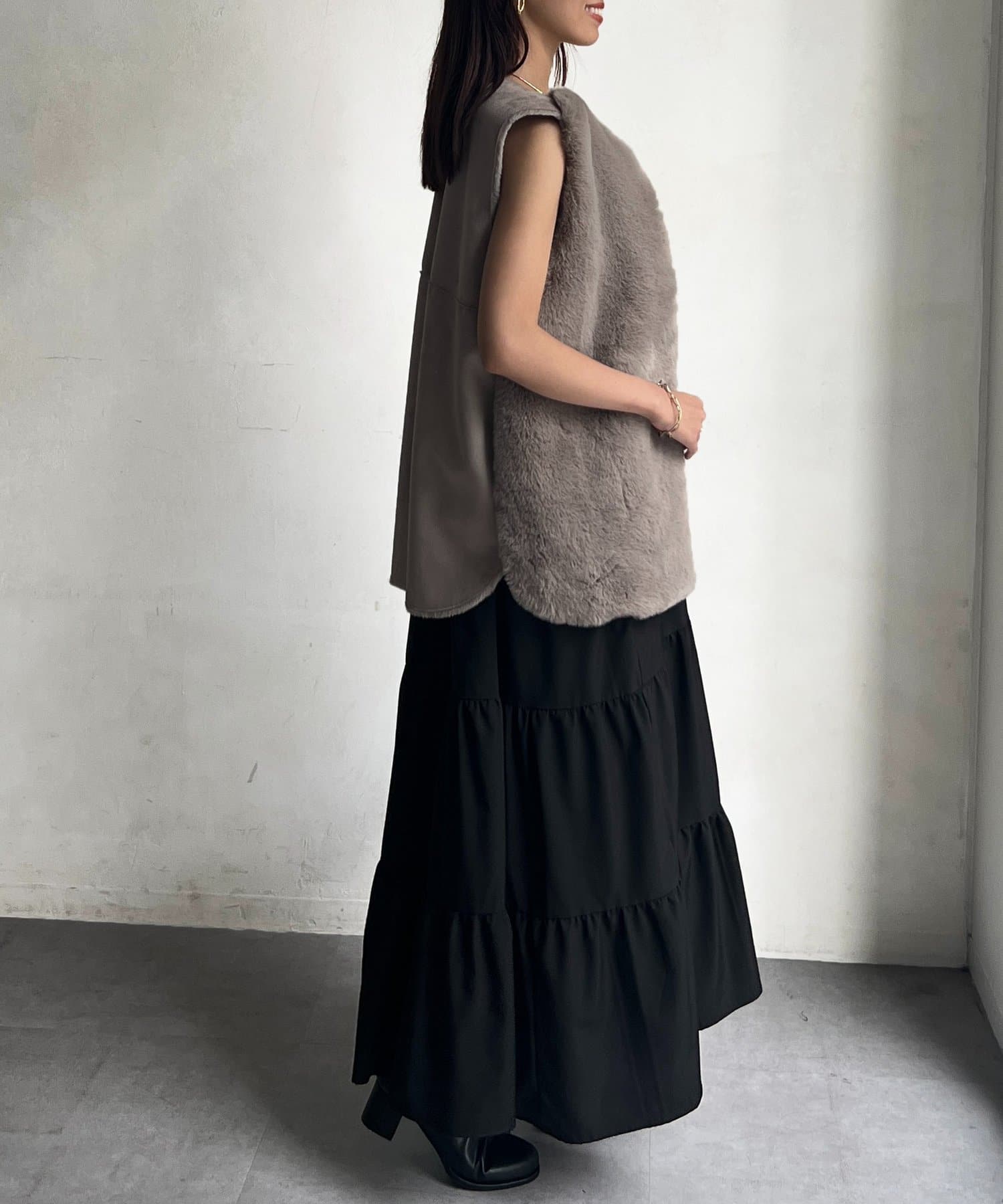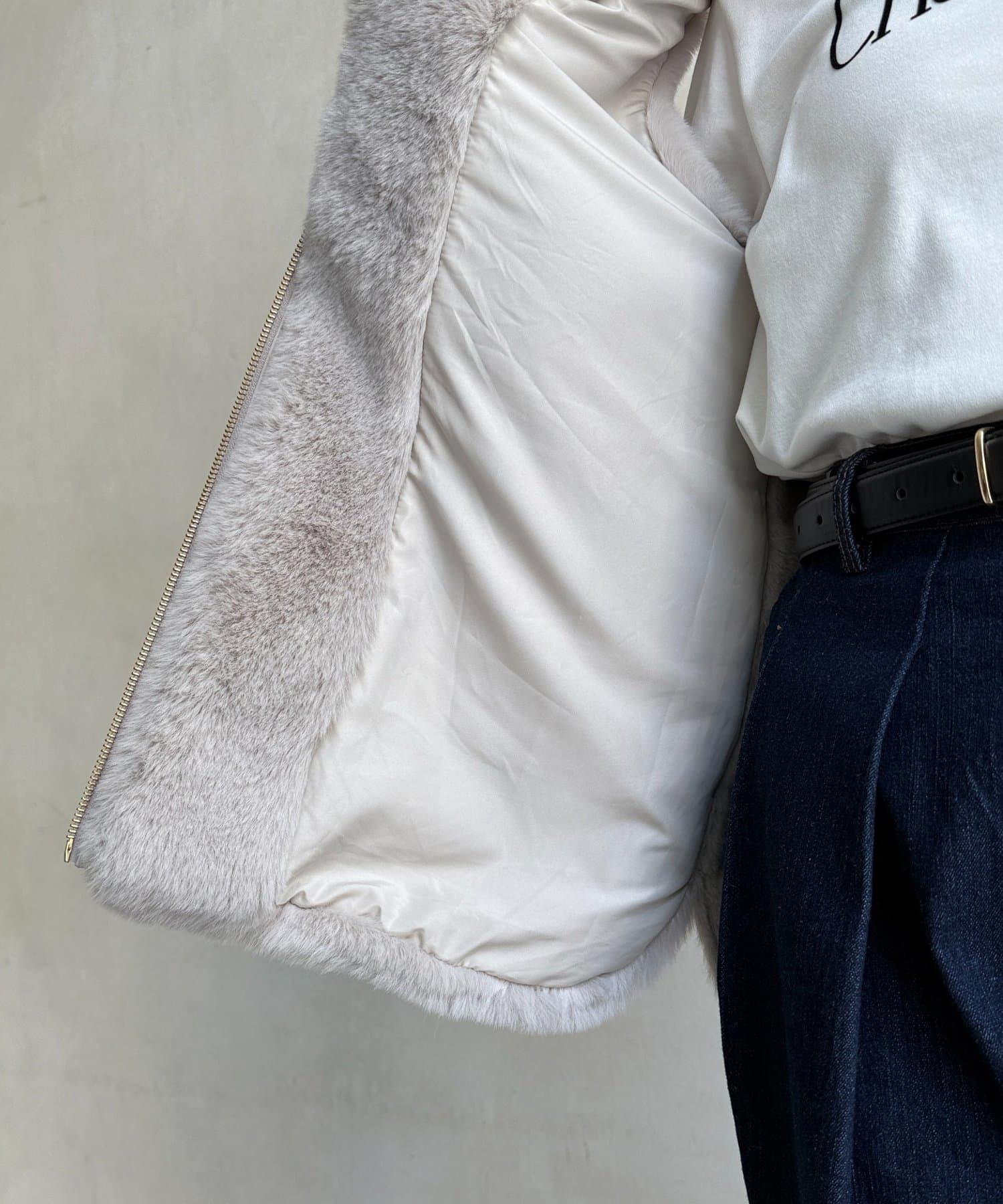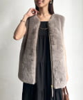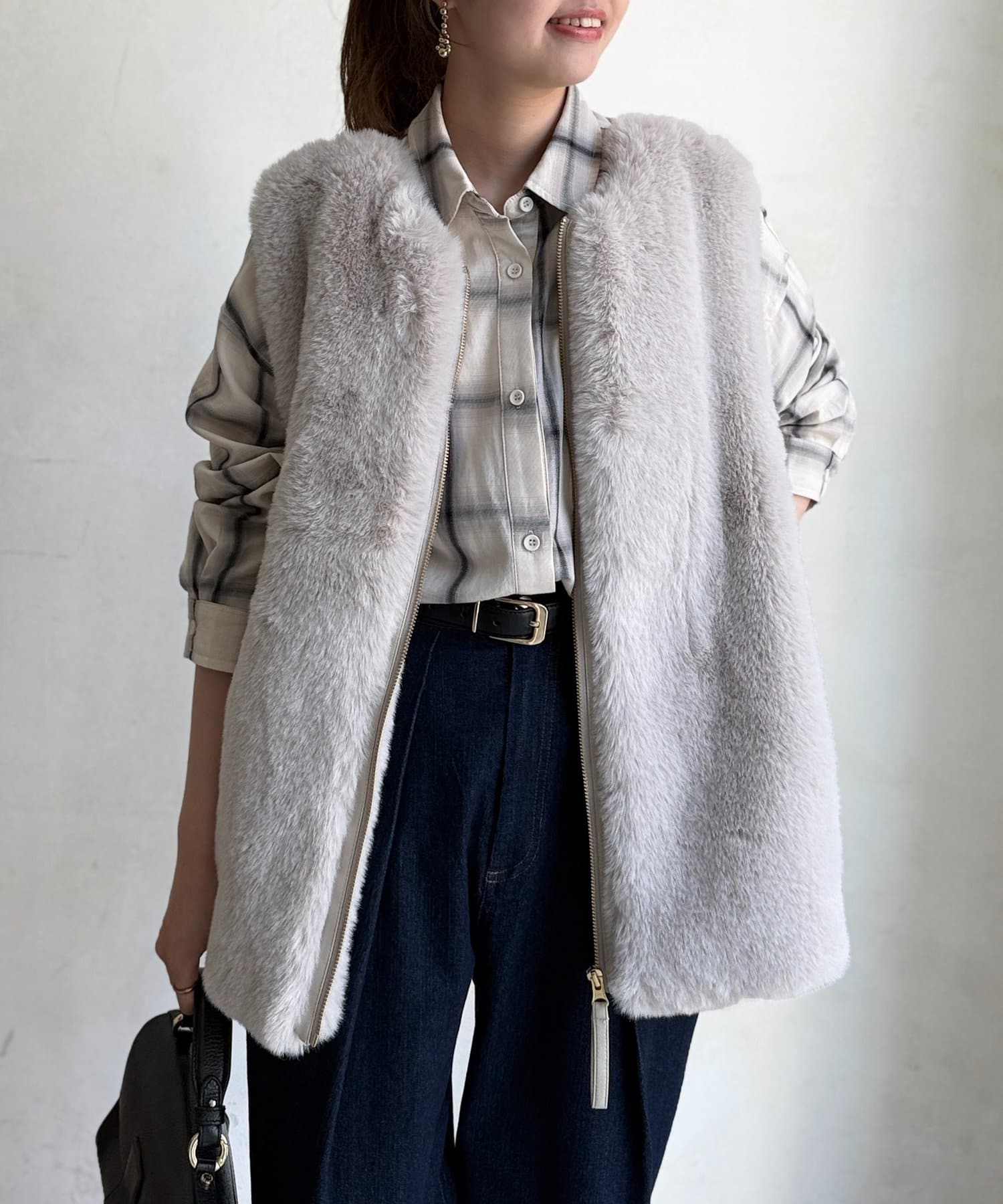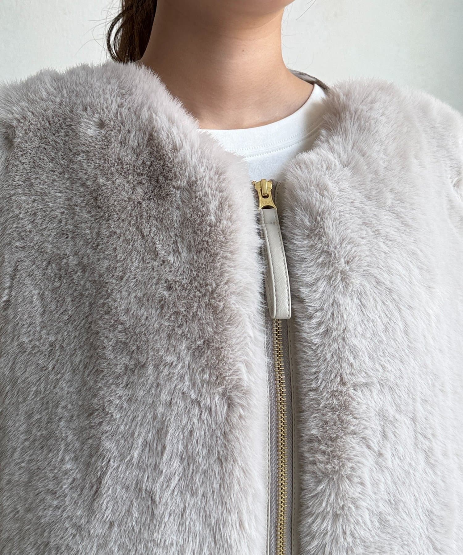 前がフェイクファーで後ろがフェイクムートンの切替ベスト。