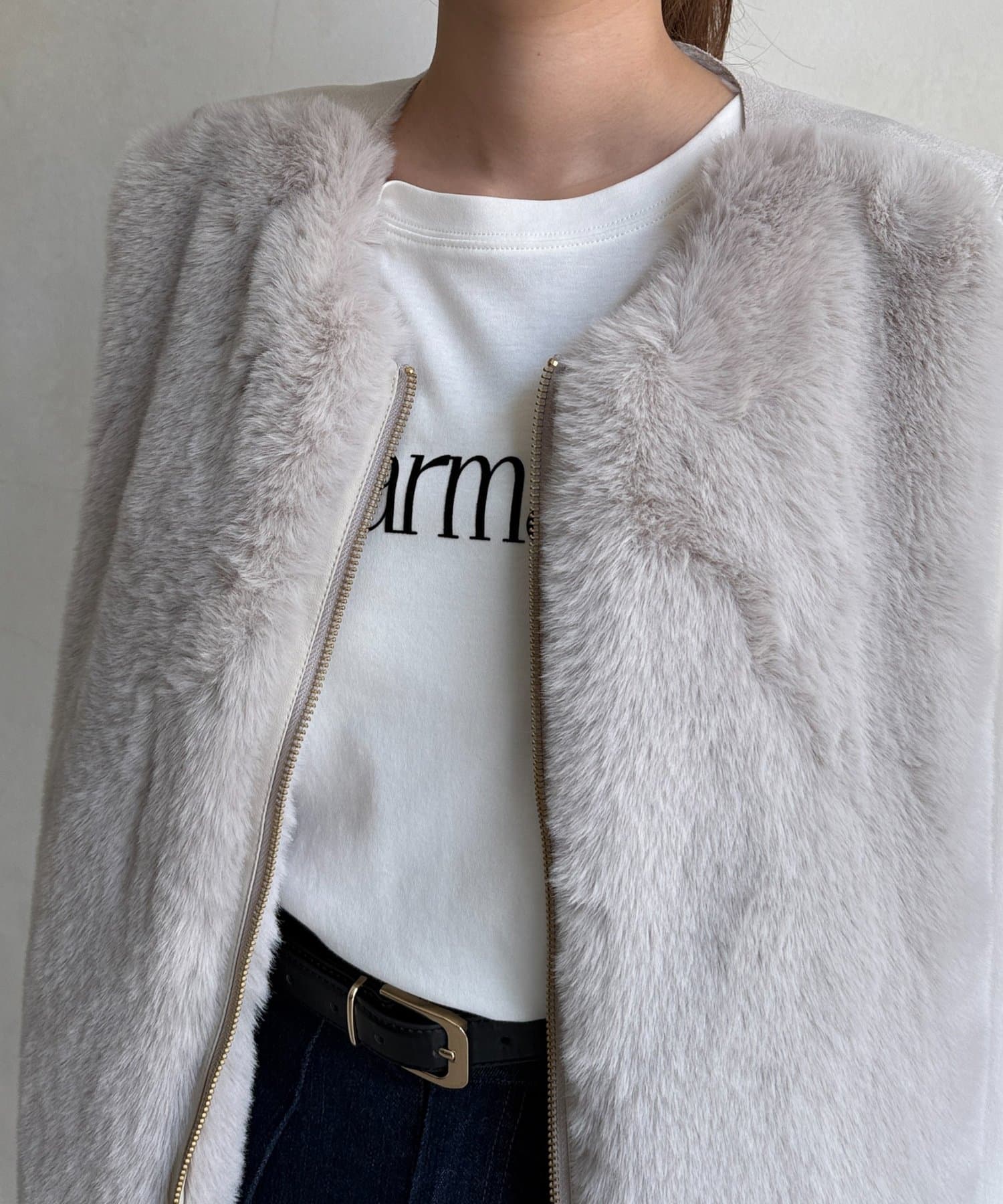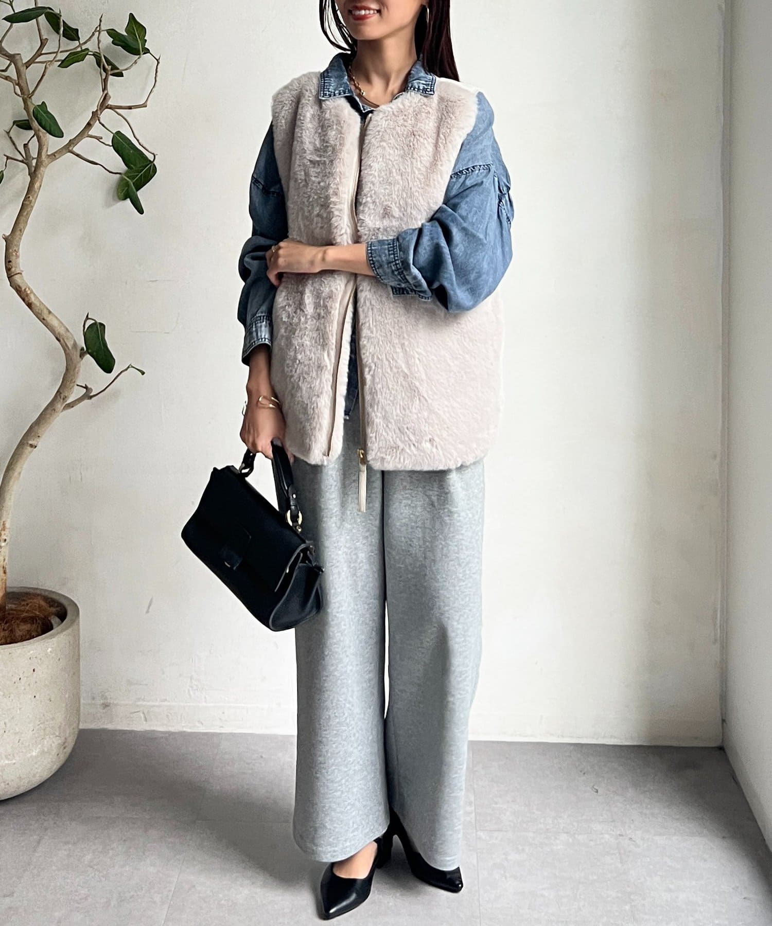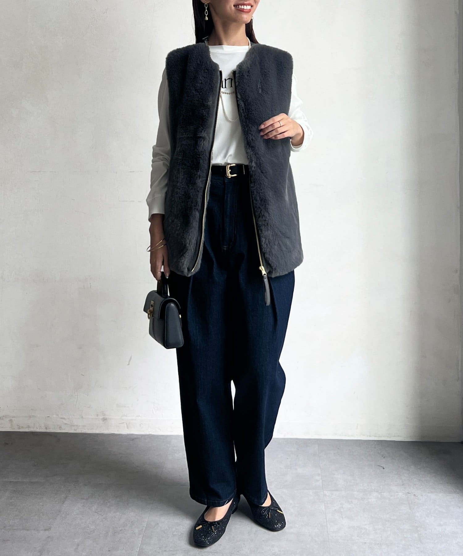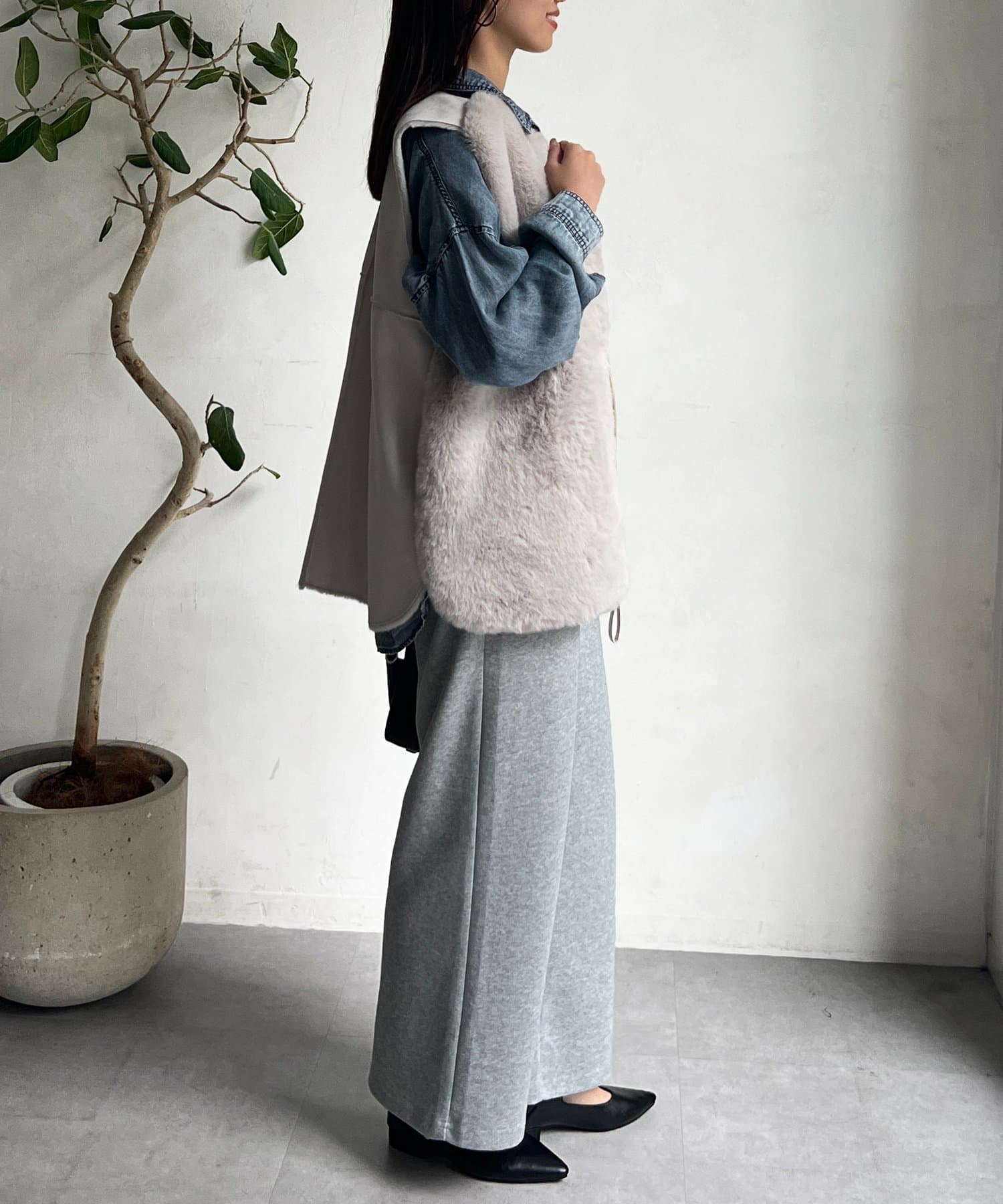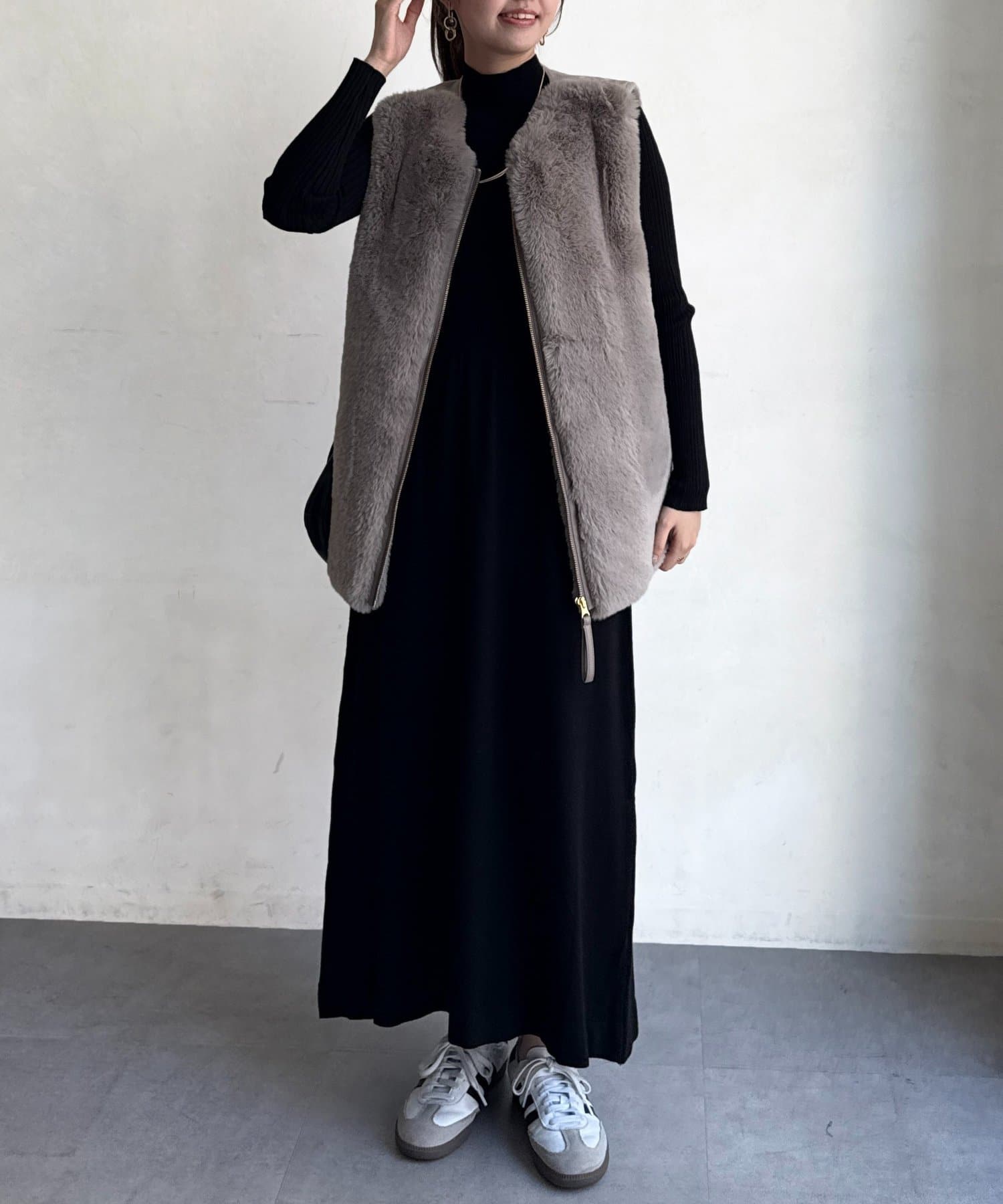 前がフェイクファーで後ろがフェイクムートンの切替ベスト。