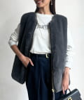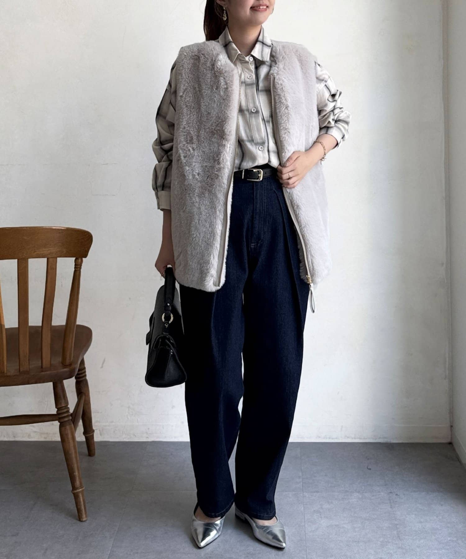 シンプルなコーデにレイヤードしていただくだけでこなれた印象に。