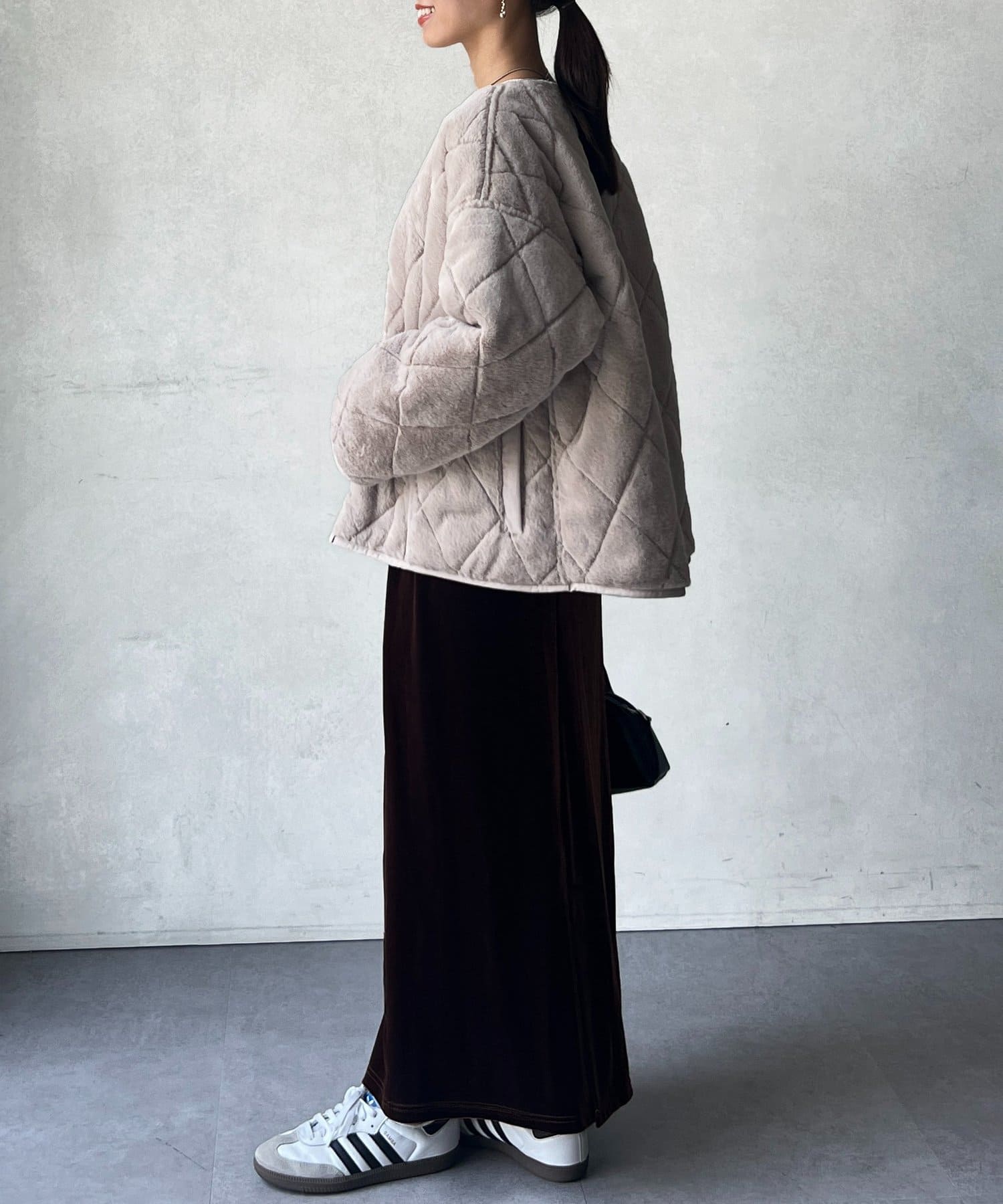 ファーとキルティングのリバーシブルで気分を変えて着用できるジャケット