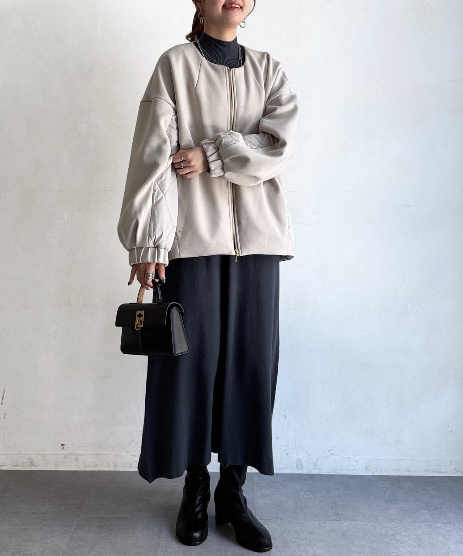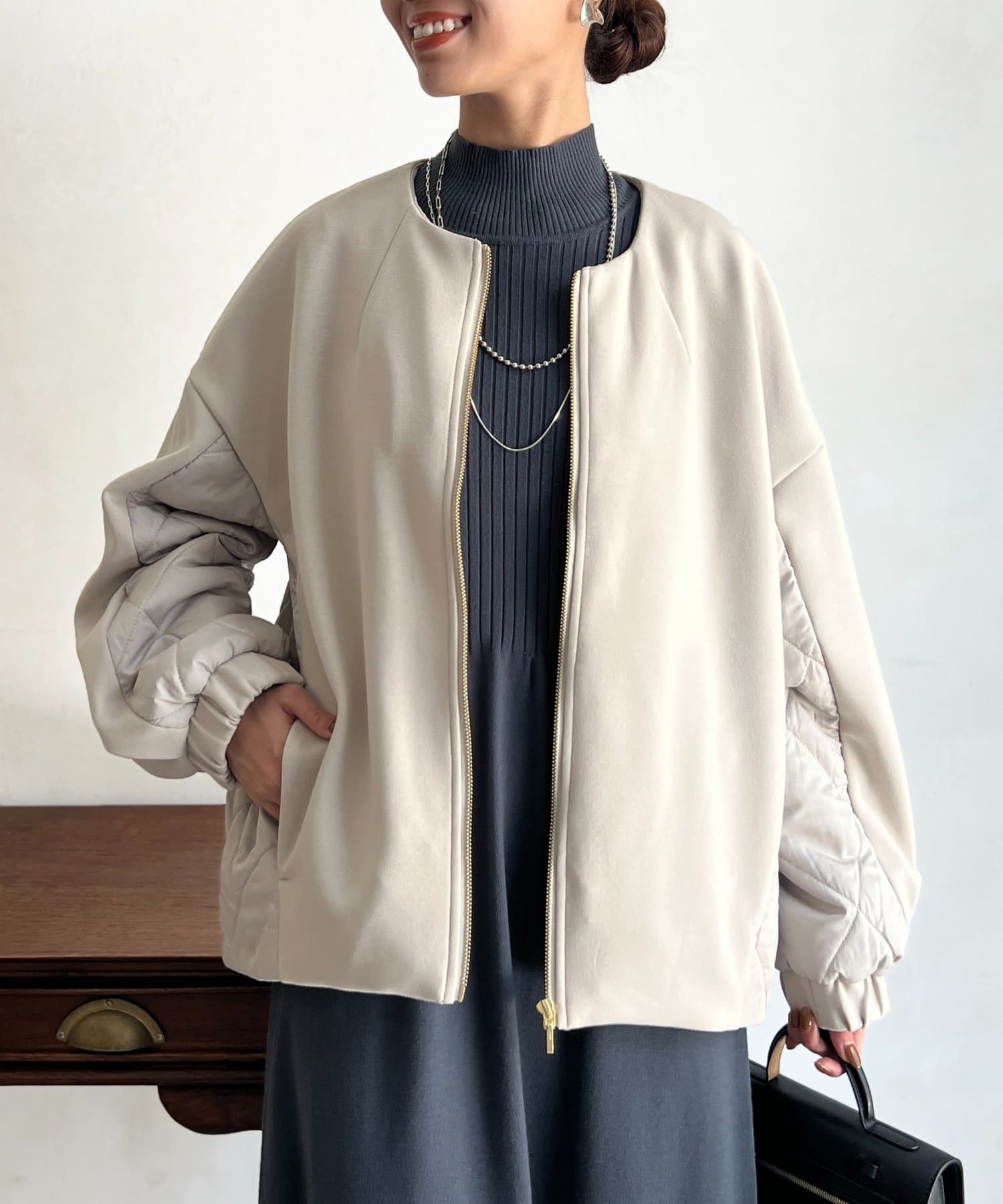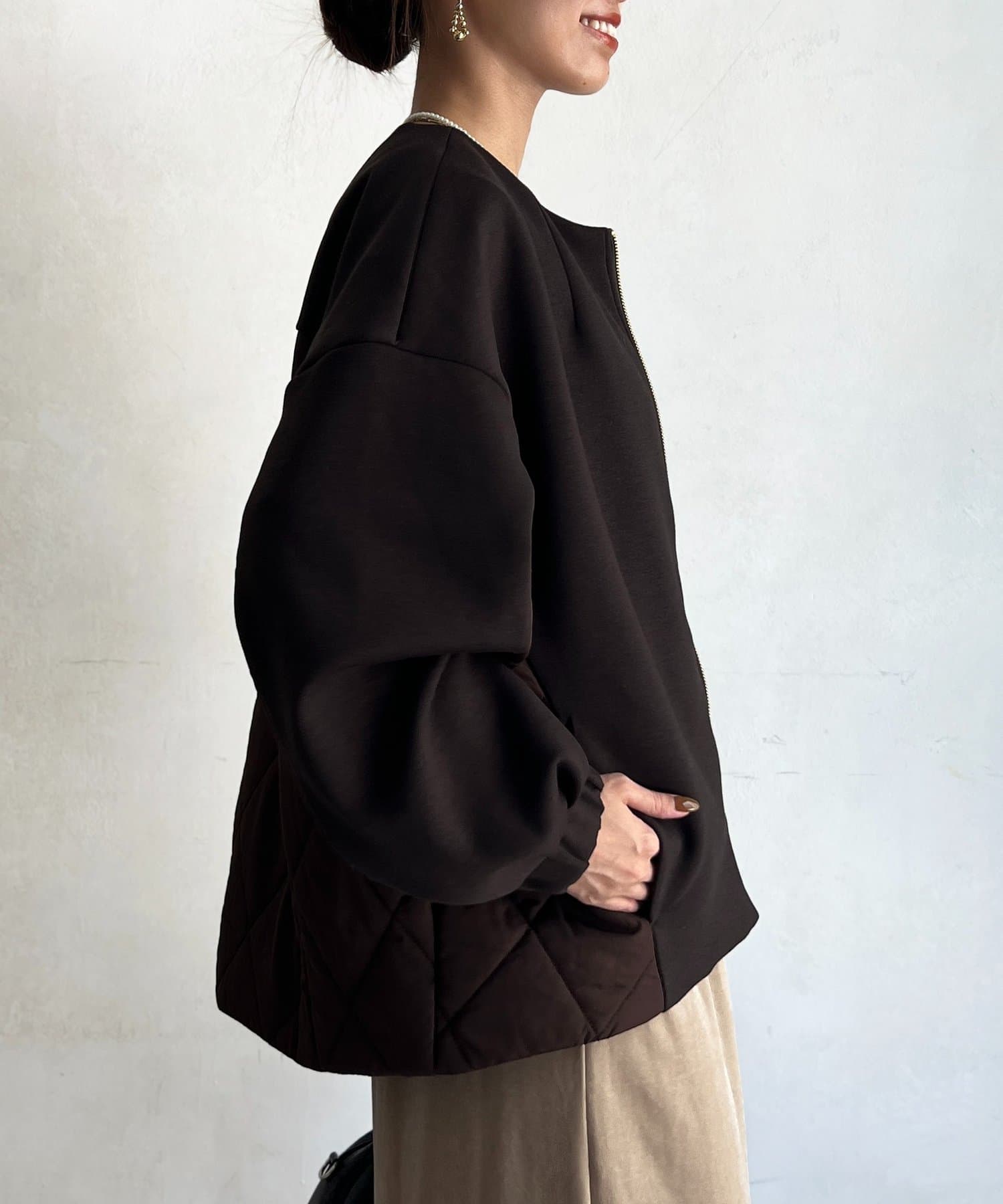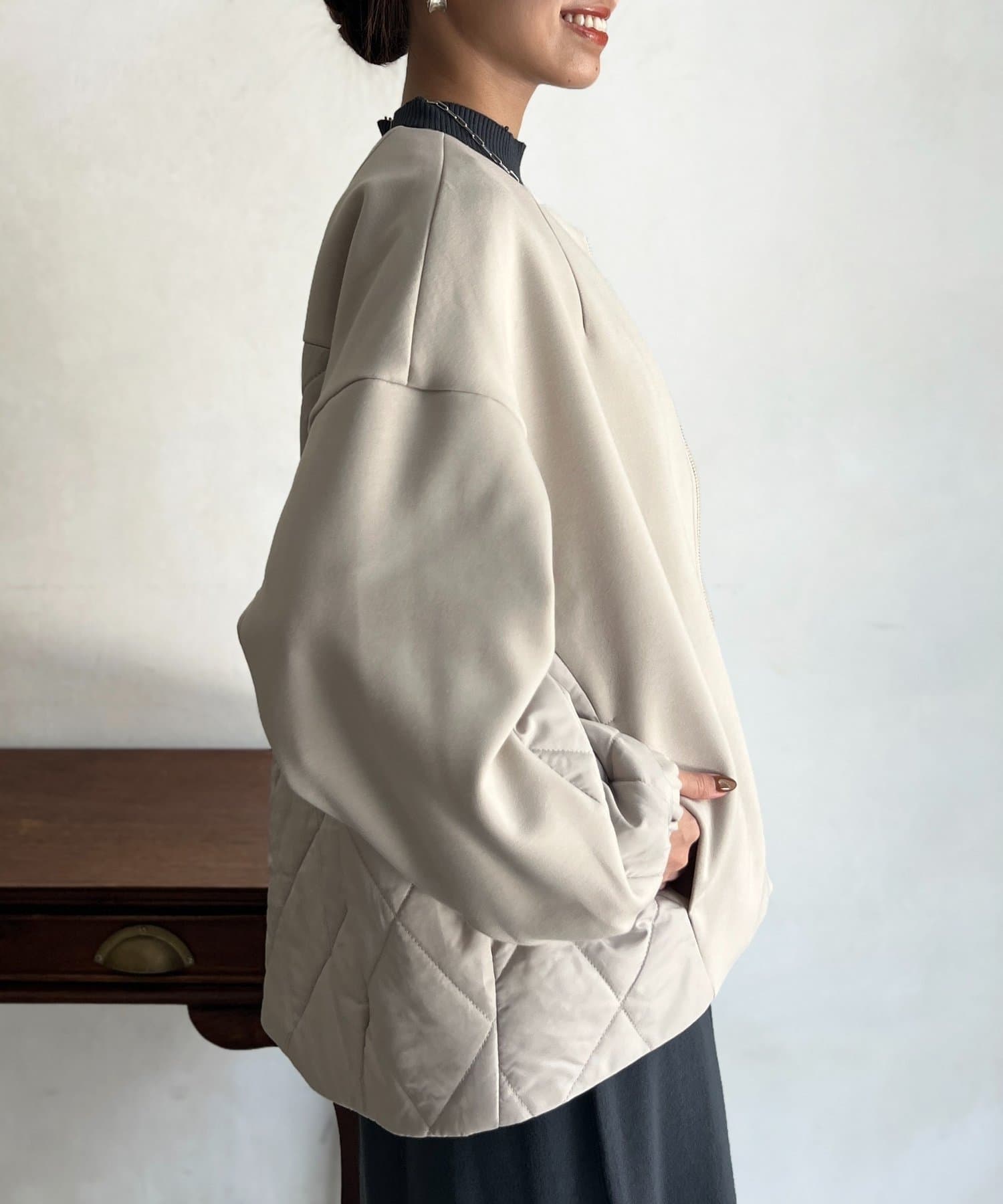 ボンディング×キルティングコクーンジャケット