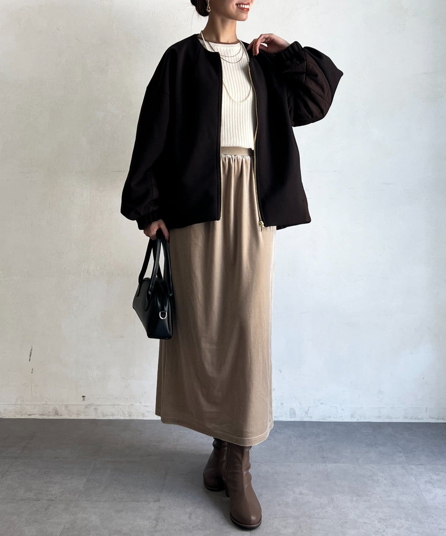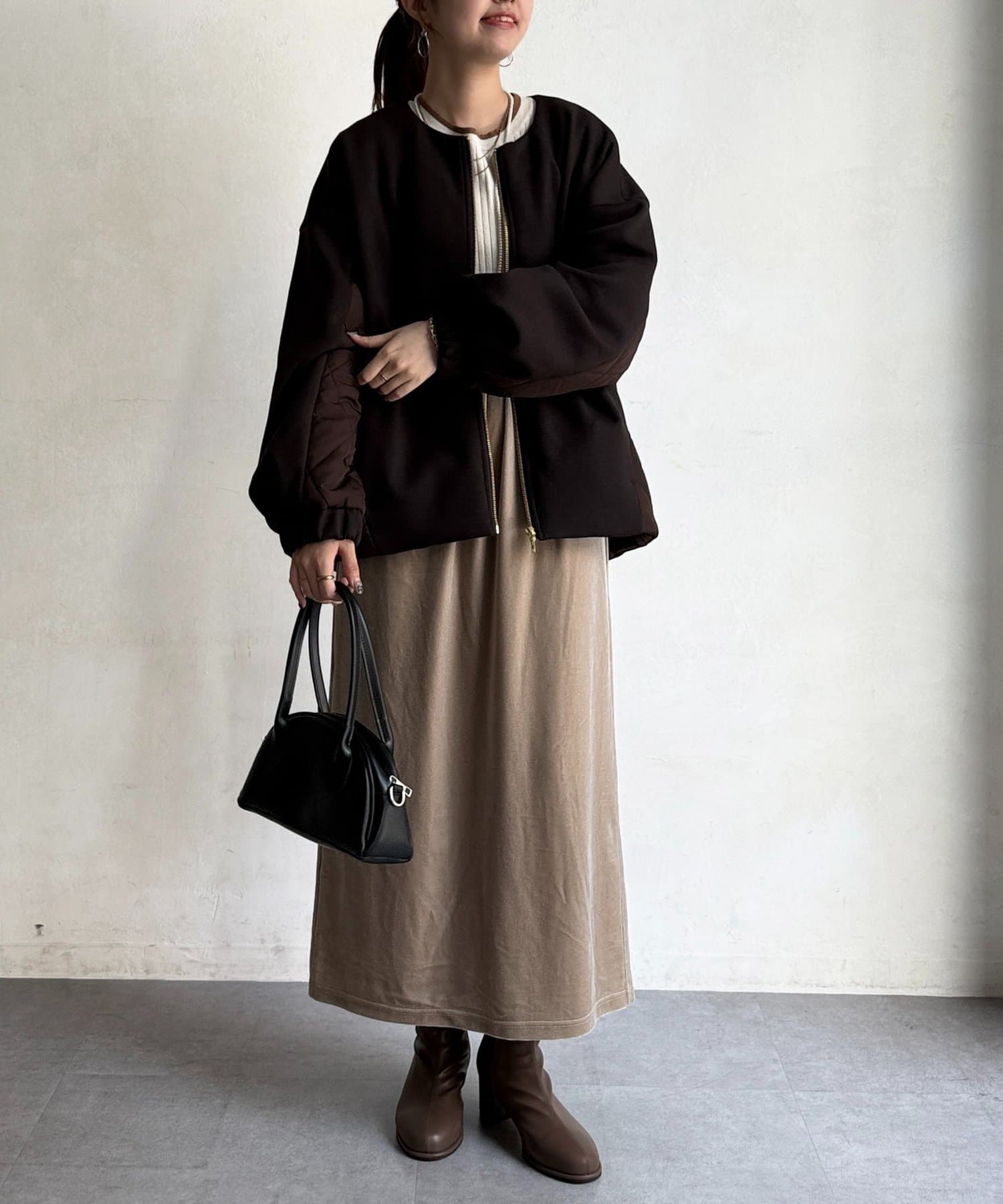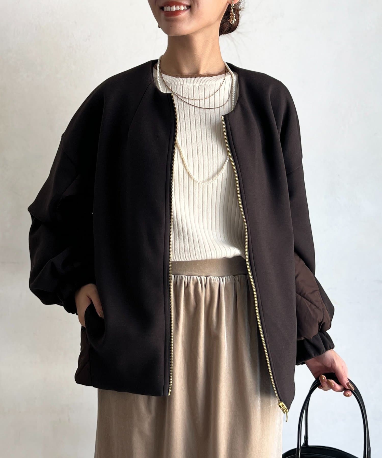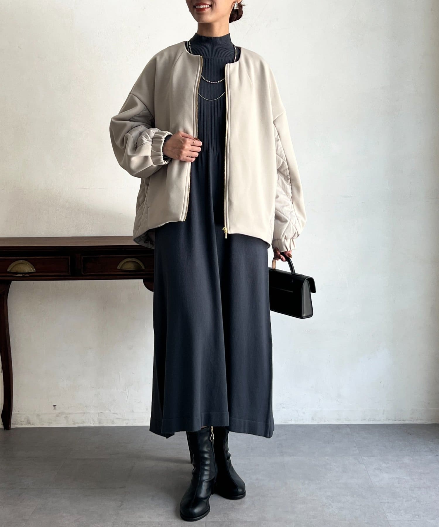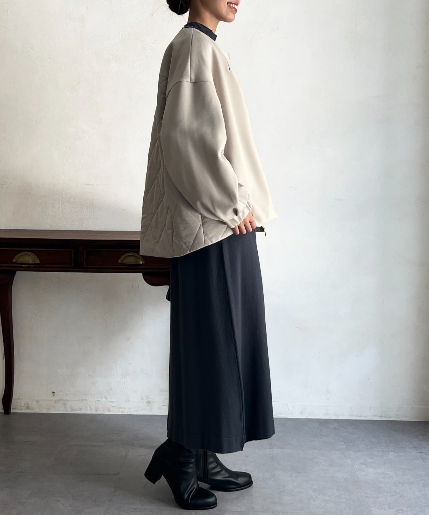 ボンディング×キルティングコクーンジャケット