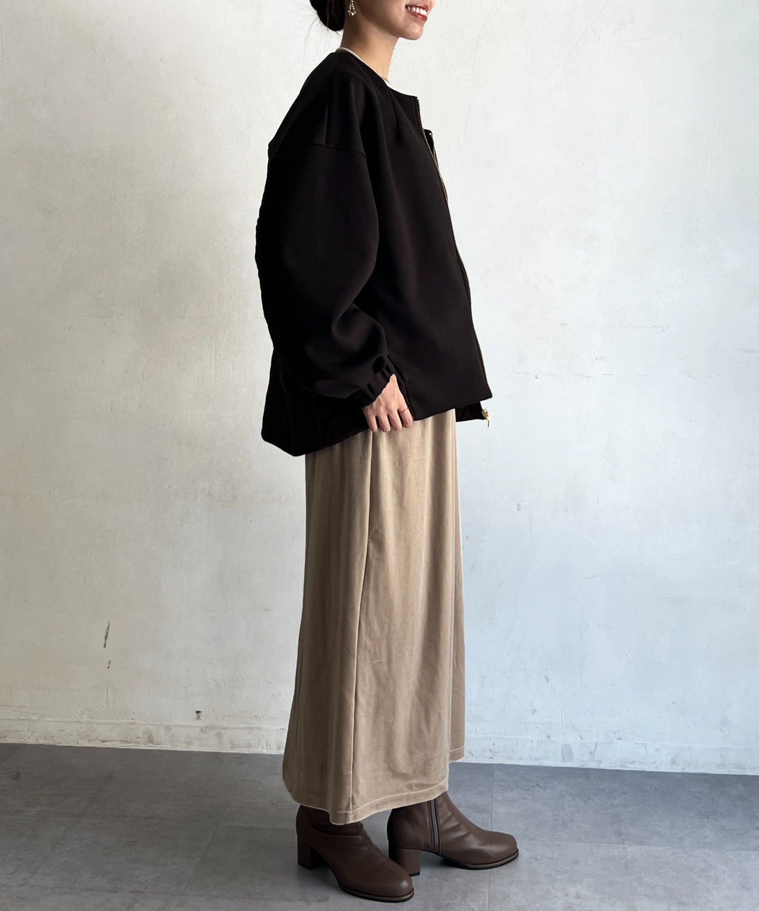 さり気なくヒップラインをカバーしてくれるコクーンジャケット