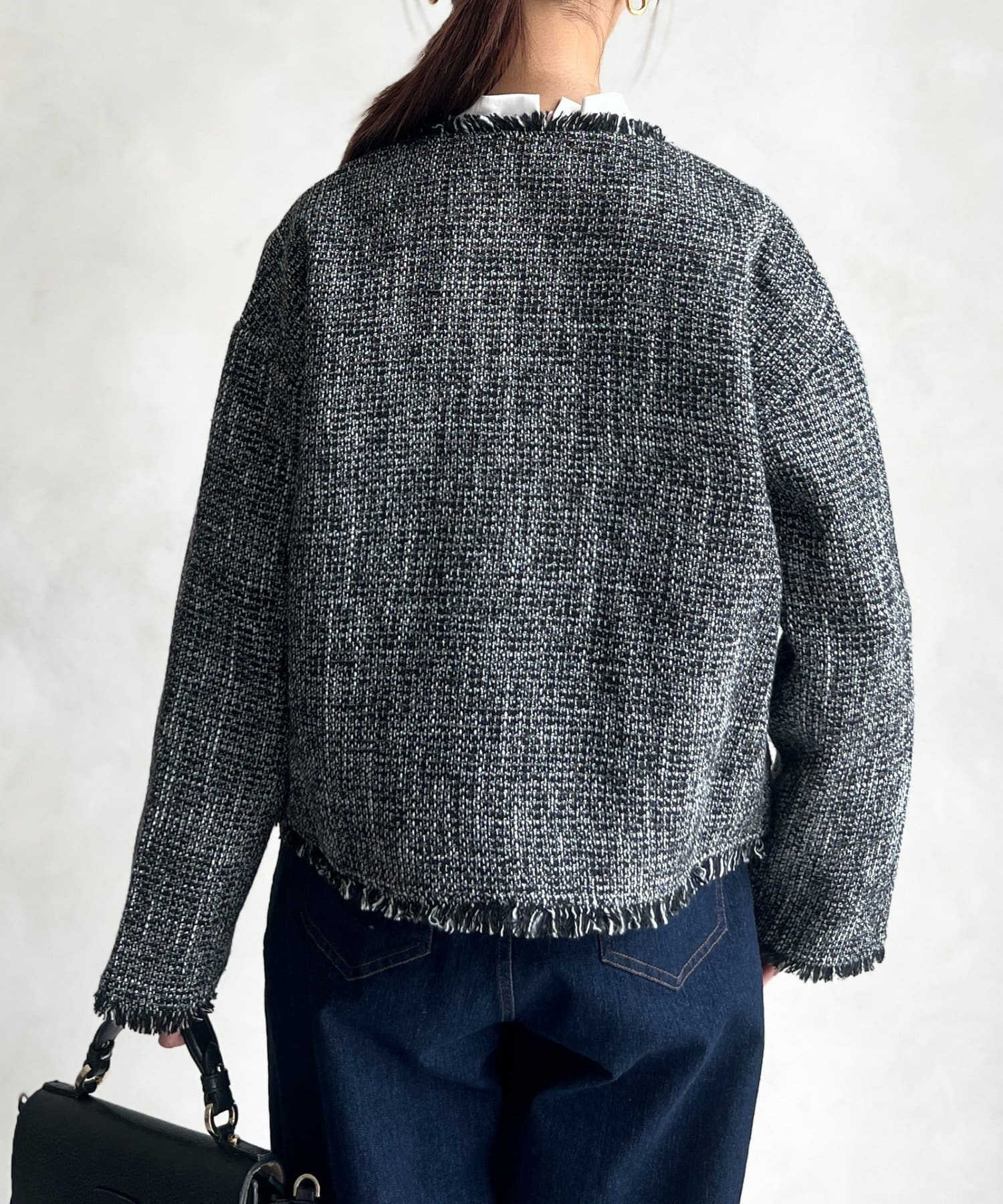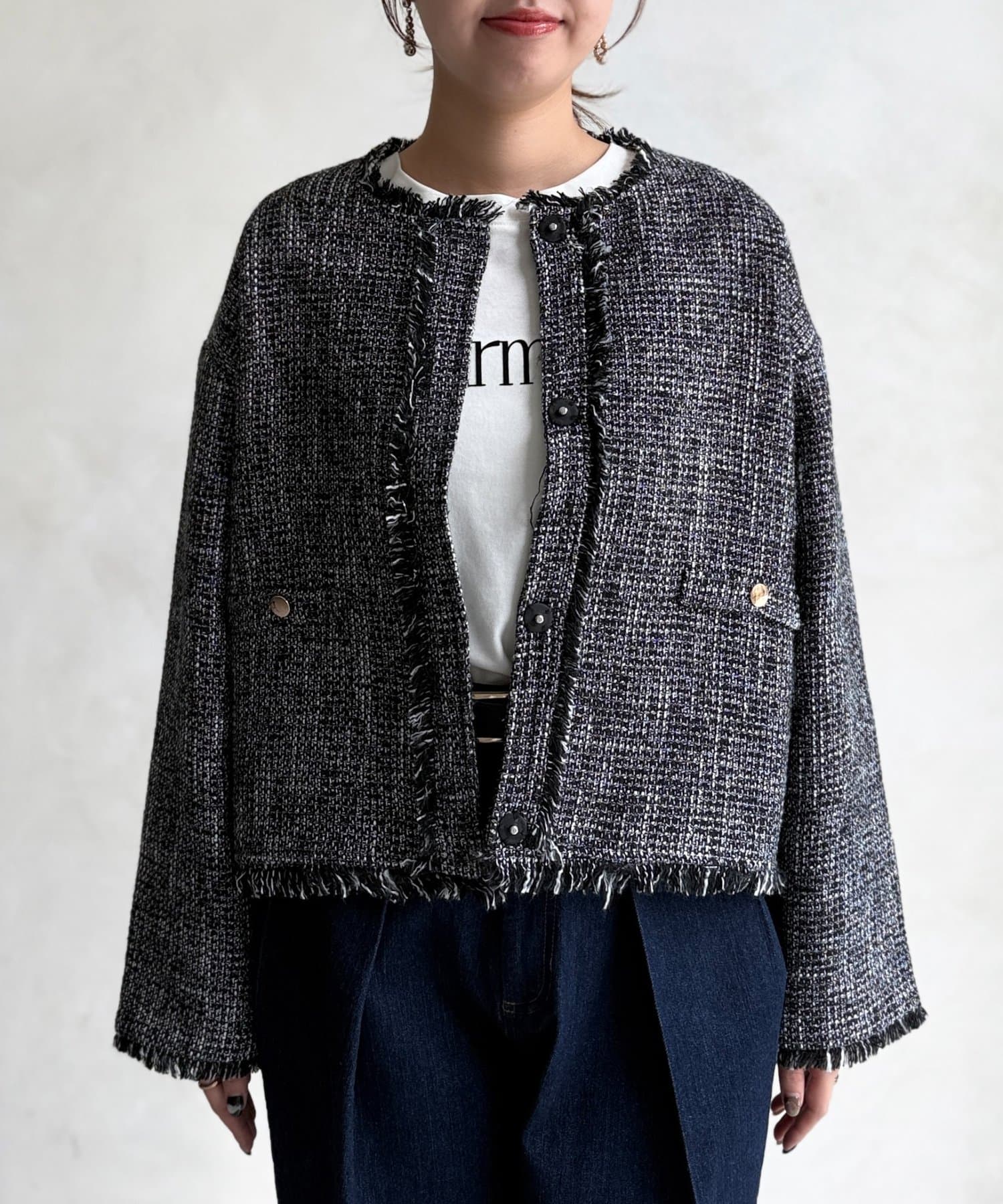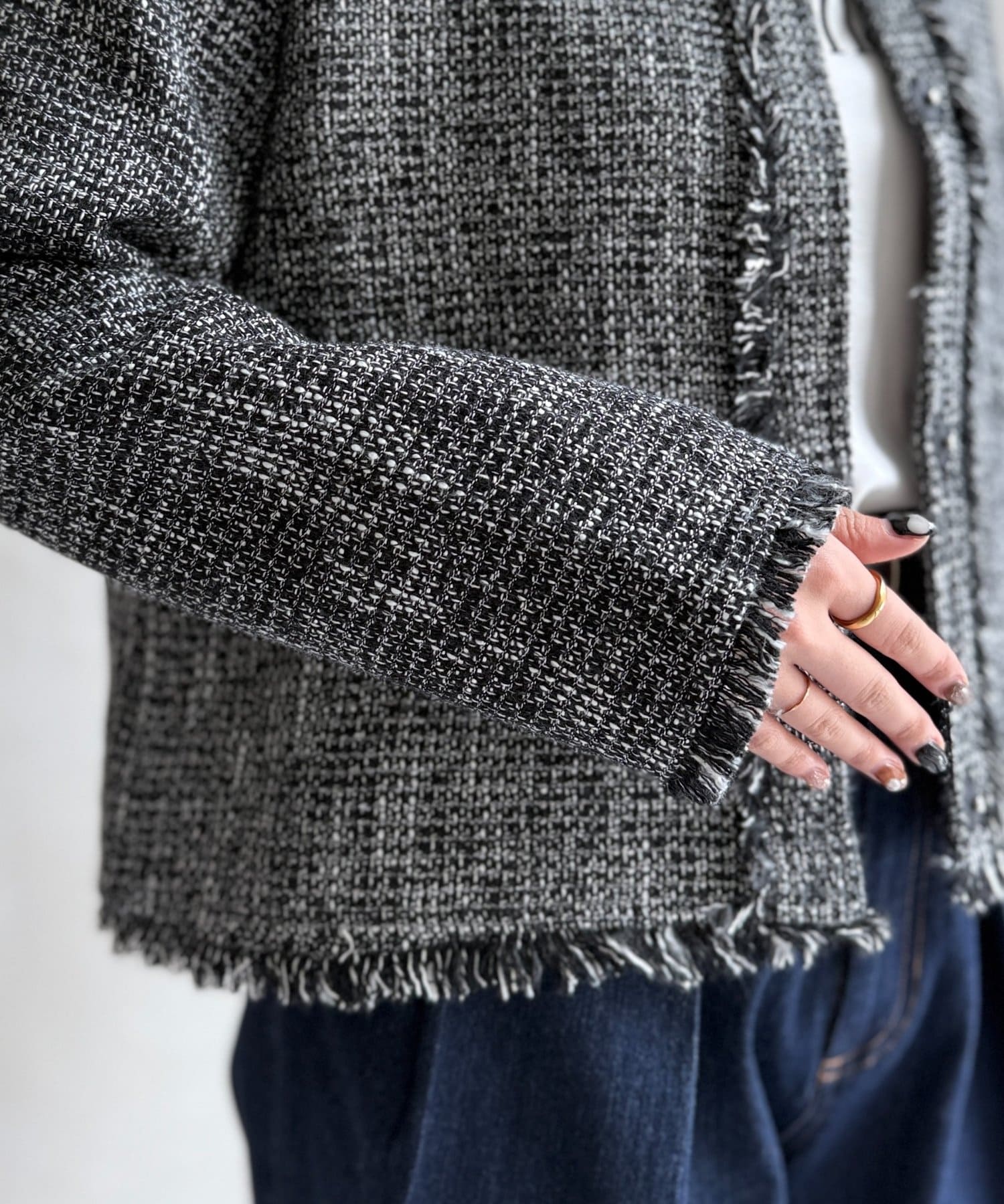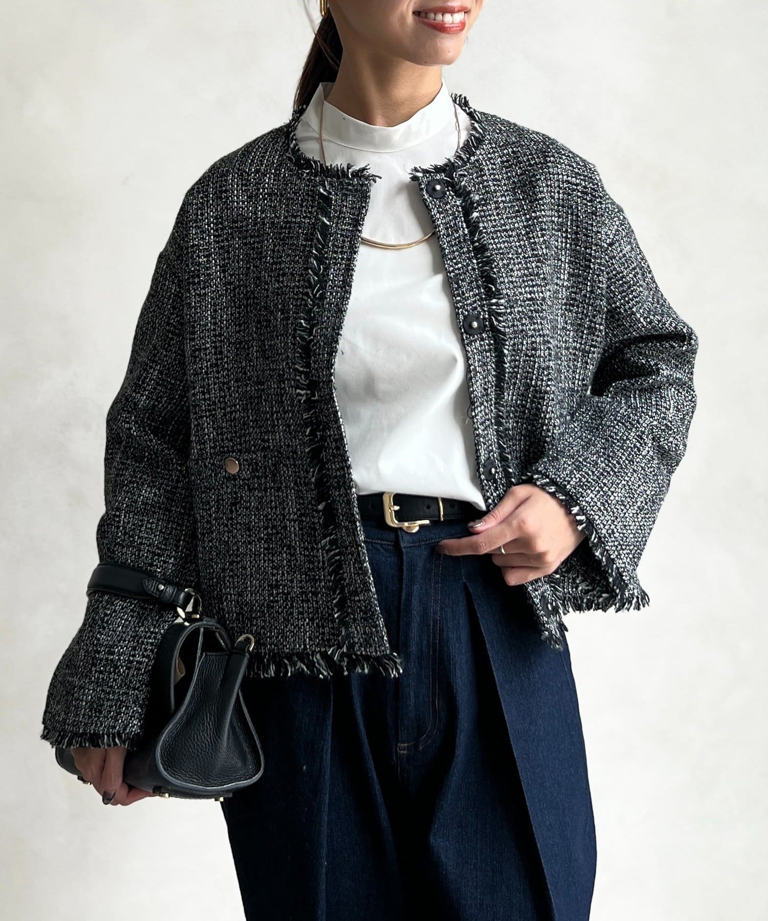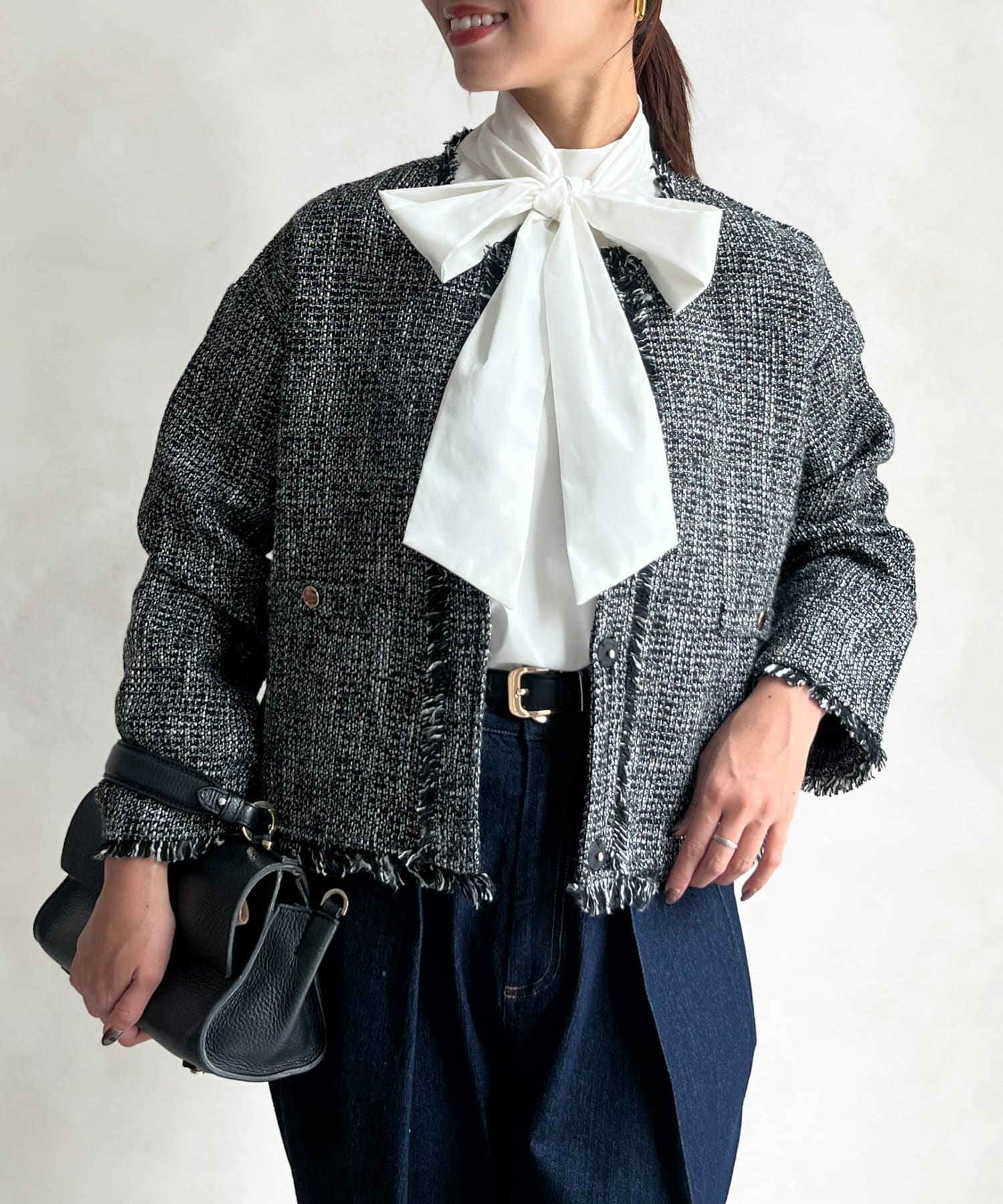 きちんと感のあるツイードジャケットは、デニムなどカジュアルなアイテムとの組み合わせで抜け感を出すのがおすすめです。