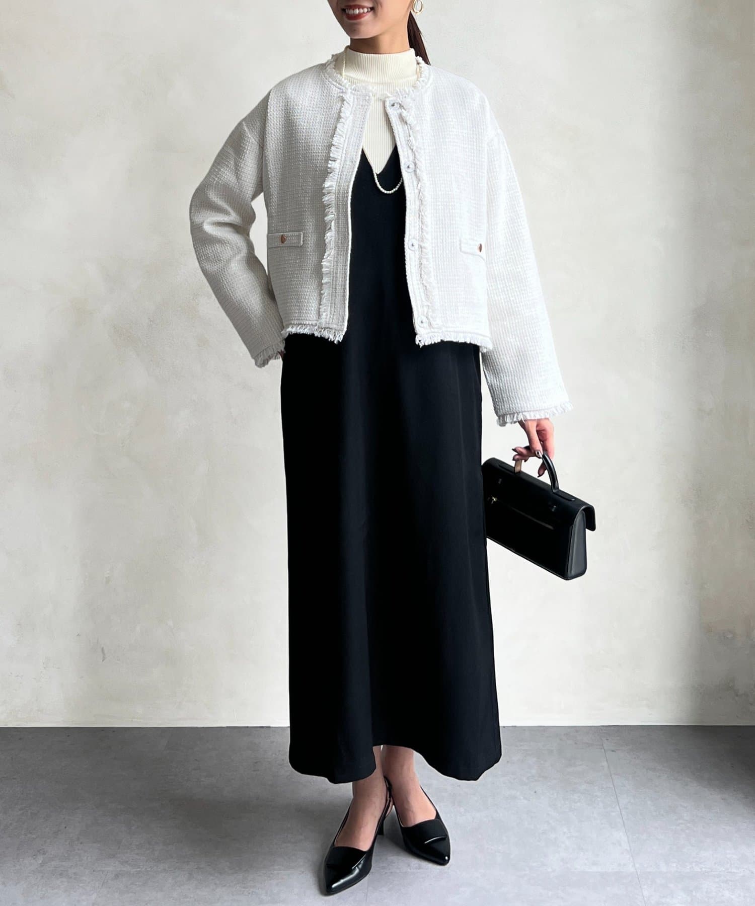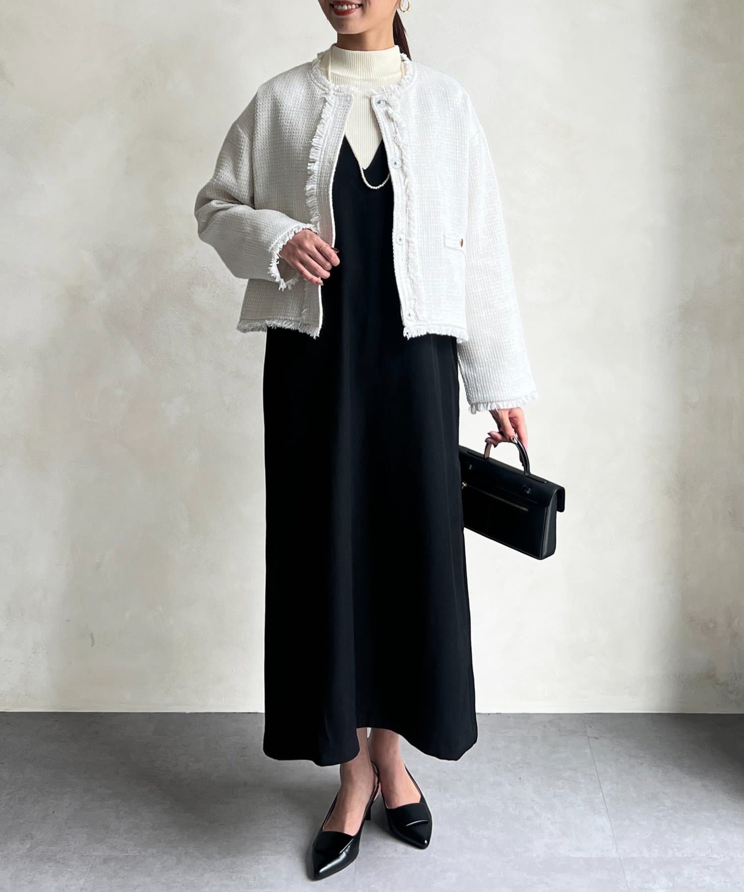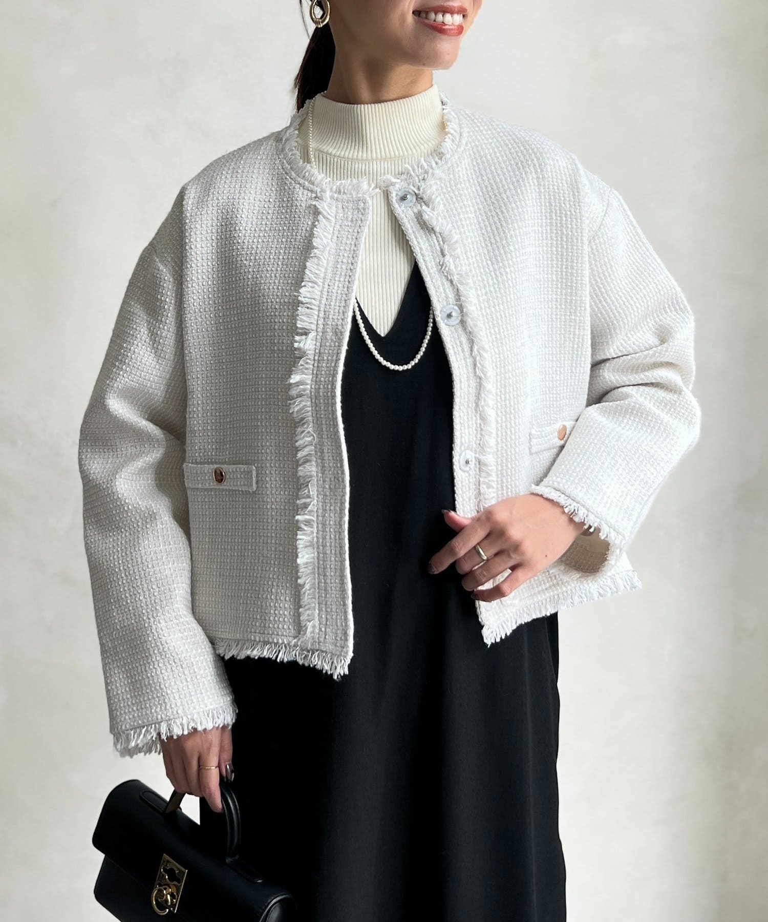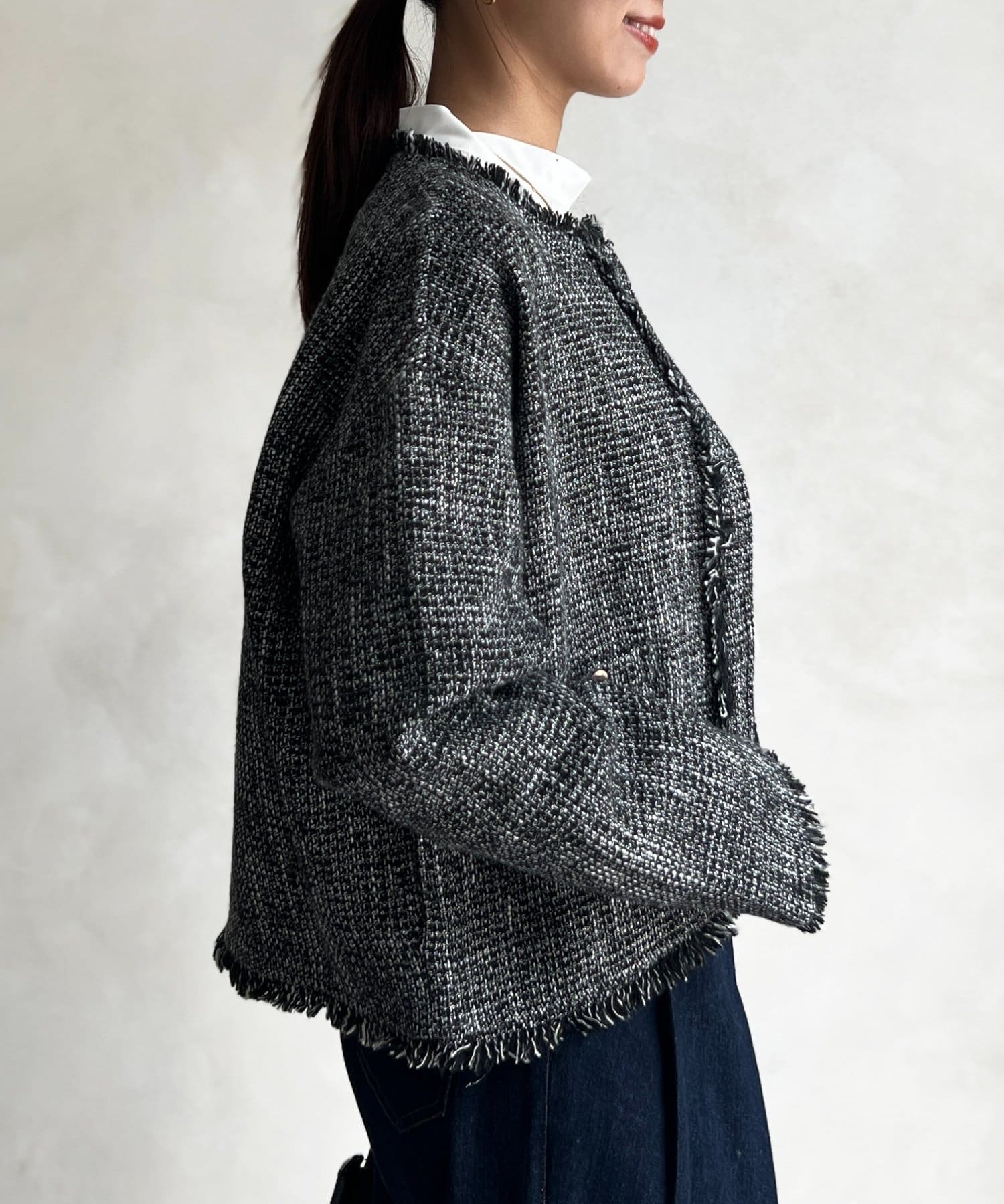 きちんと感のあるツイードジャケットは、デニムなどカジュアルなアイテムとの組み合わせで抜け感を出すのがおすすめです。