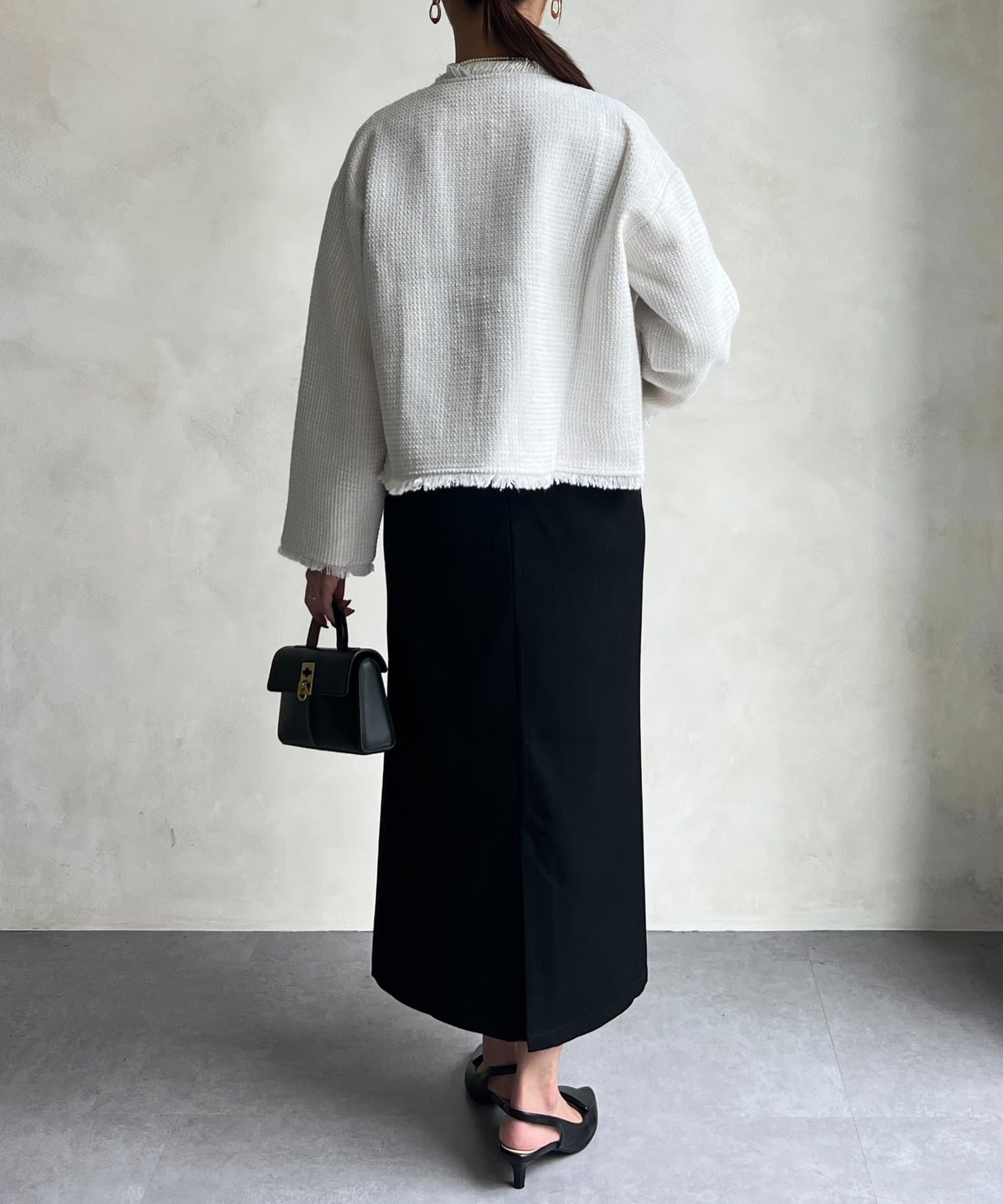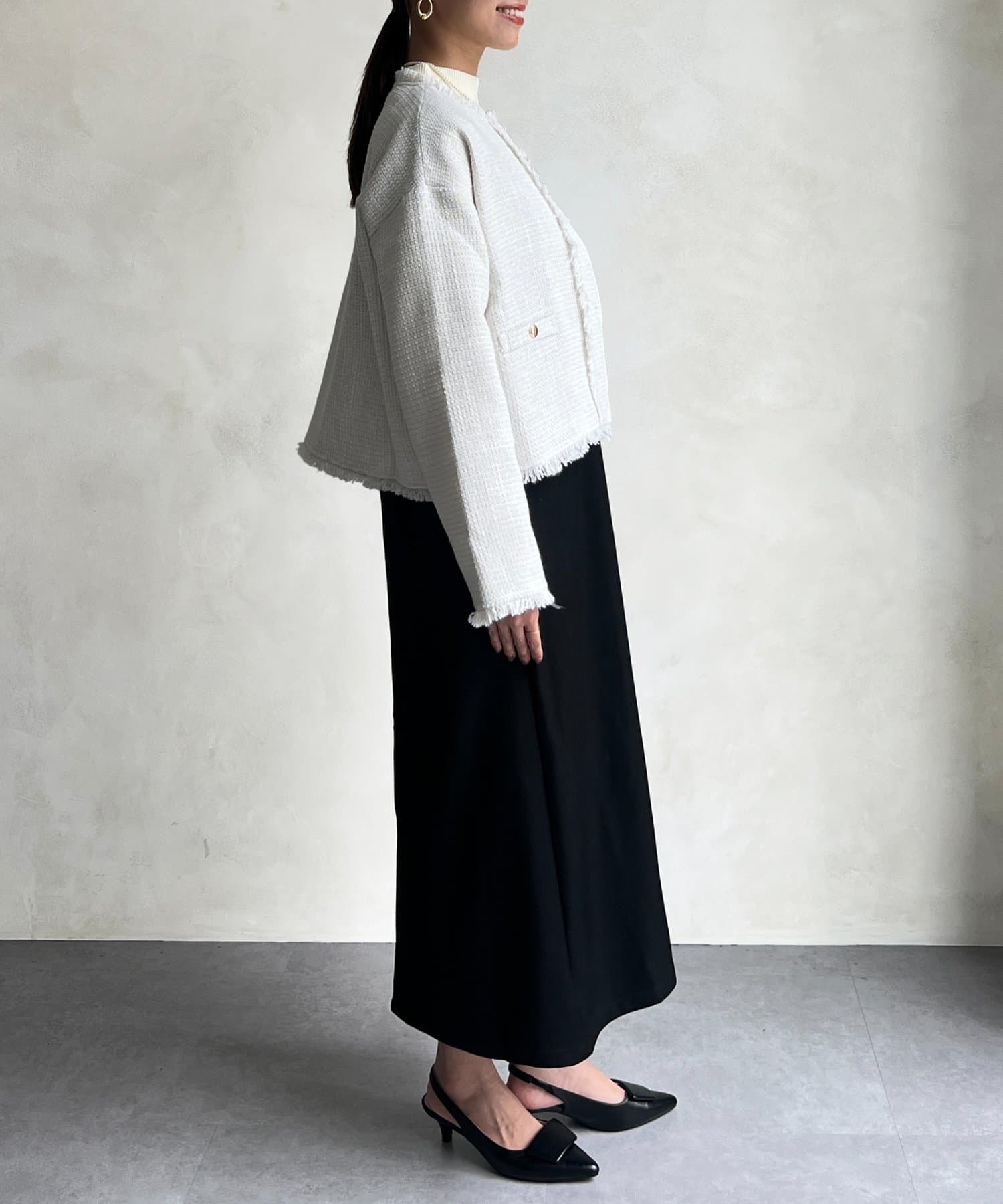程よい丈感で、ノーカラーになっているのでスッキリとした印象にしてくれます!