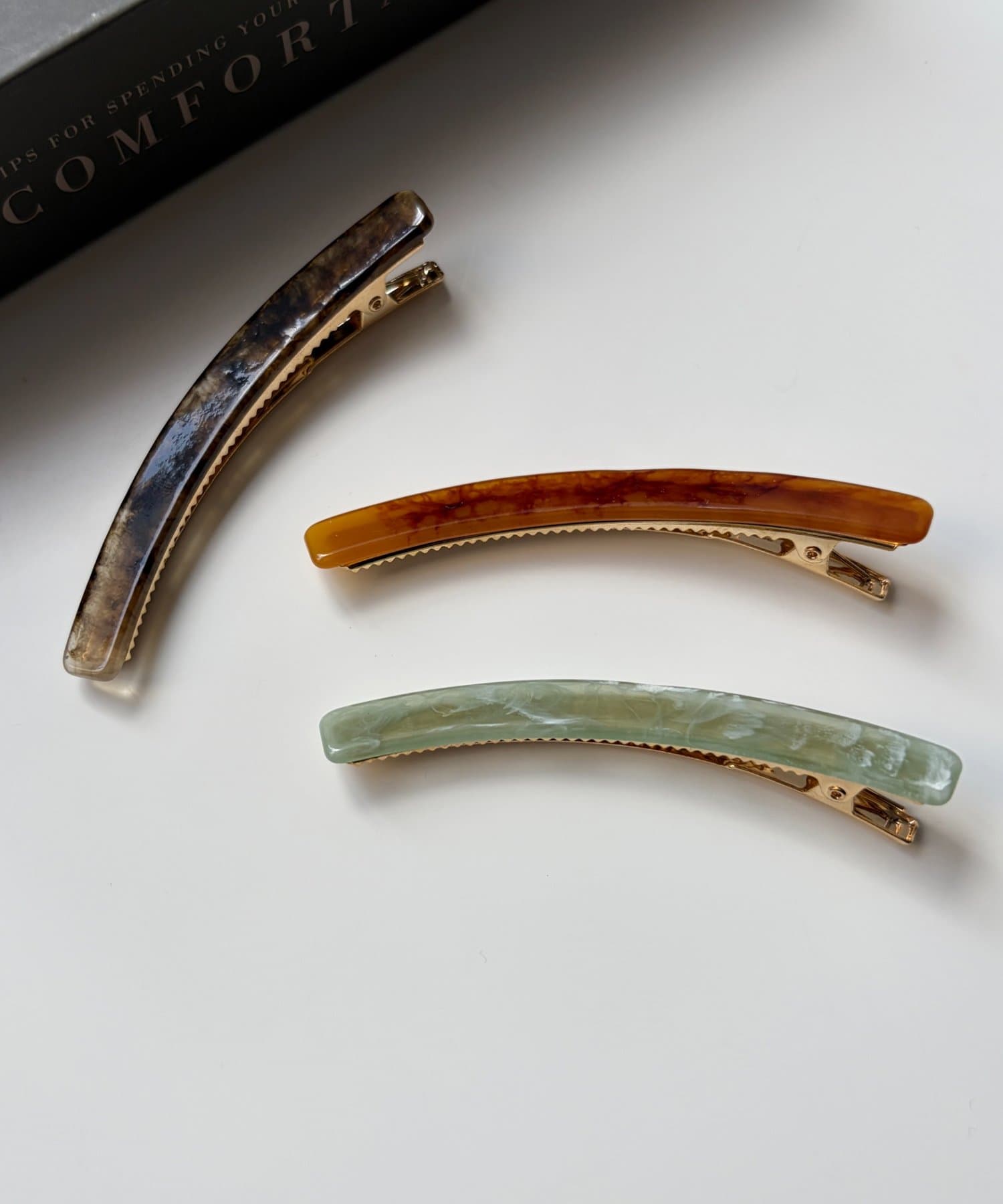 絶妙なマーブル模様が特徴的で大人上品スクエア型のヘアクリップです。