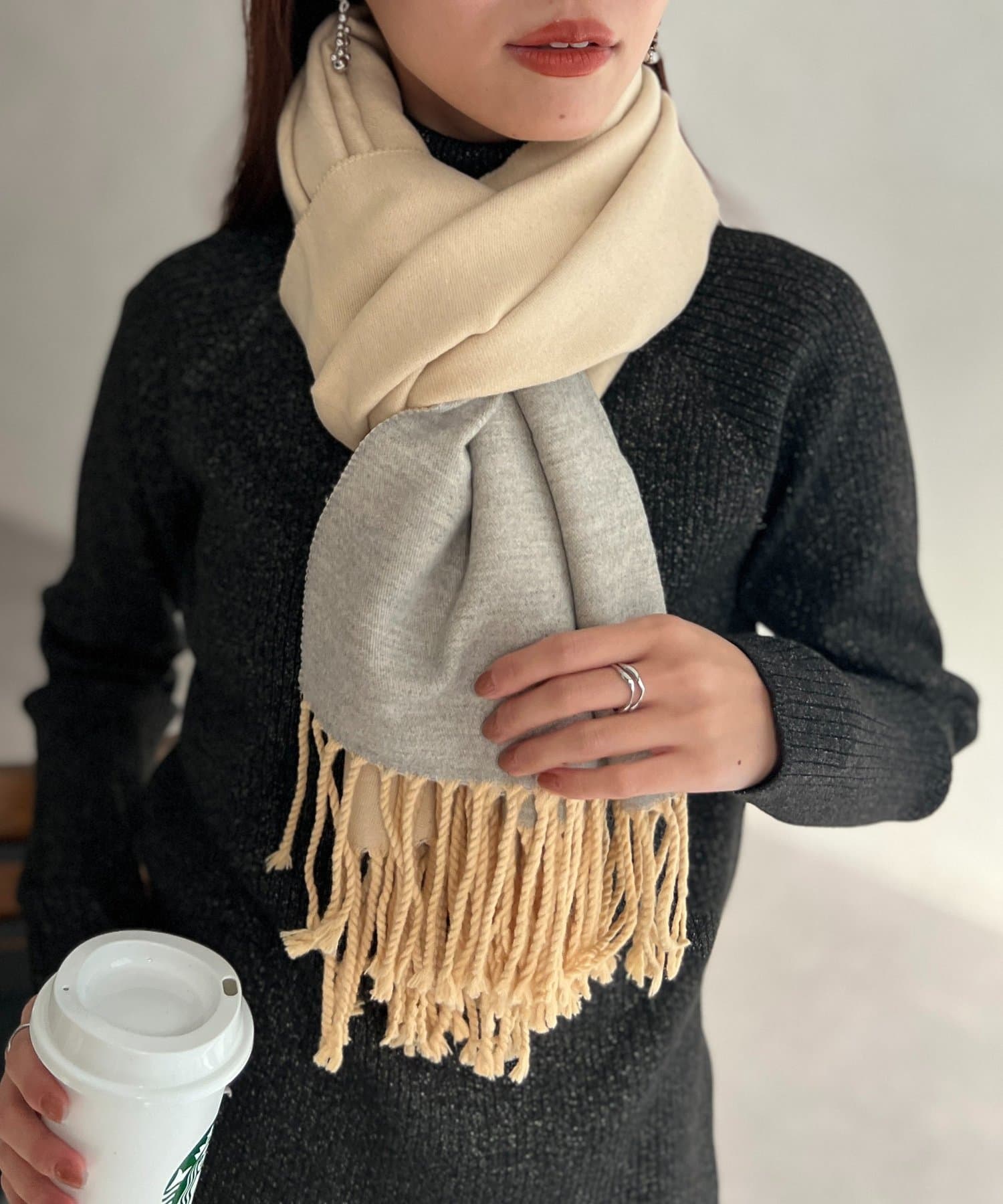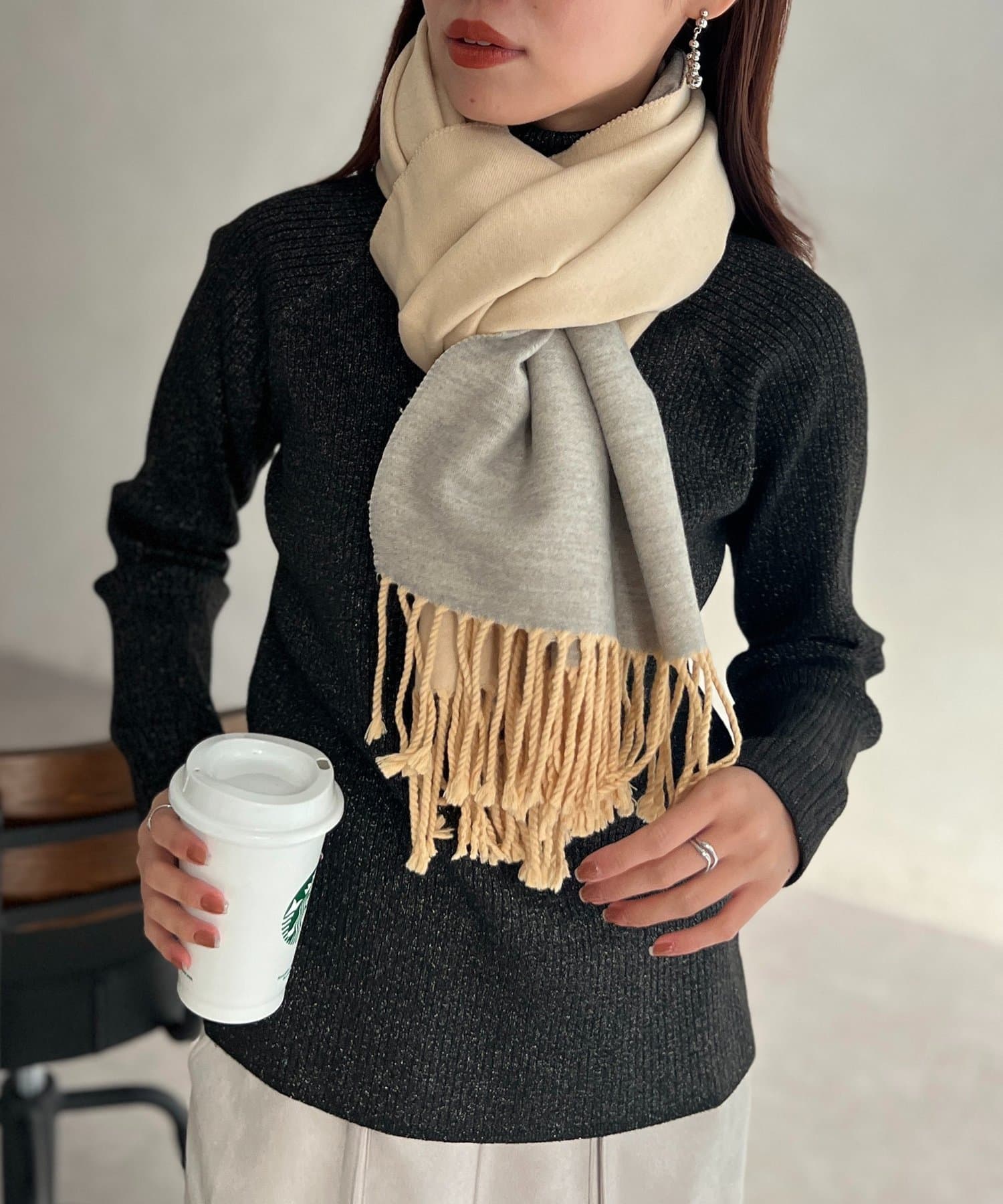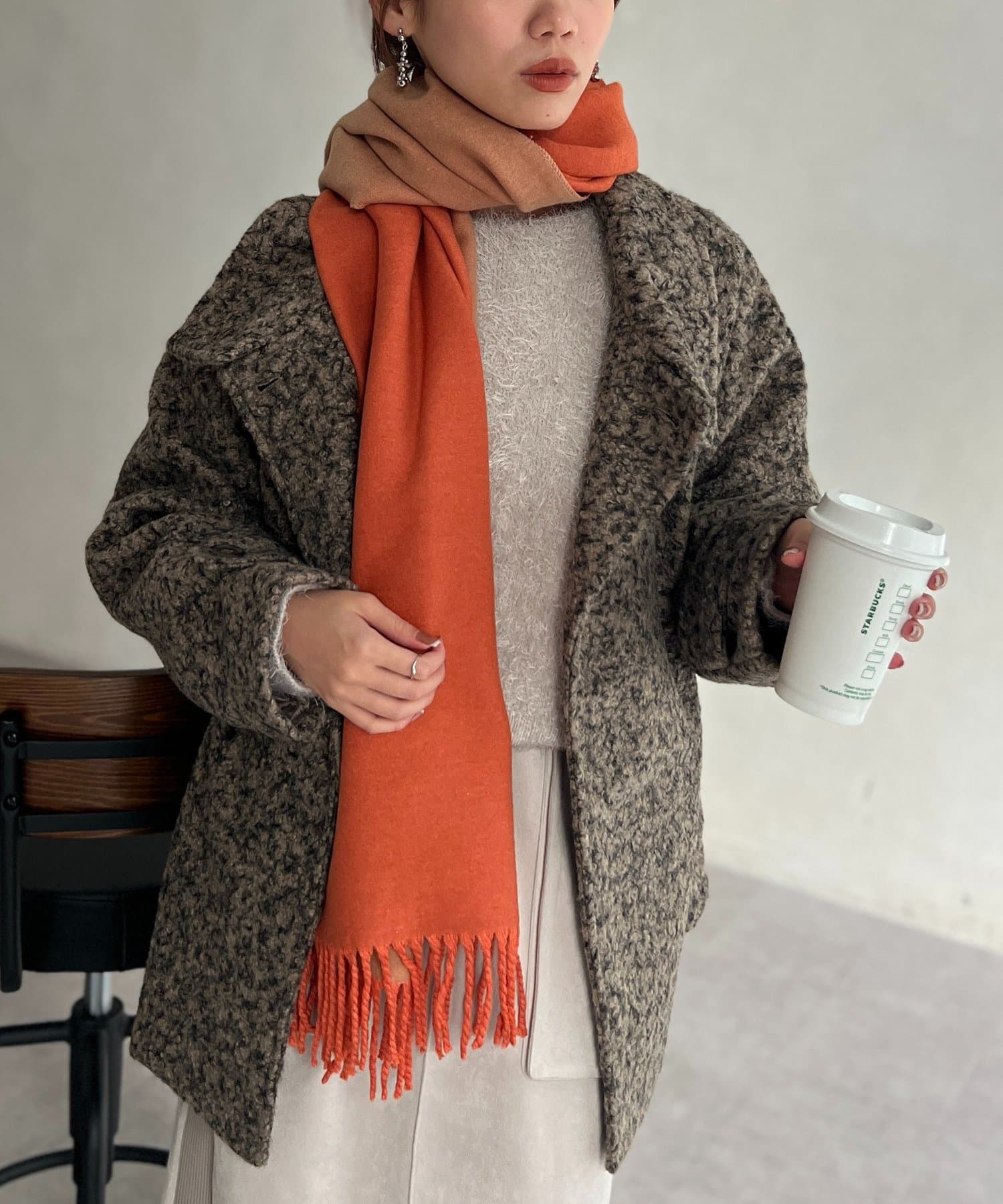 大判なので肩掛けやひざ掛けもお使いいただける万能アイテム♪厚すぎないのでロングシーズン活躍!
