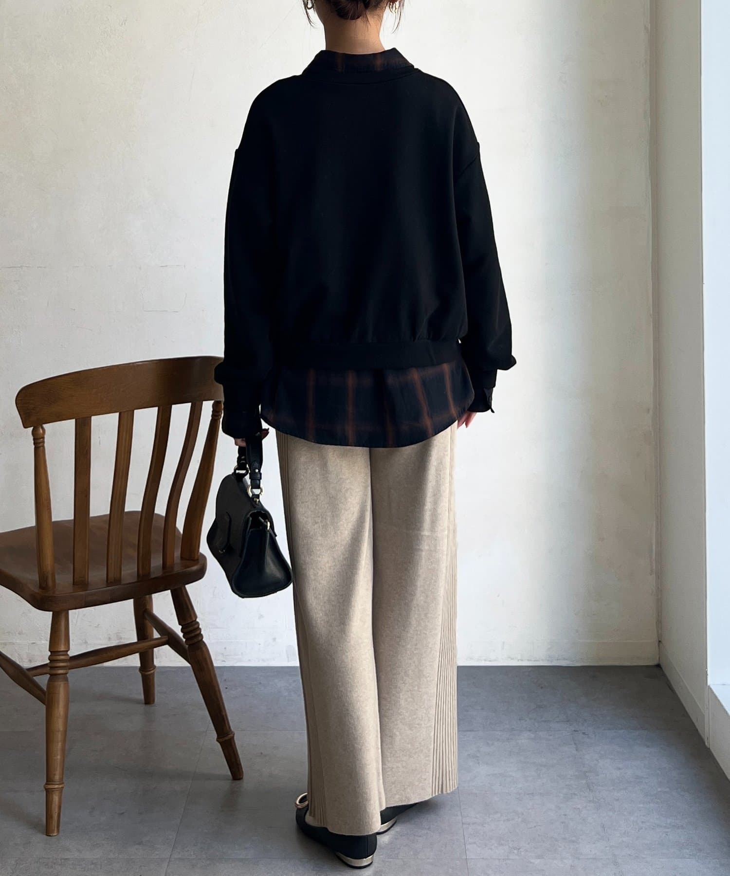 大人の女性らしいすっきりとしたシルエットと、サイドのリブデザインがカジュアルになりすぎずきちんと感も出していただけます!