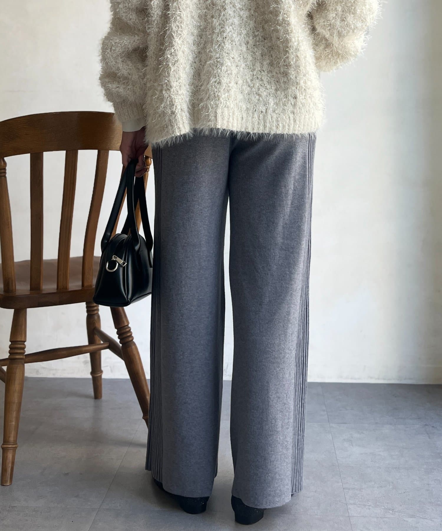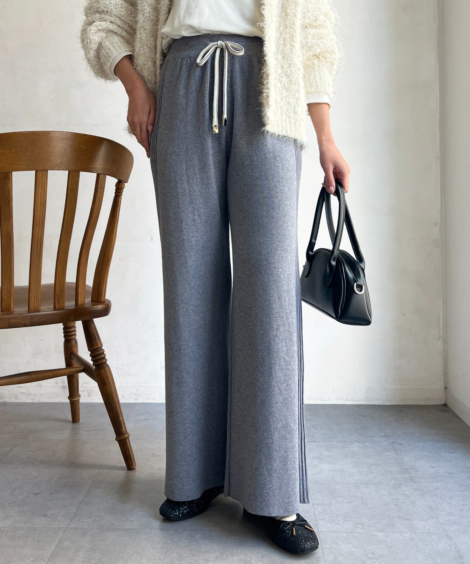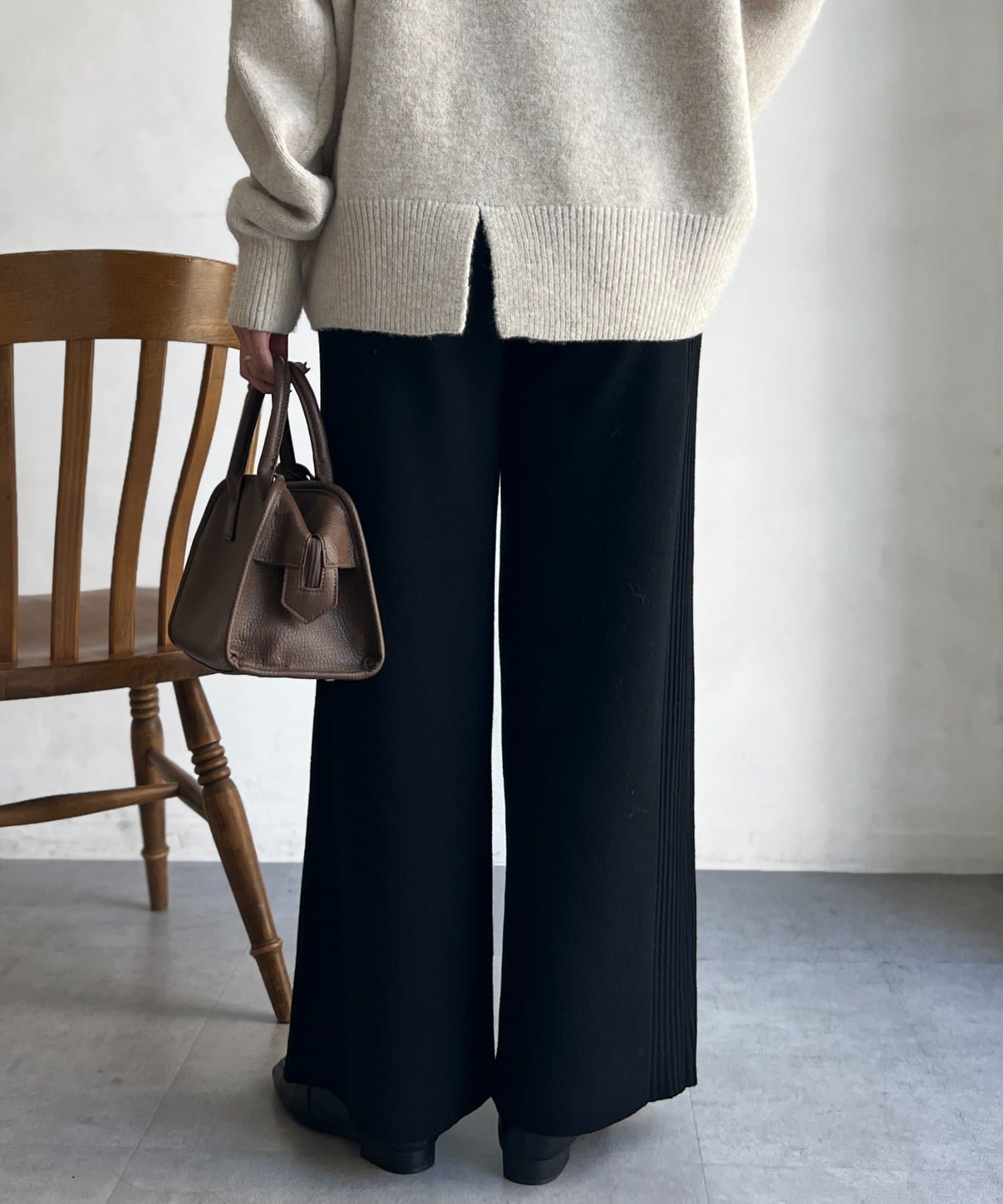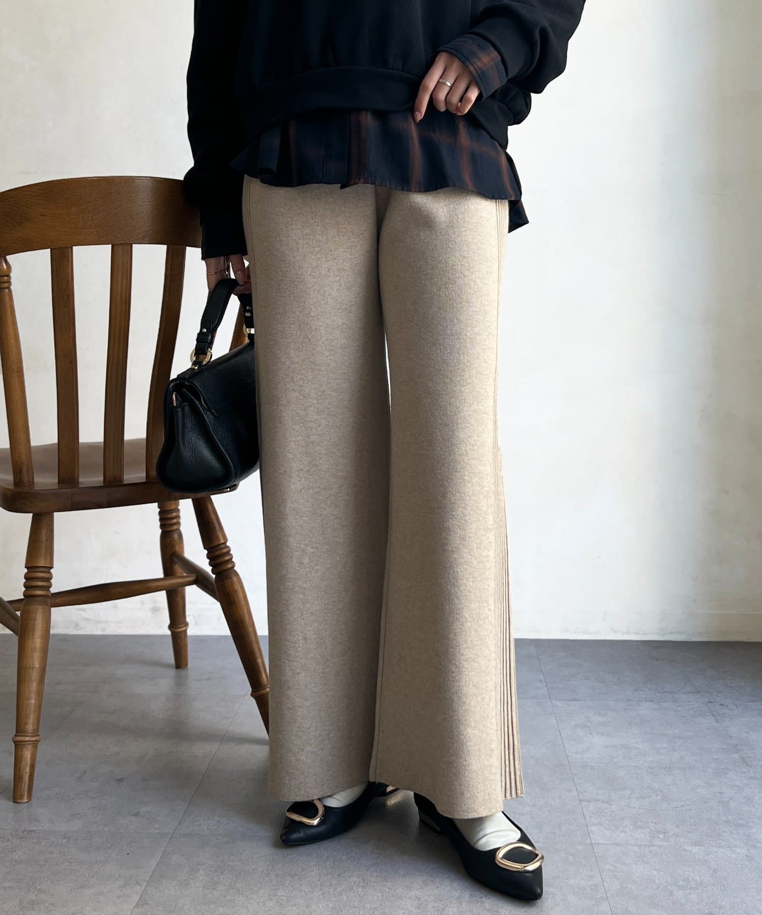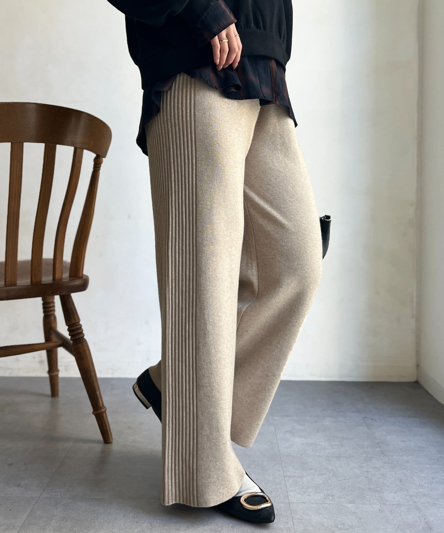 • Chez toi(シェトワ) サイドリブセミフレアニットパンツ