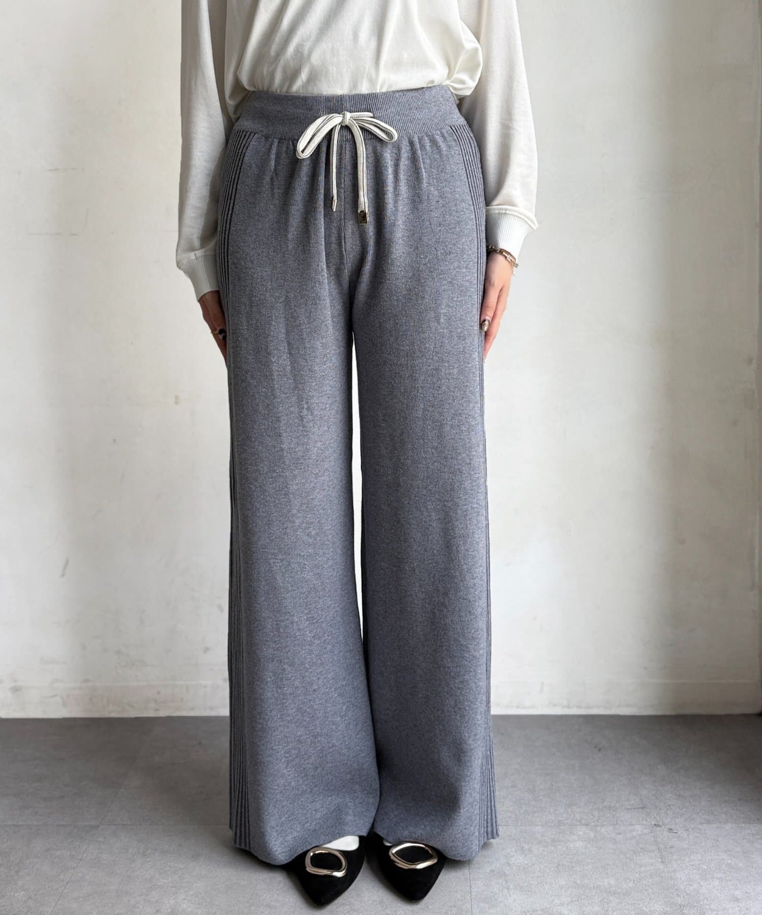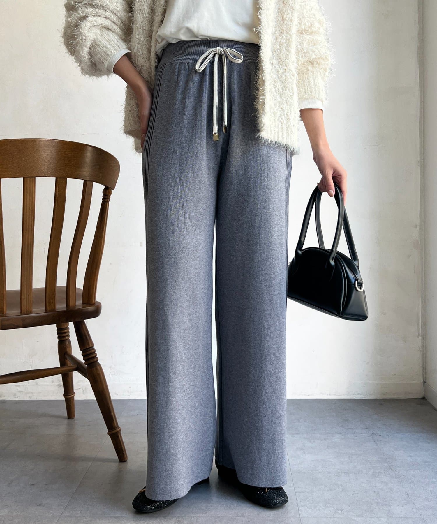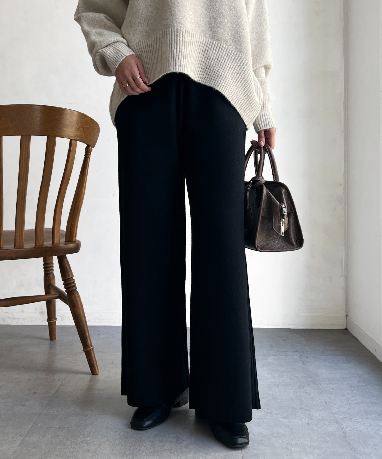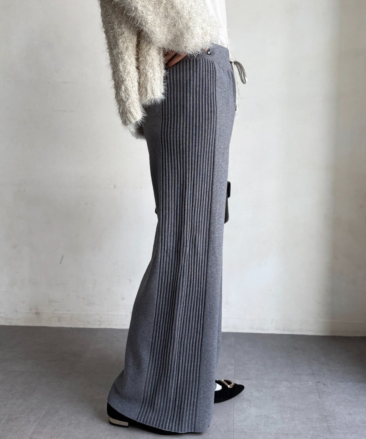 • Chez toi(シェトワ) サイドリブセミフレアニットパンツ