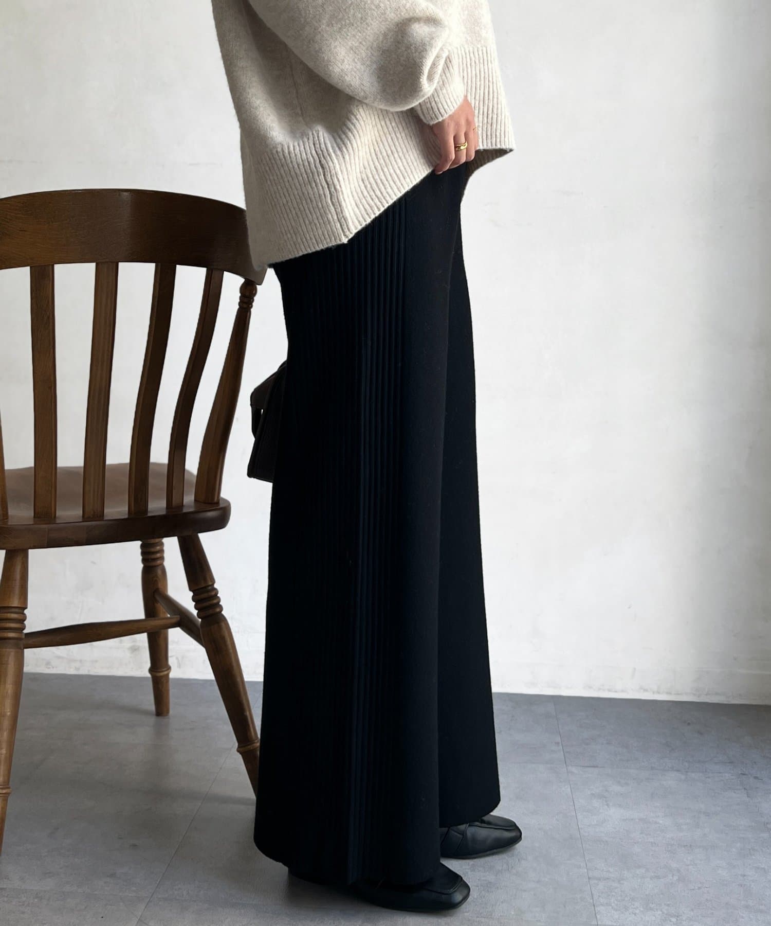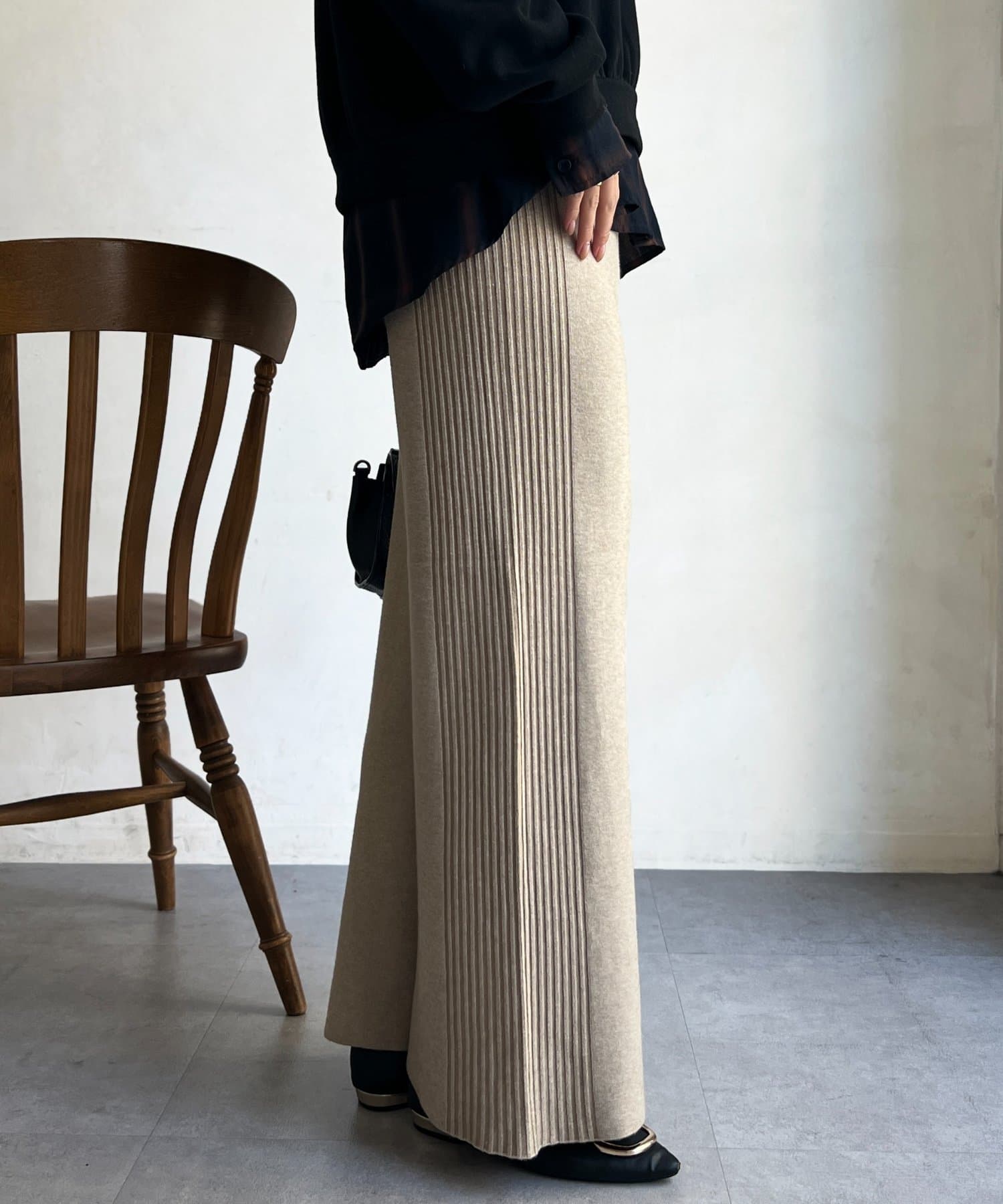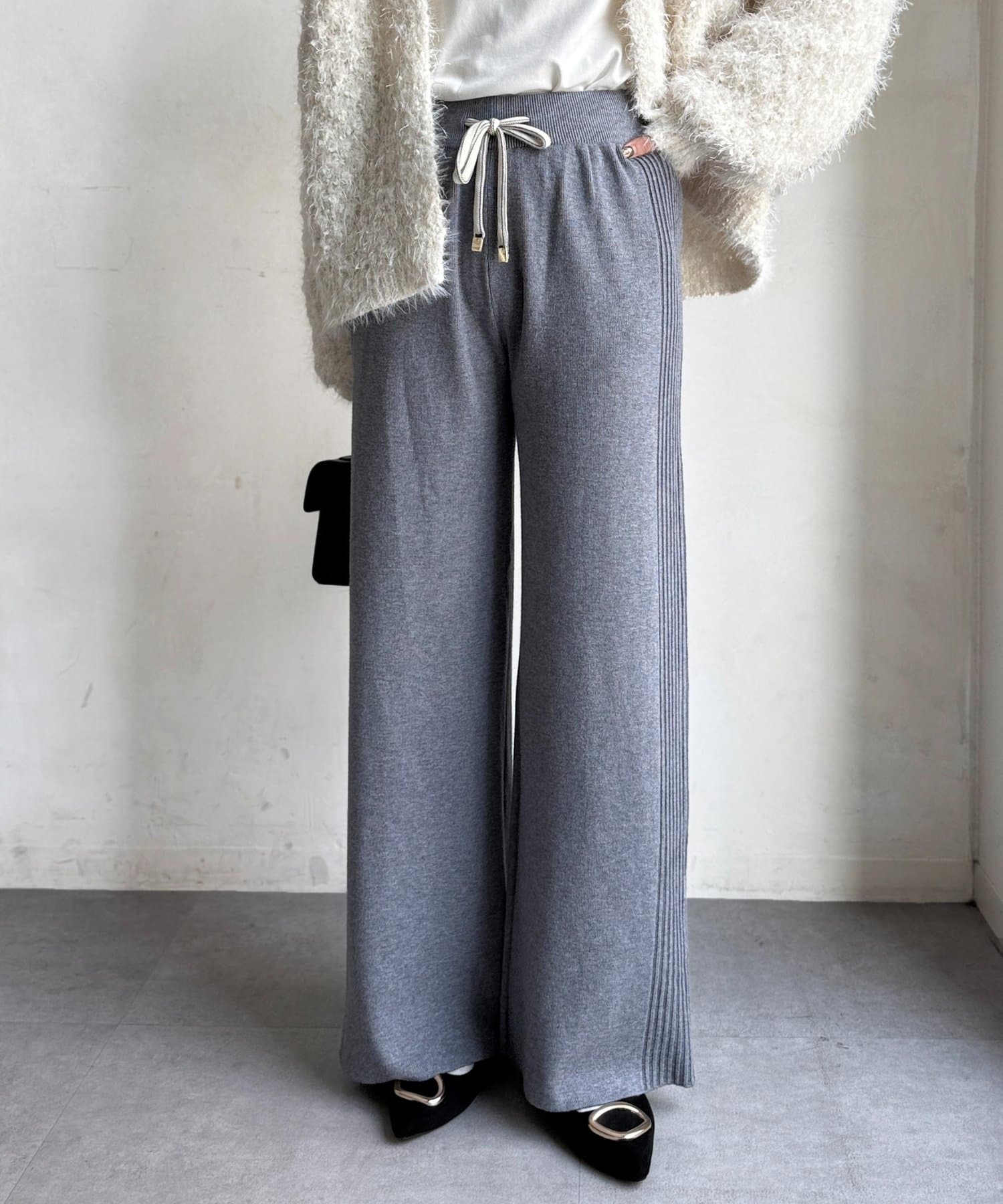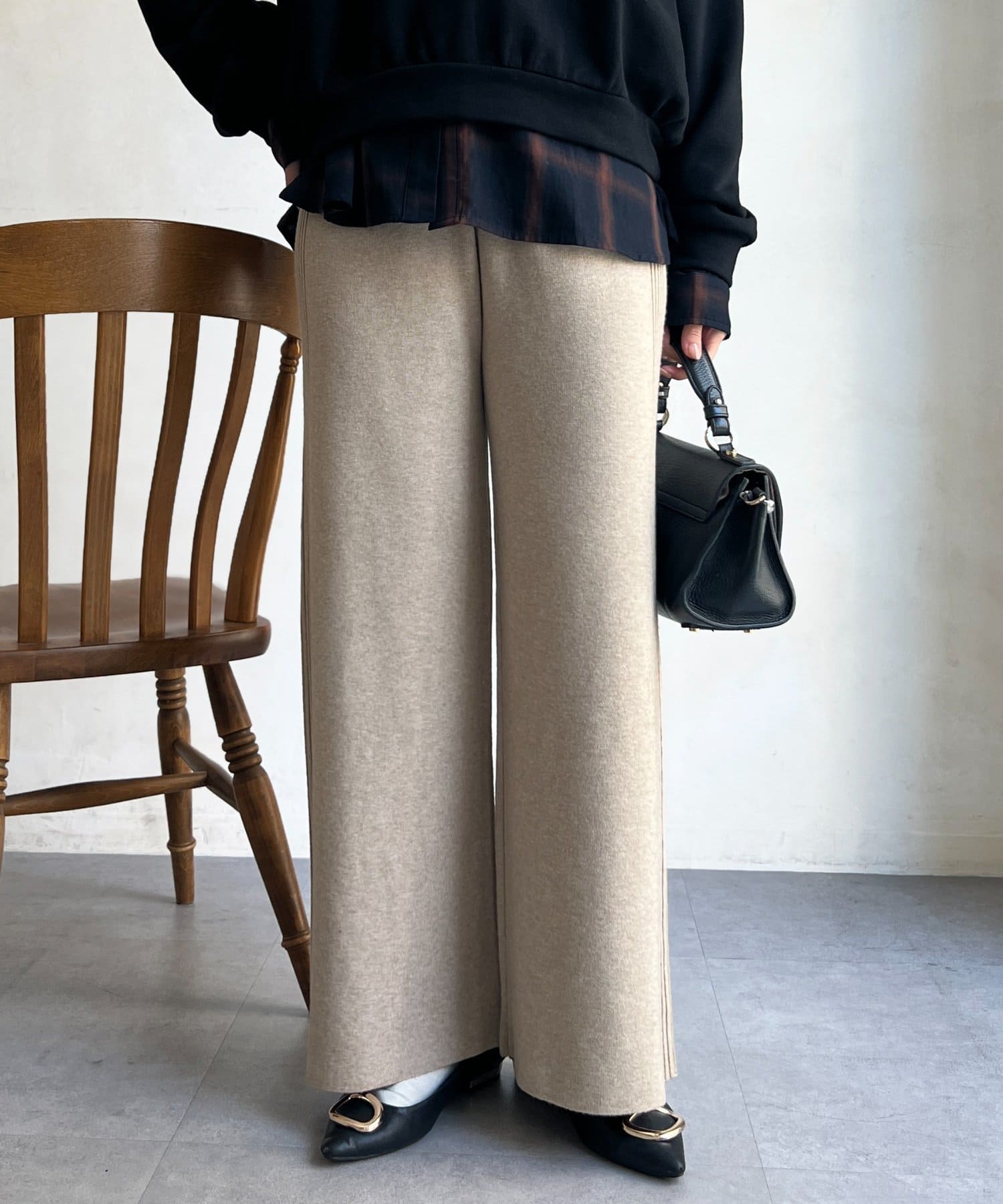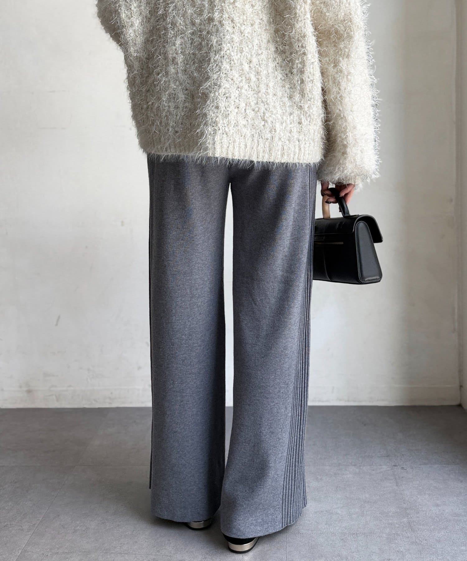 • Chez toi(シェトワ) サイドリブセミフレアニットパンツ