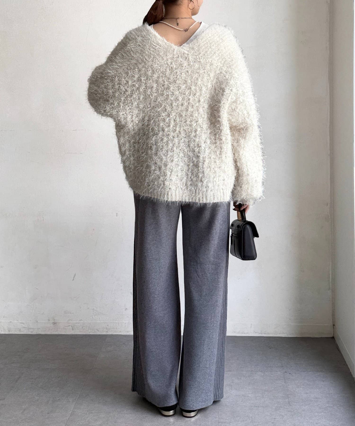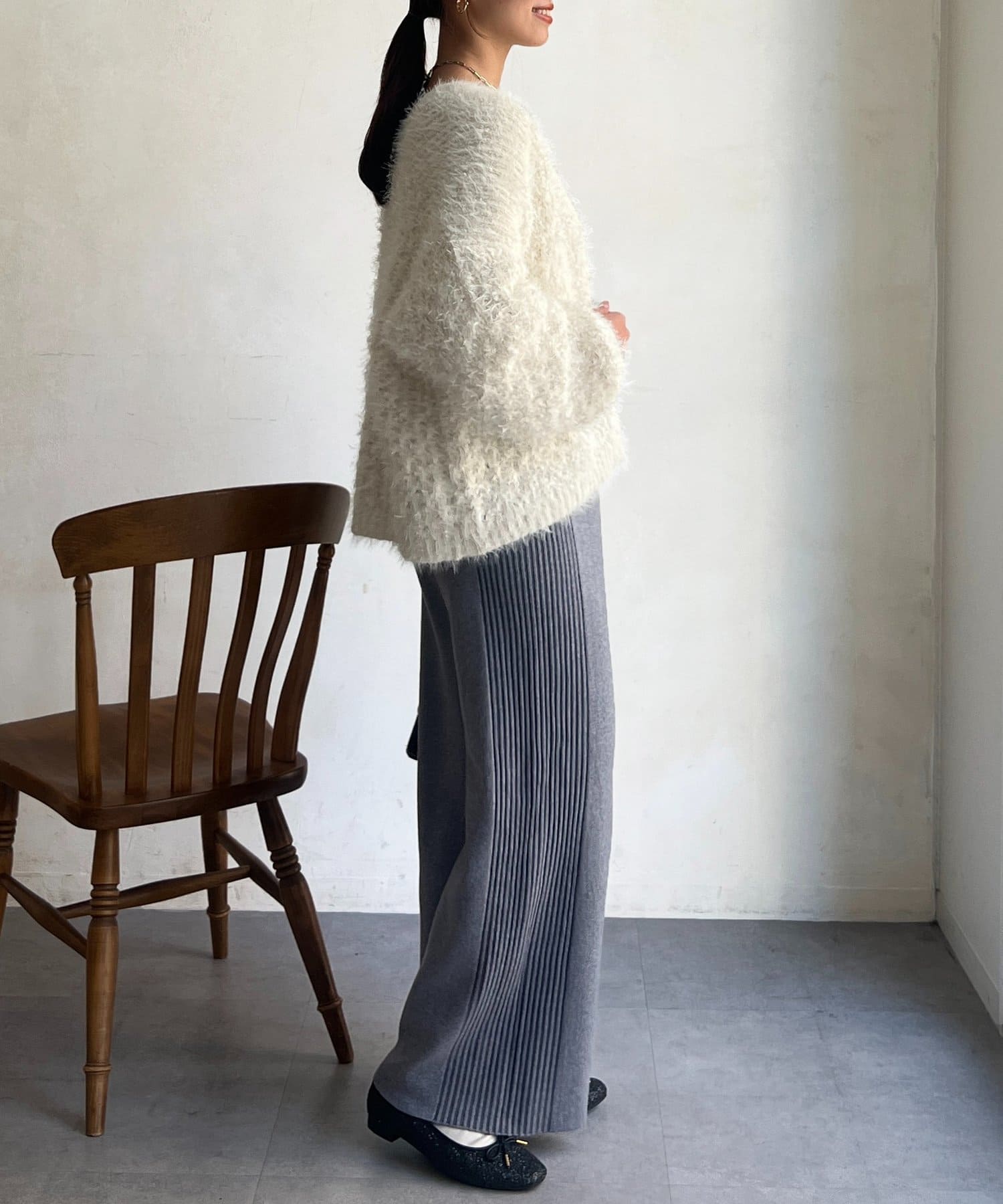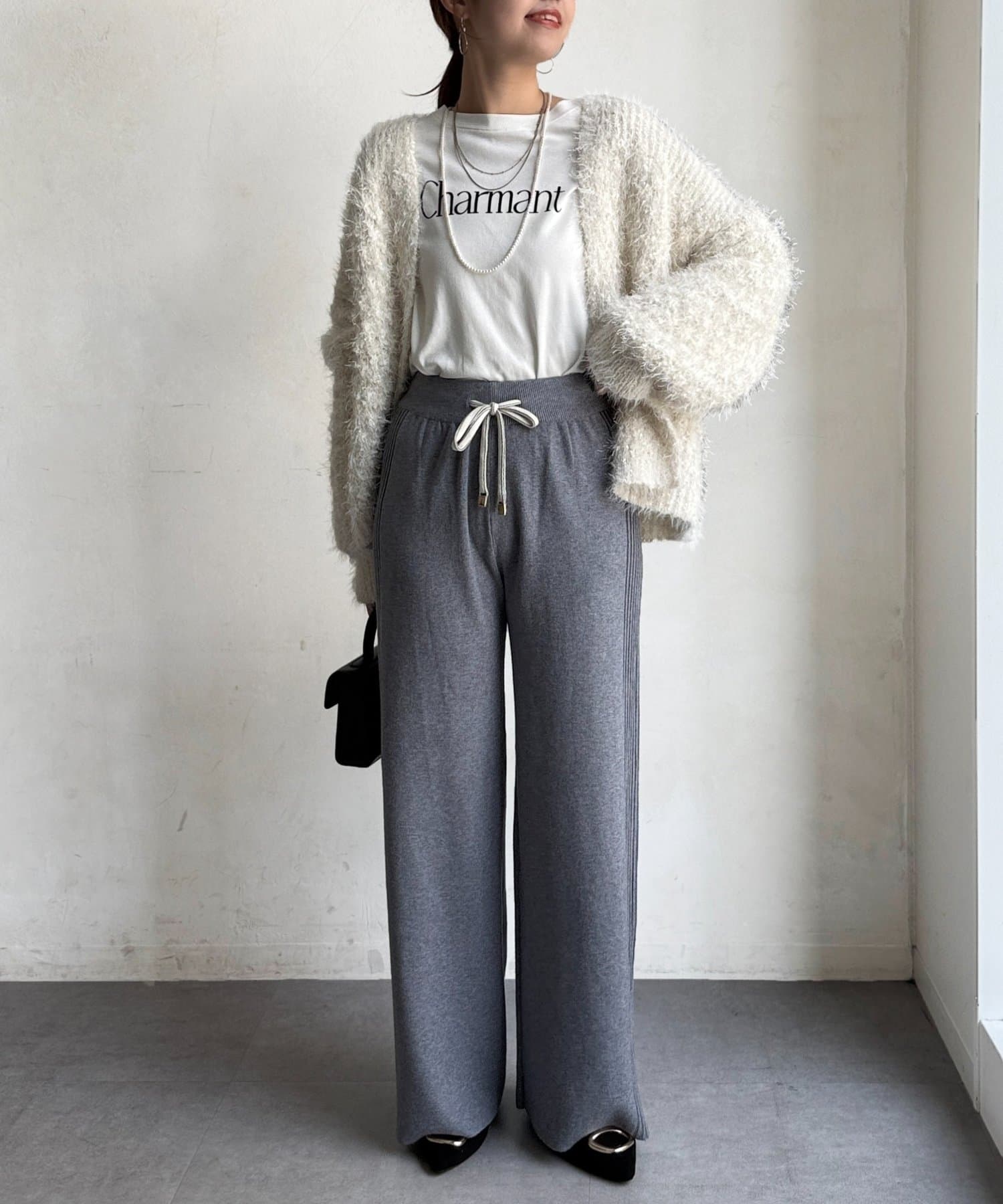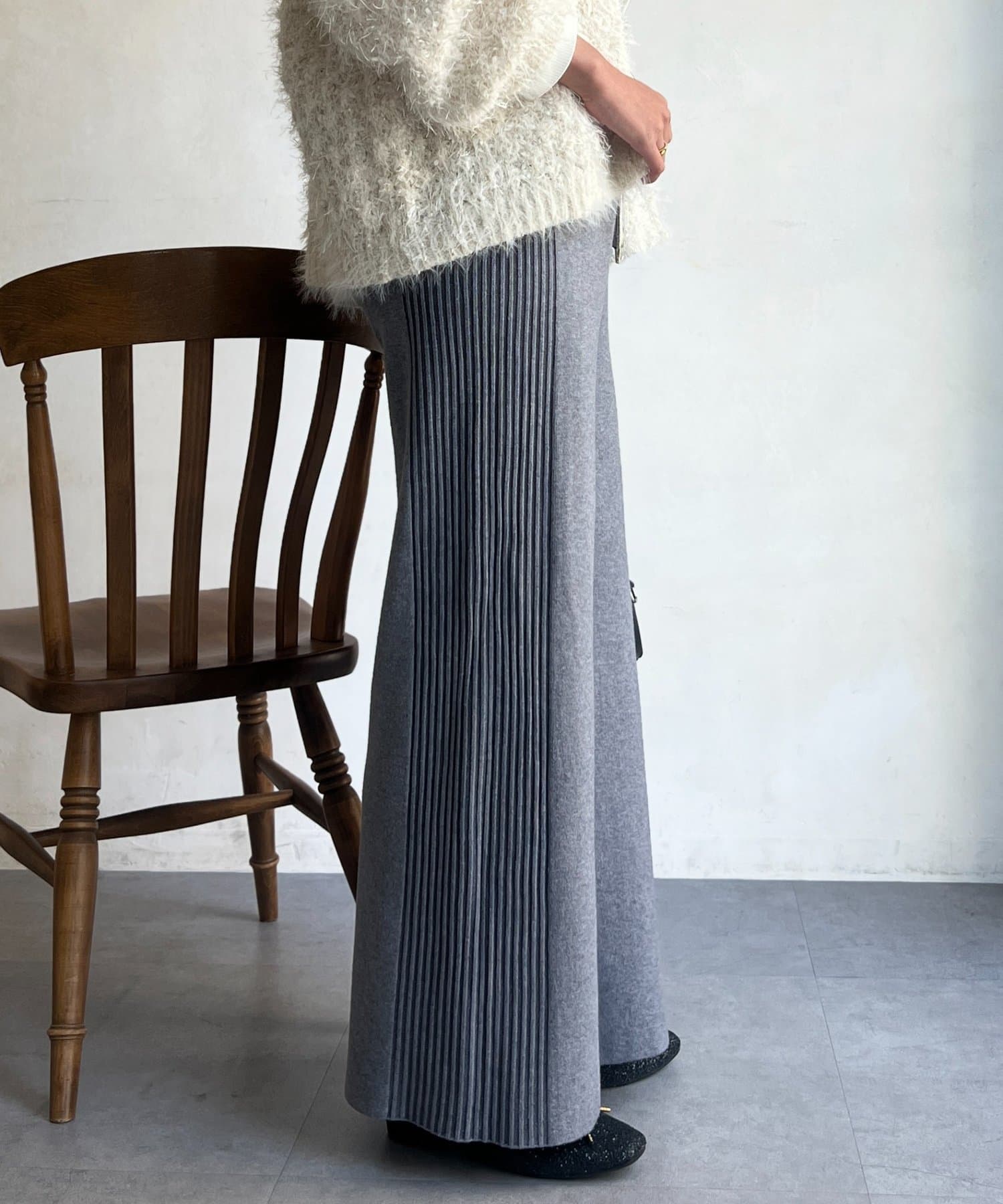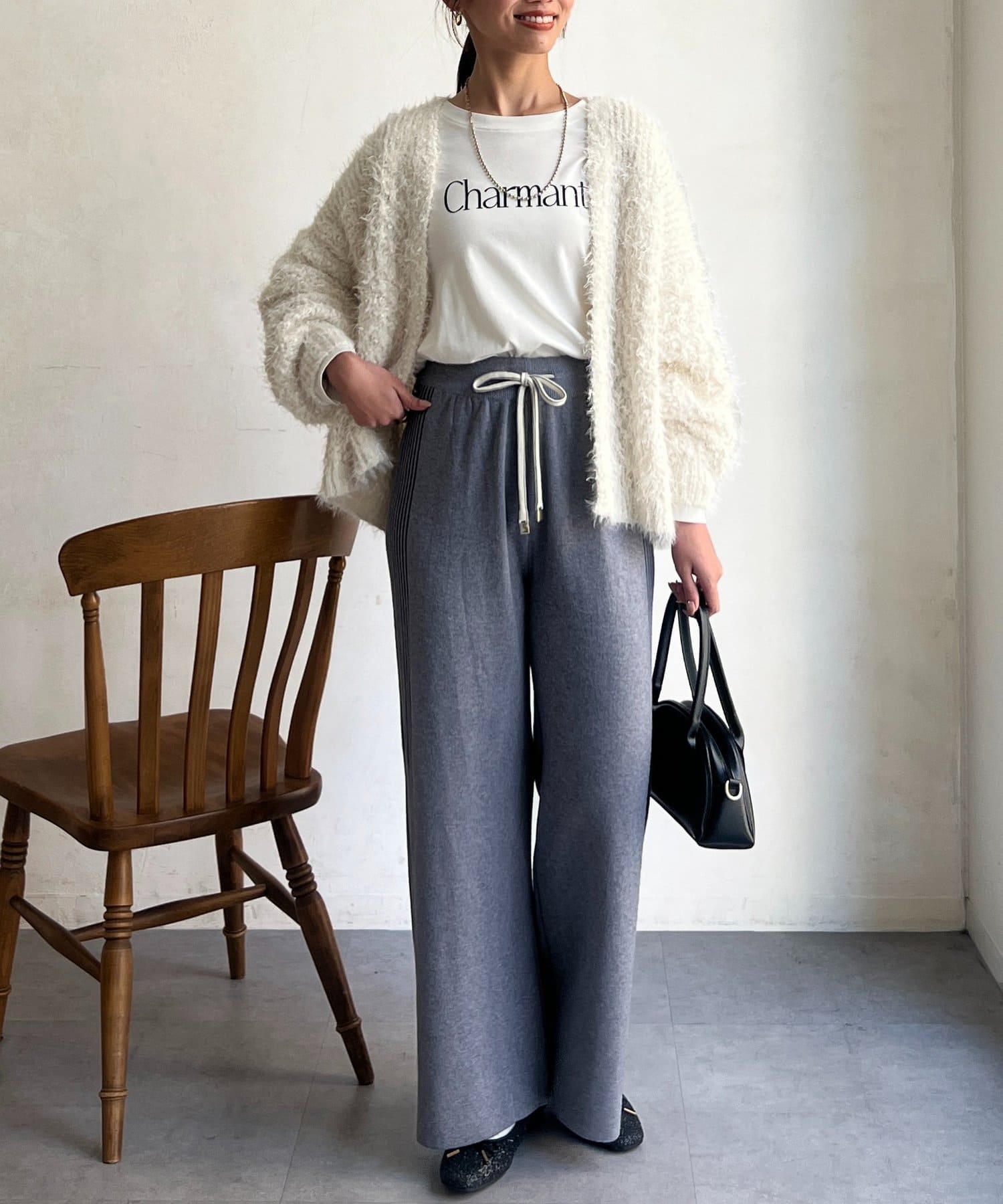 • Chez toi(シェトワ) サイドリブセミフレアニットパンツ
