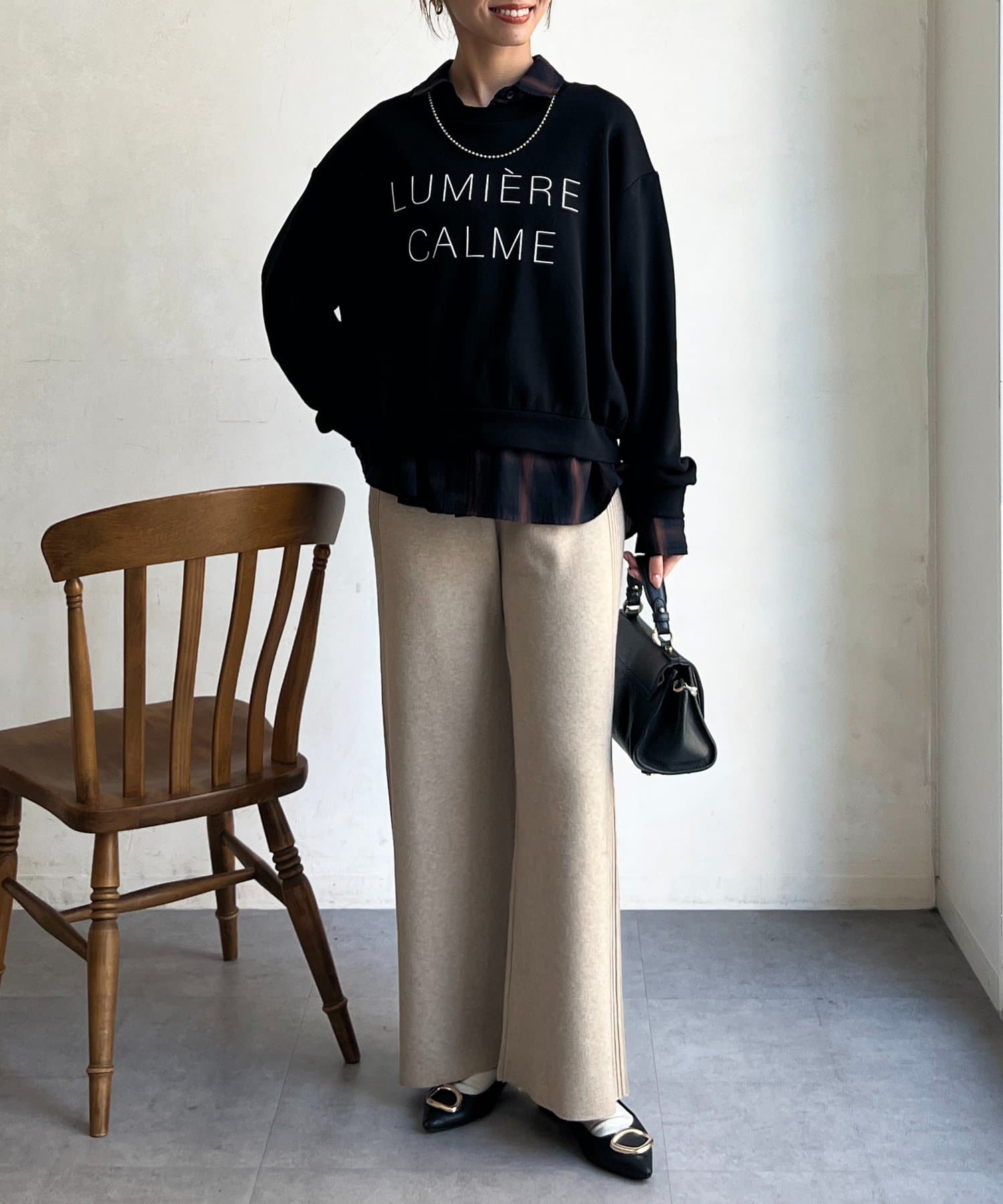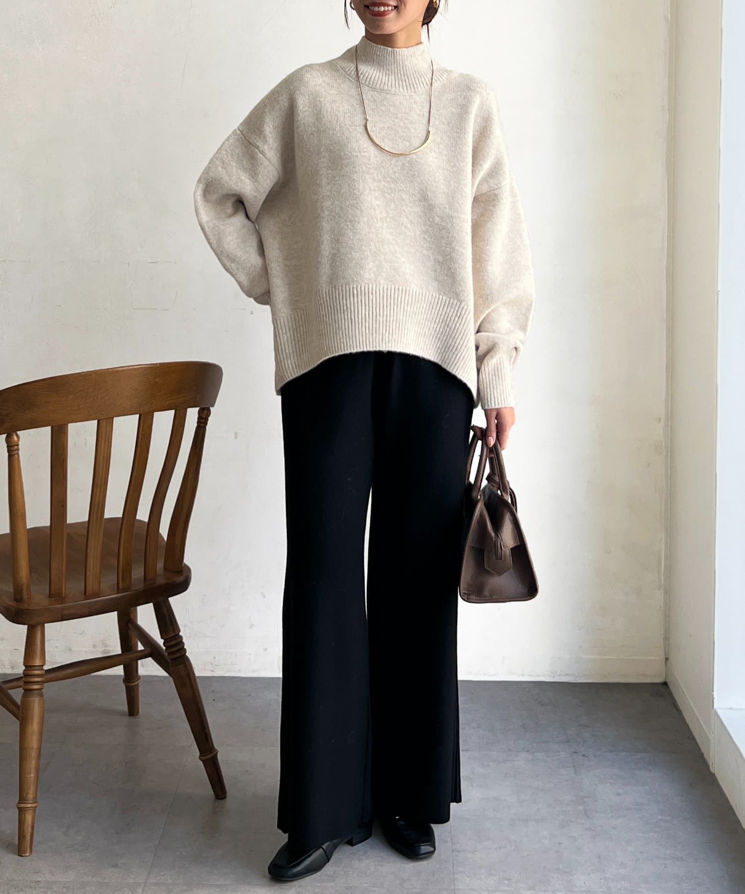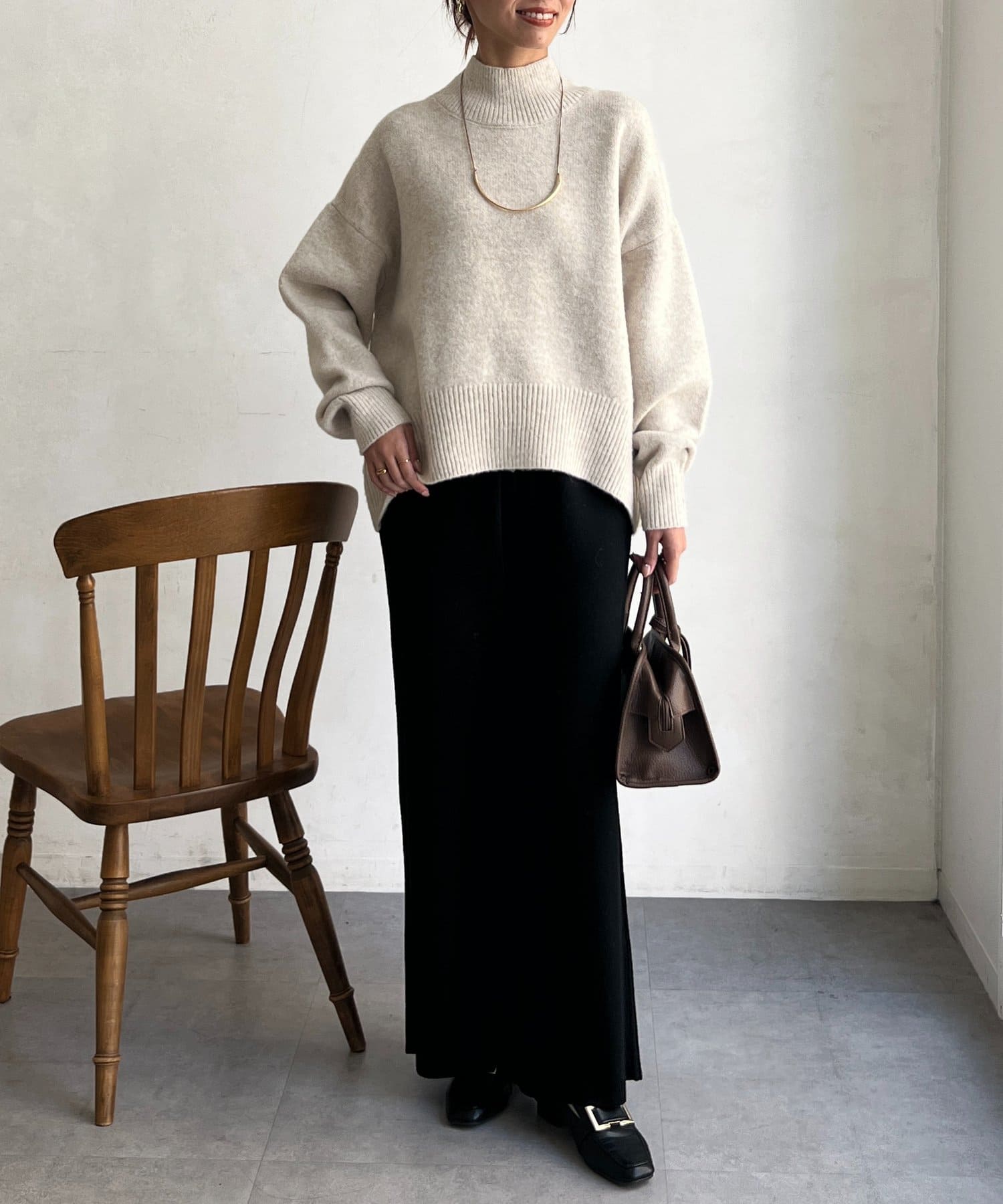 やや厚手の編地を使用した身体のラインを拾いにくいデザインなので、ルーズになり過ぎないのが嬉しいポイント♪