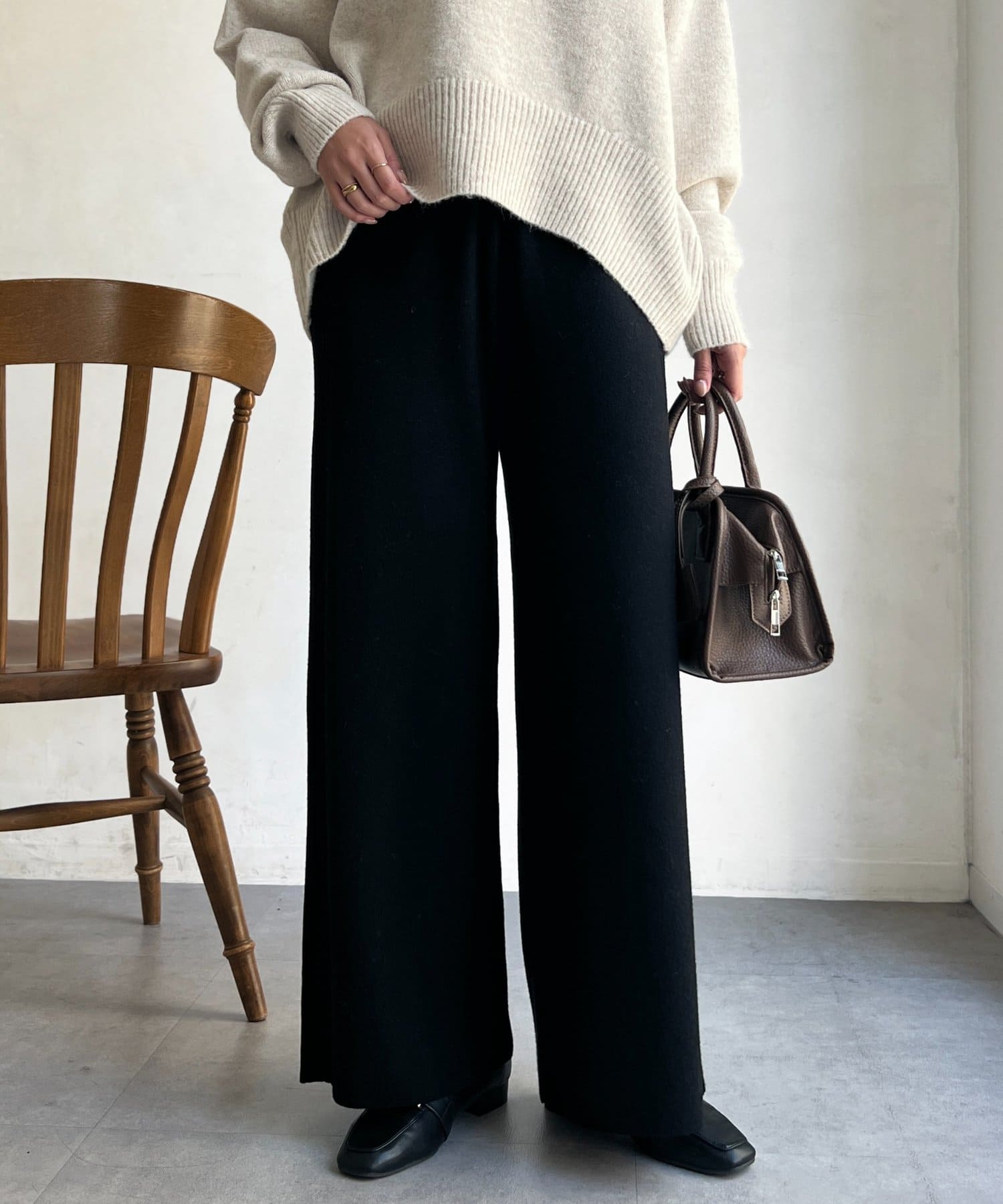 すっきりとしたシルエットがきれいなラインを演出する、ストレスフリーなニットパンツ。