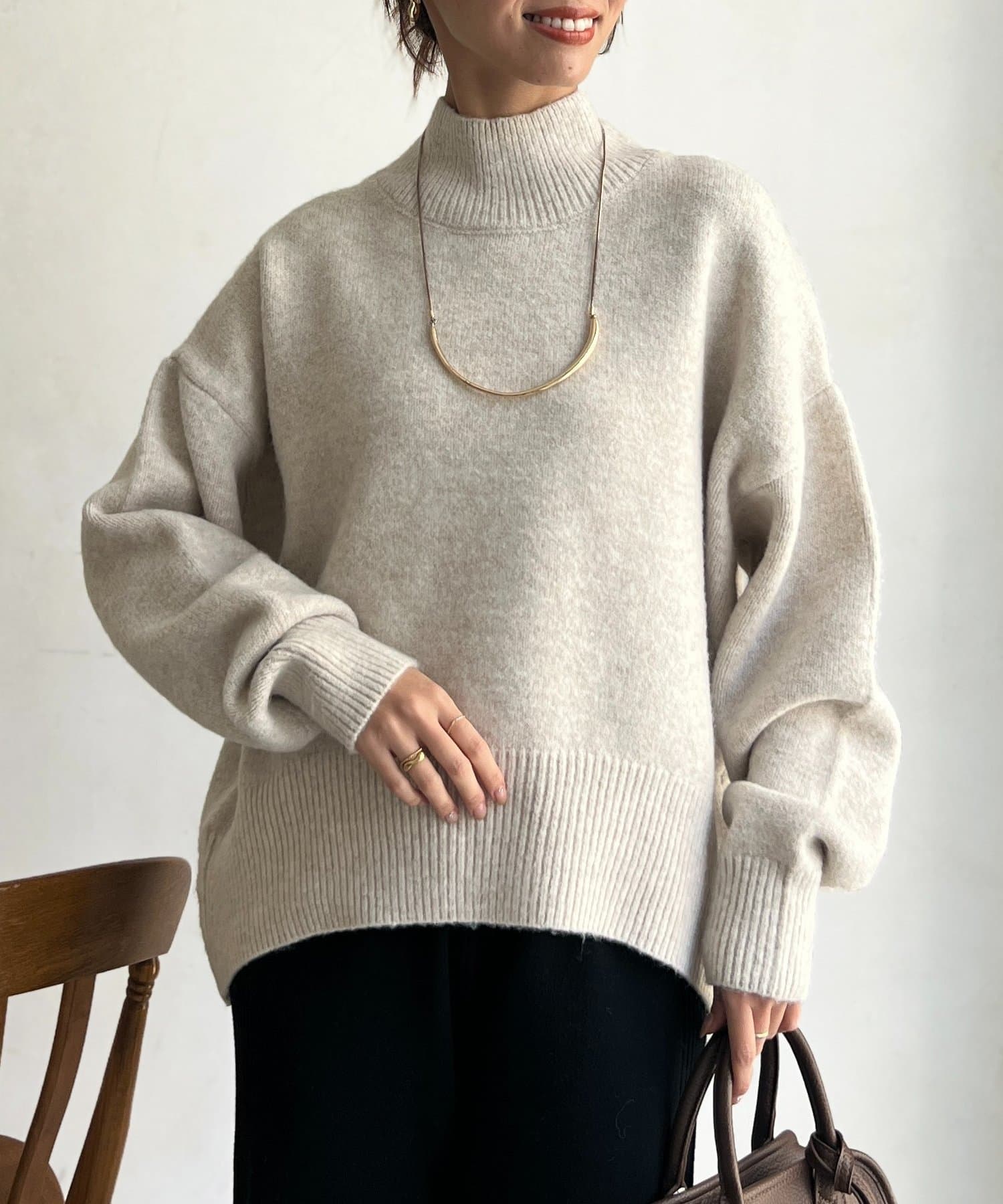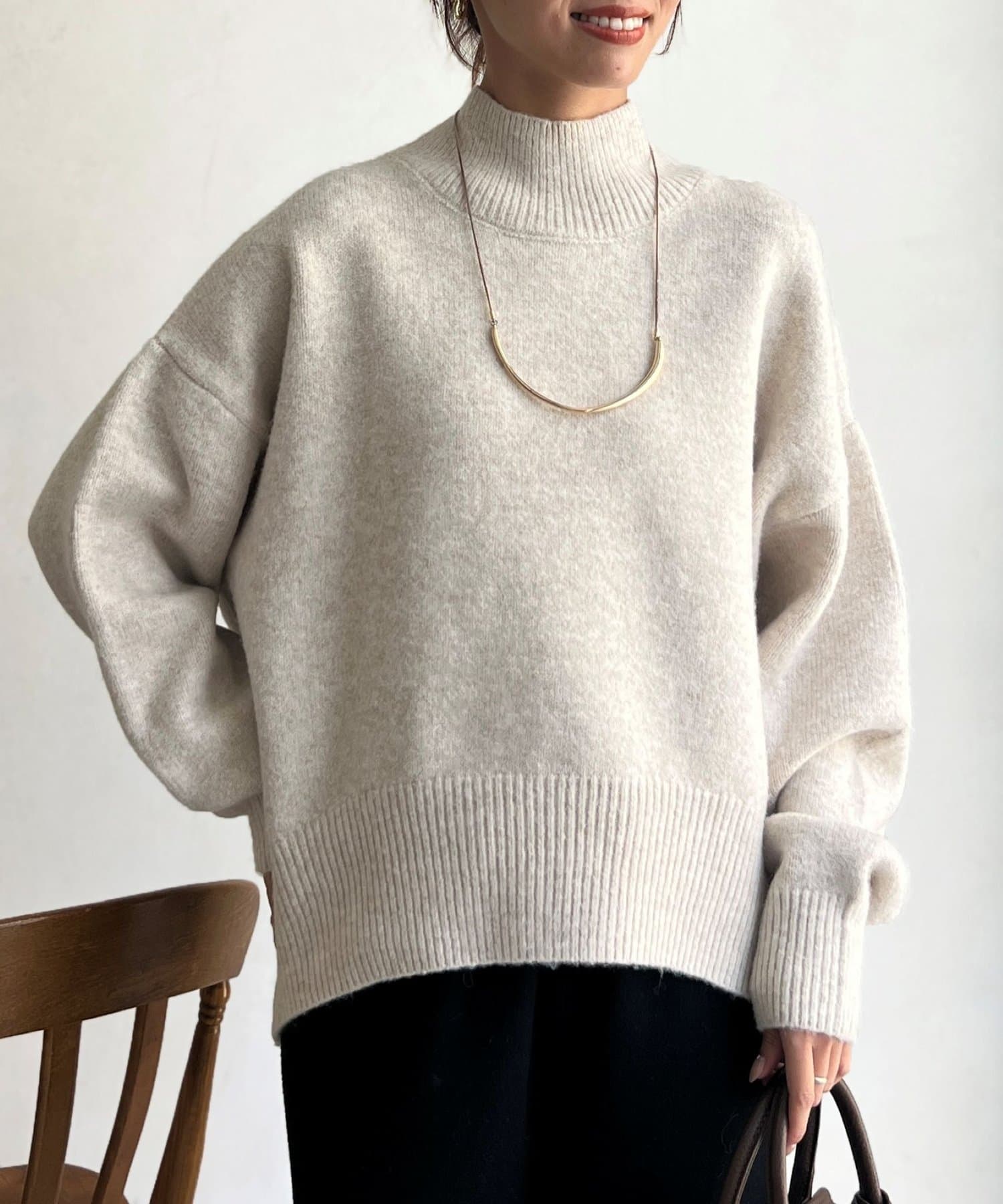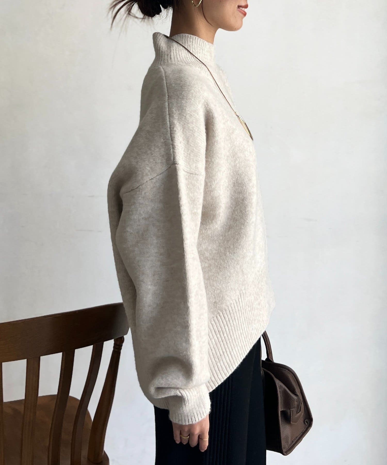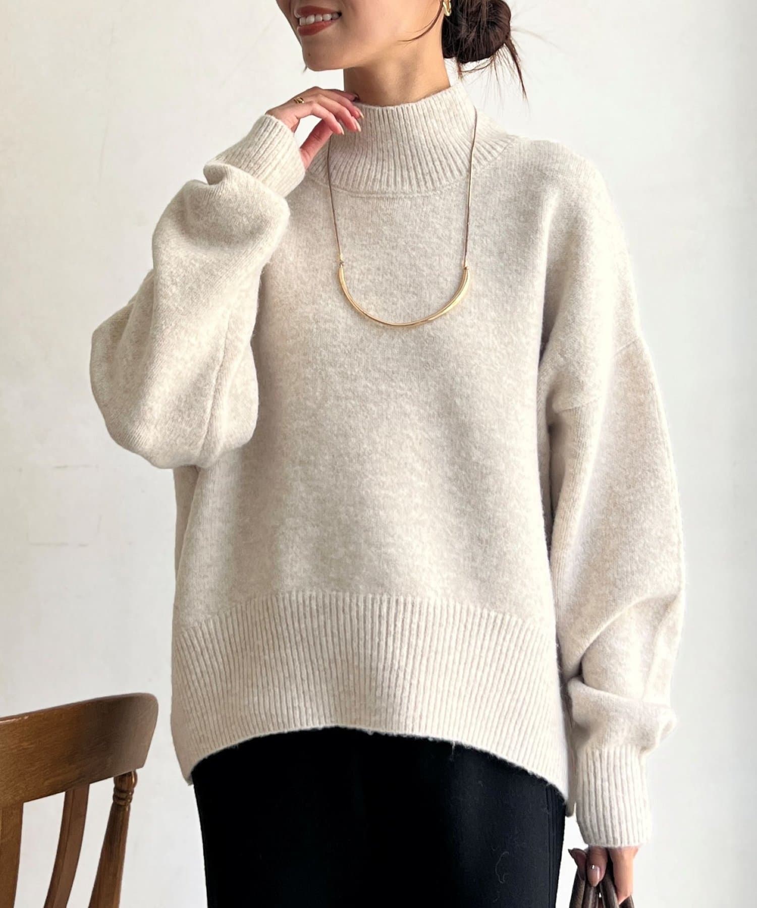 程よいゆるさにこだわった緩やかなハイネックはお顔周りもすっきりとした印象に♪