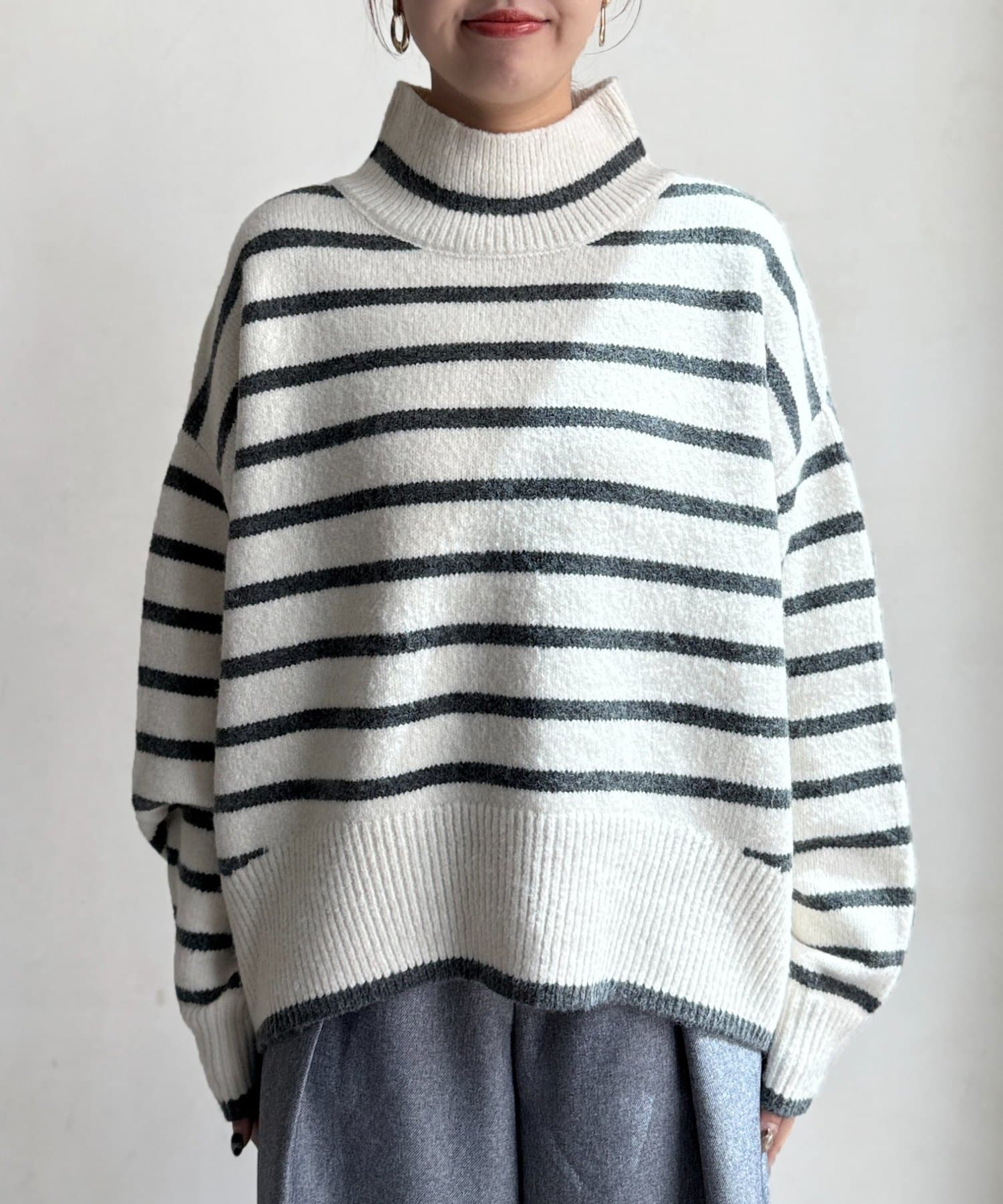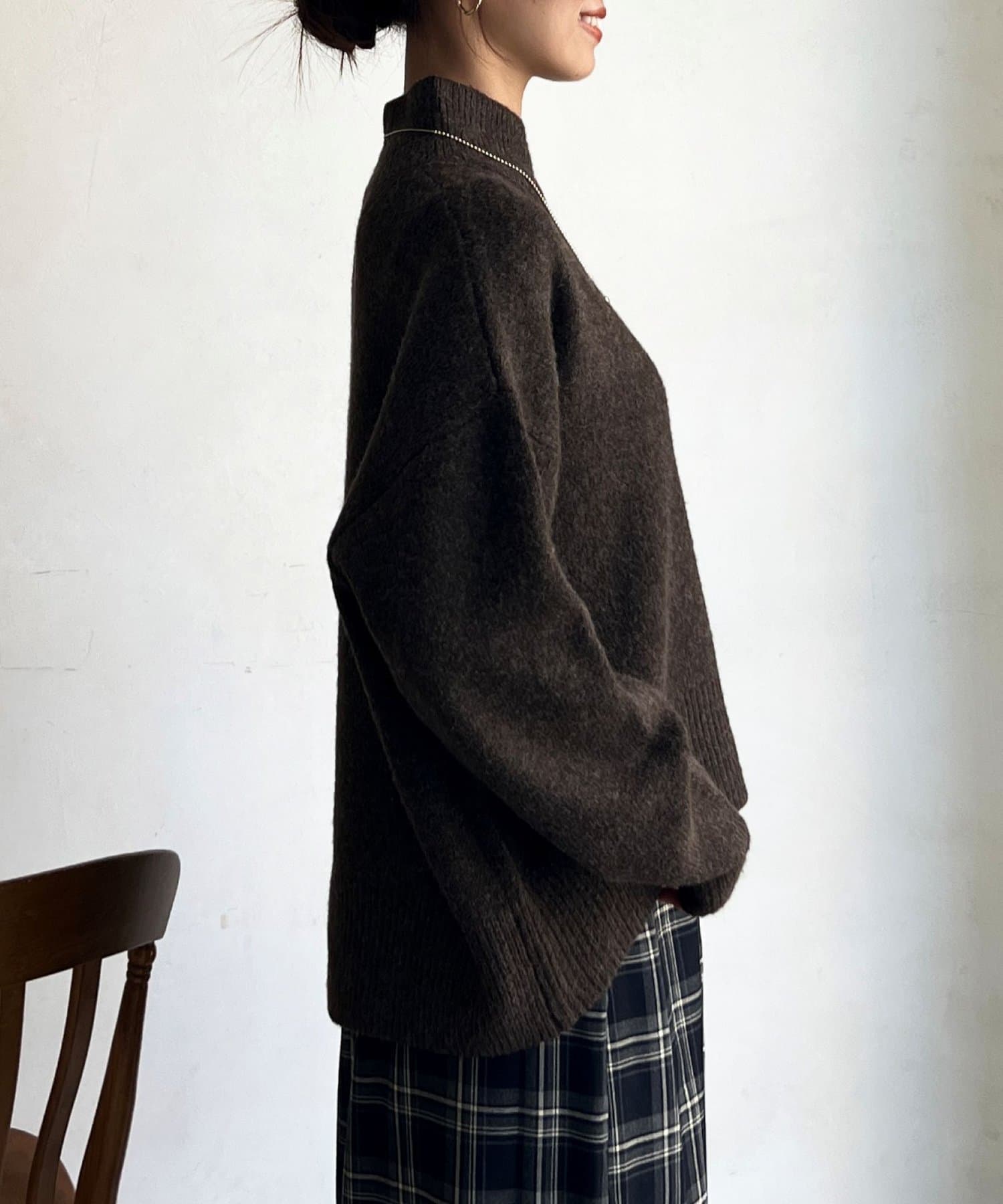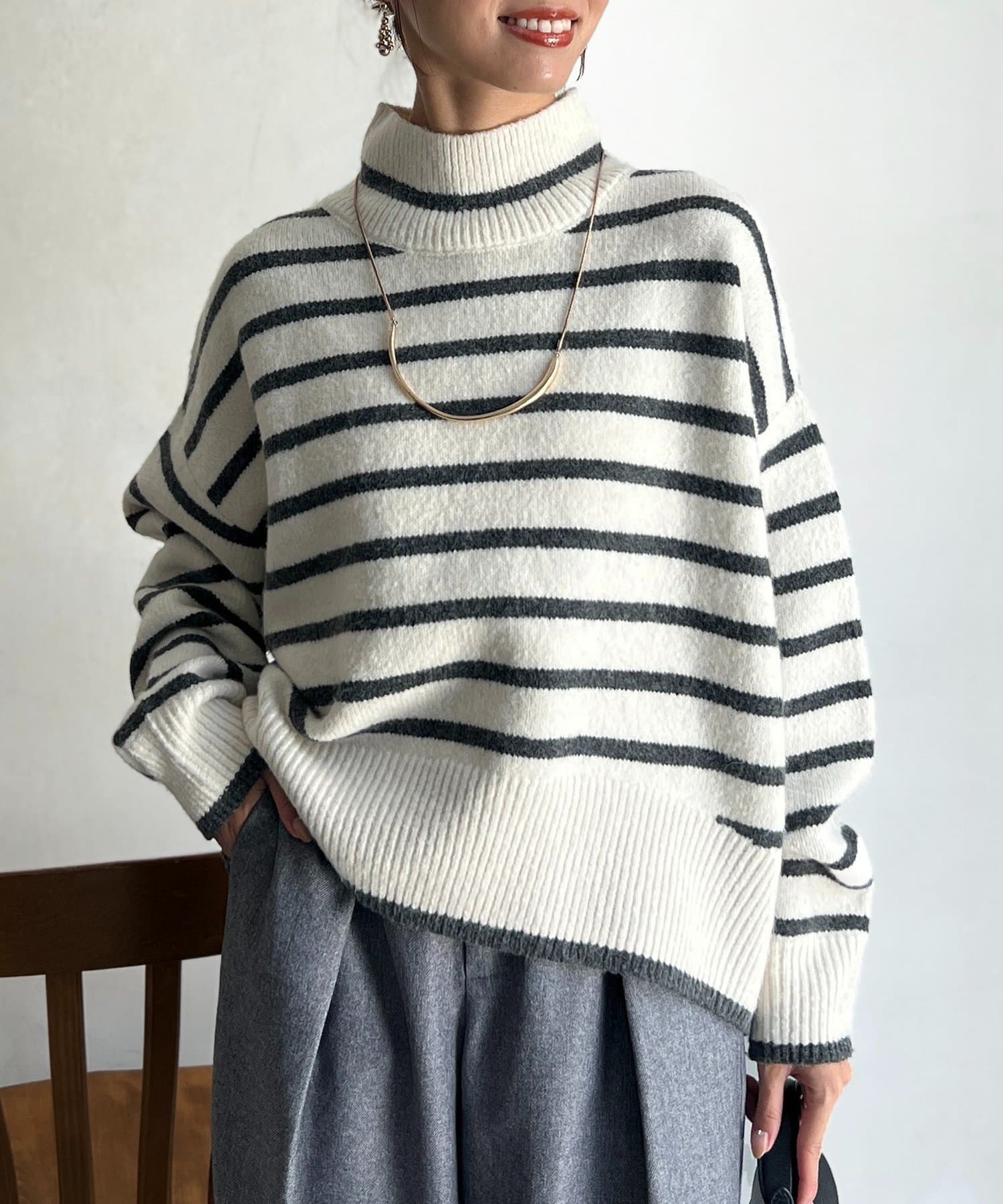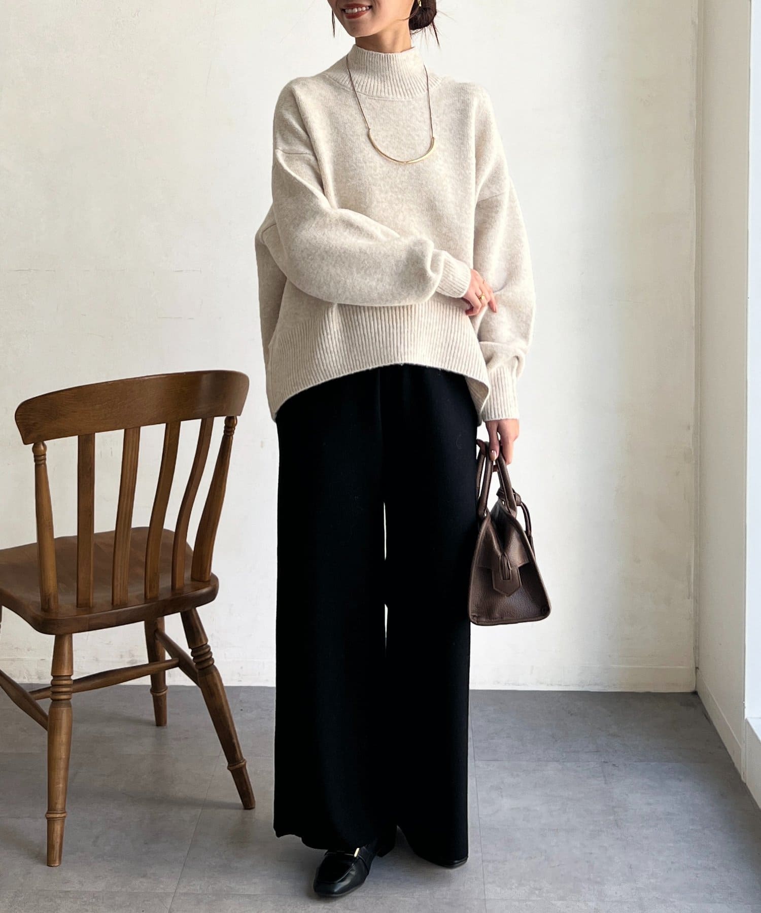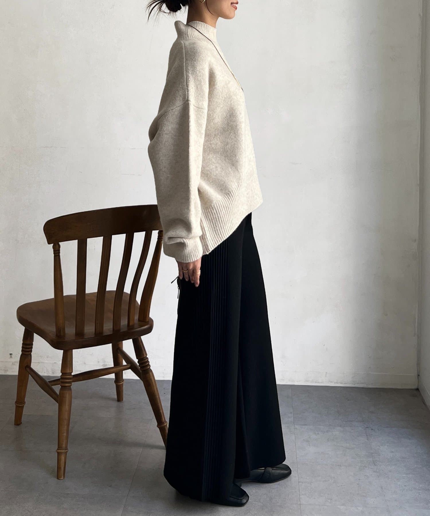 程よいゆるさにこだわった緩やかなハイネックはお顔周りもすっきりとした印象に♪