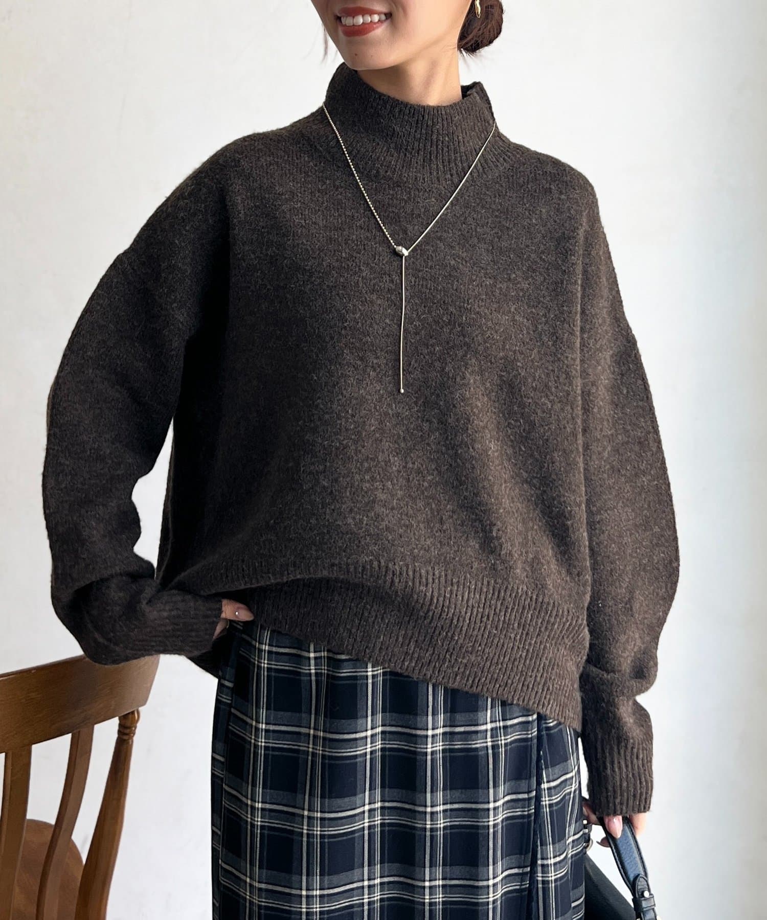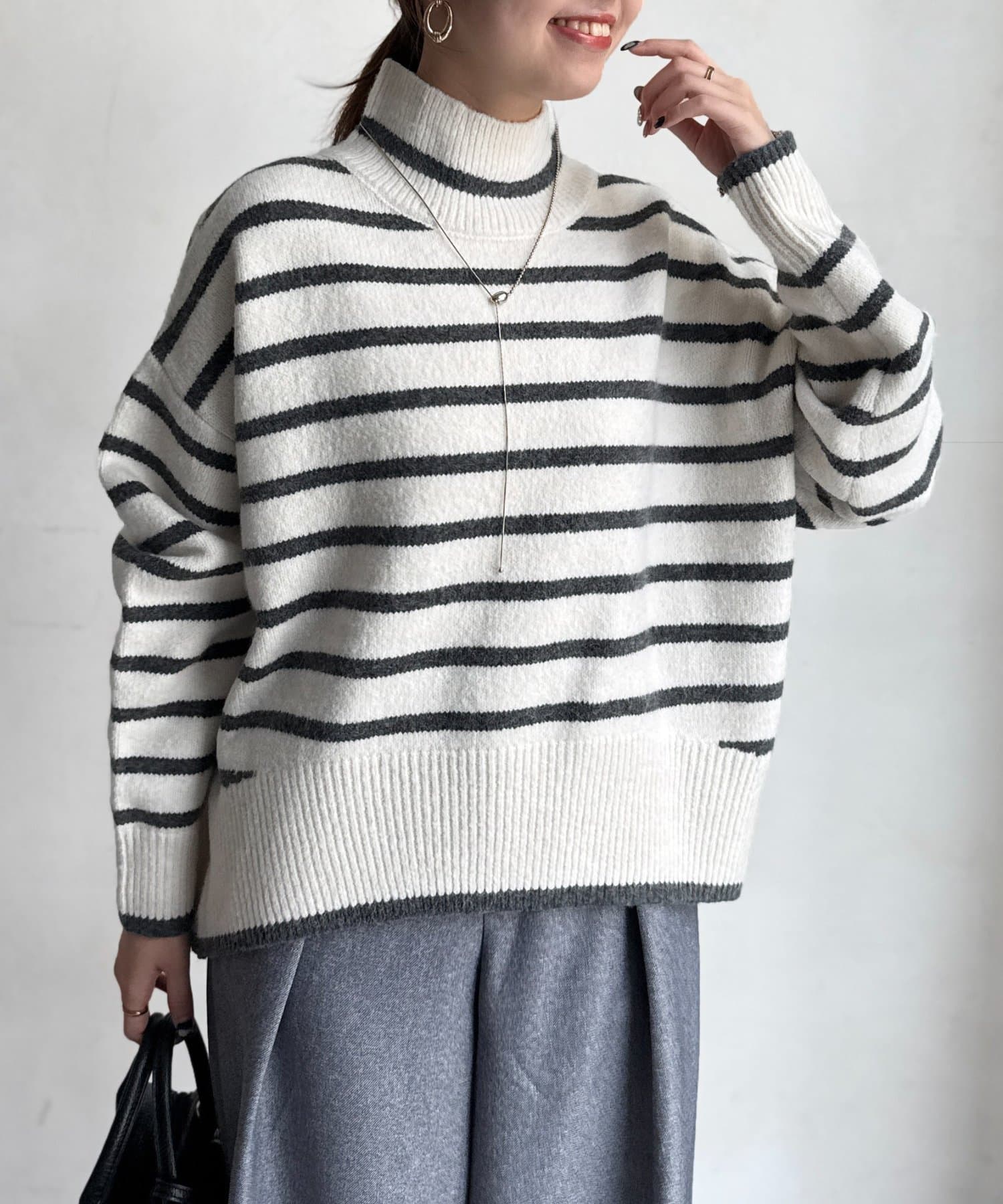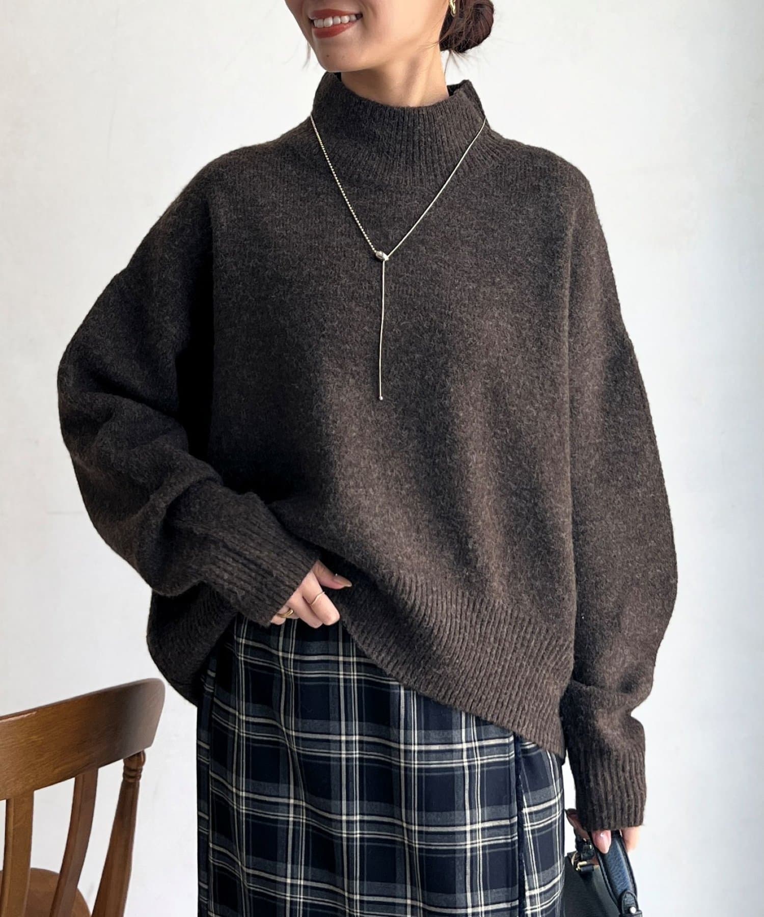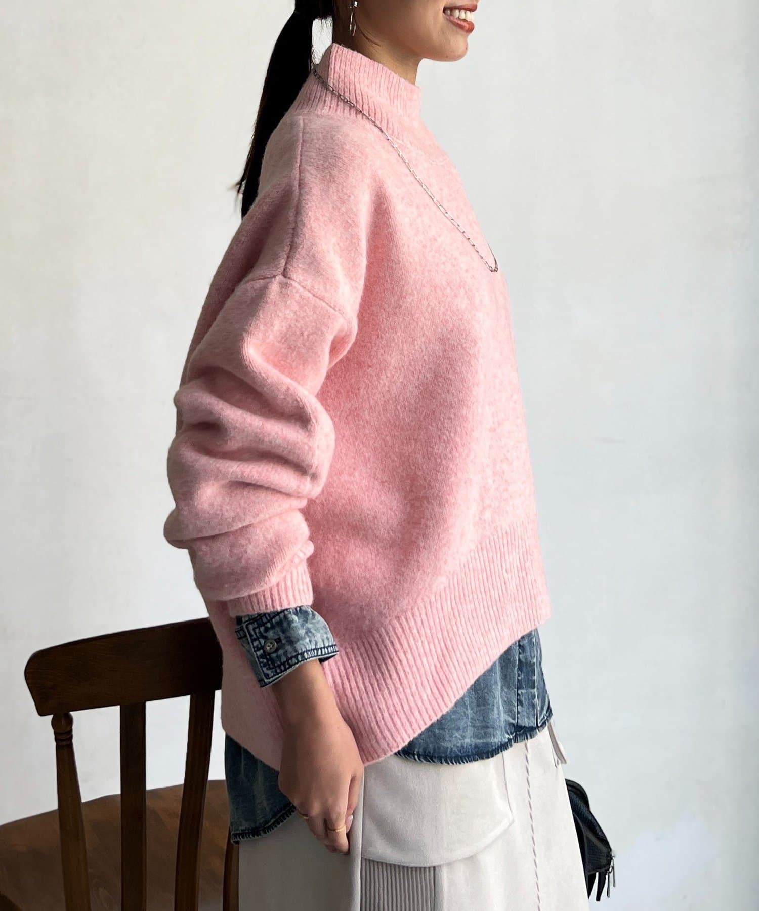 程よいゆるさにこだわった緩やかなハイネックはお顔周りもすっきりとした印象に♪