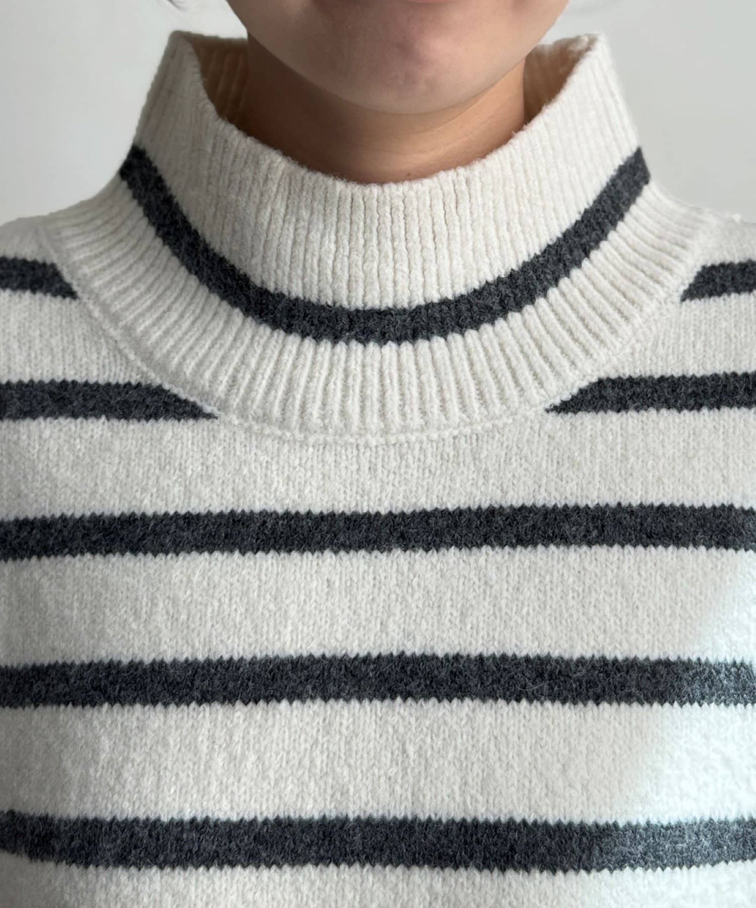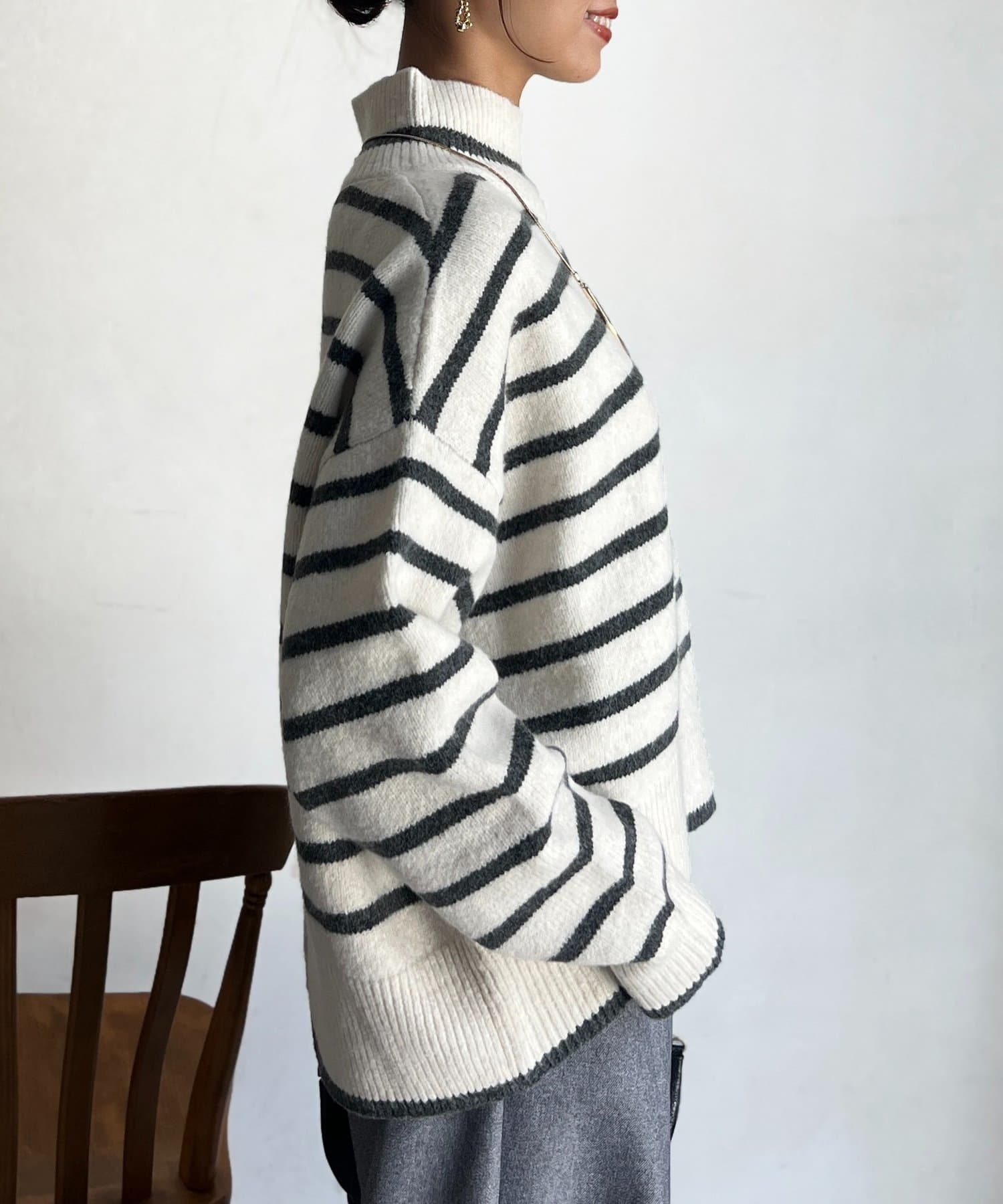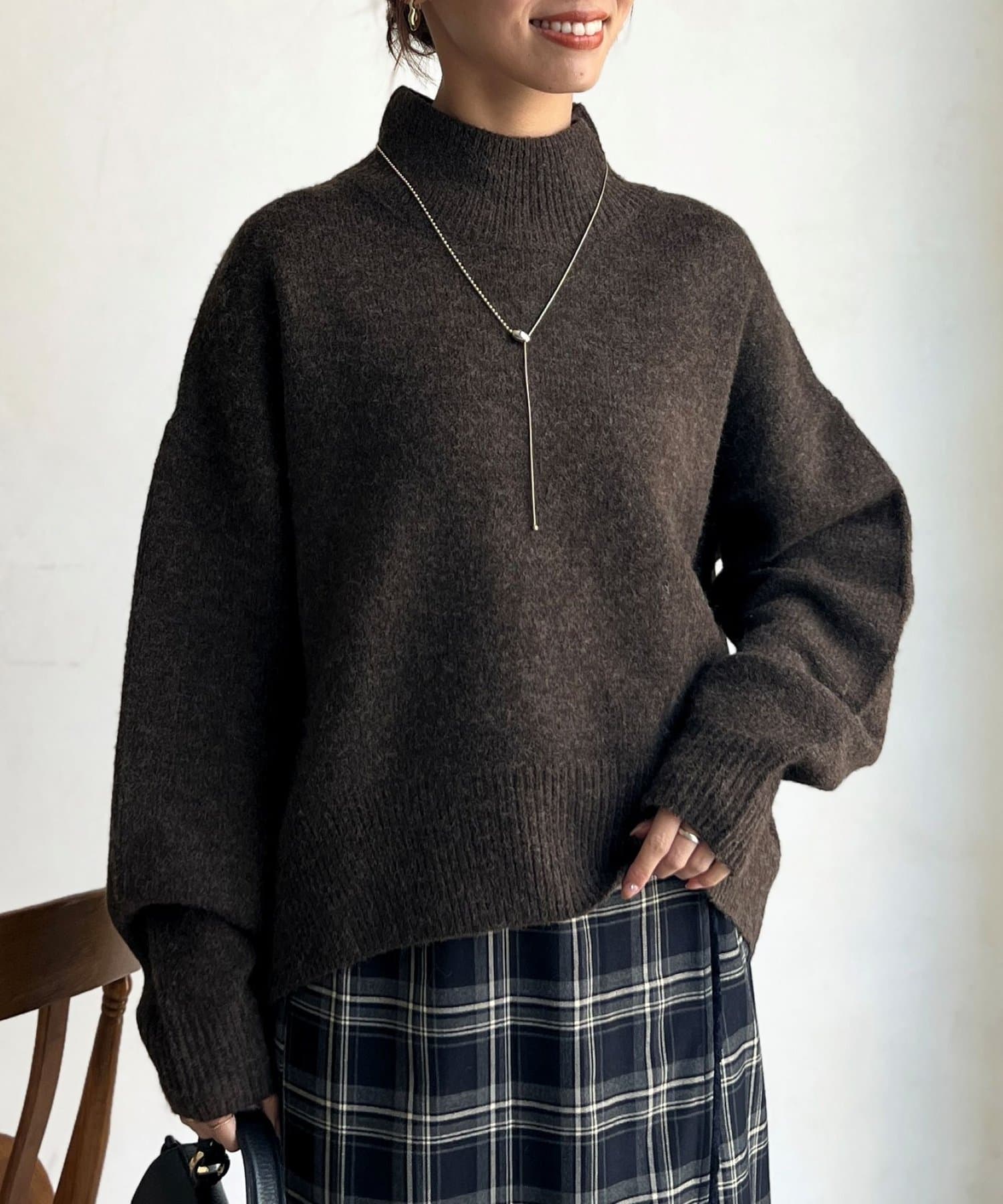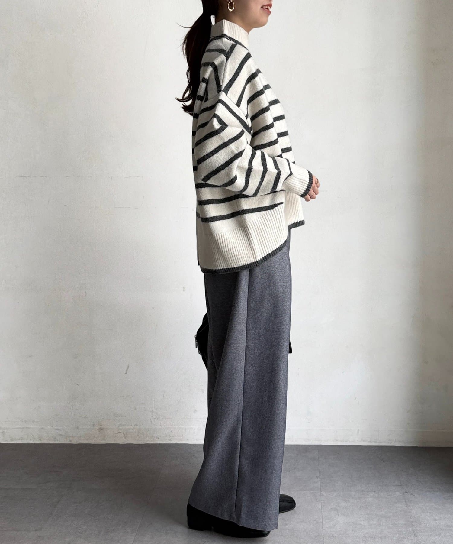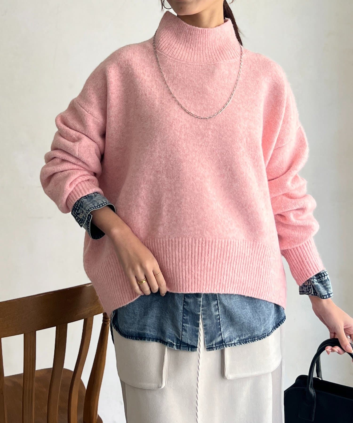 程よいゆるさにこだわった緩やかなハイネックはお顔周りもすっきりとした印象に♪