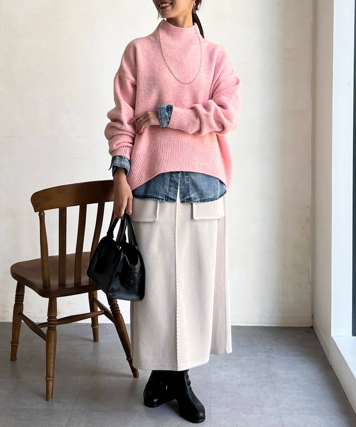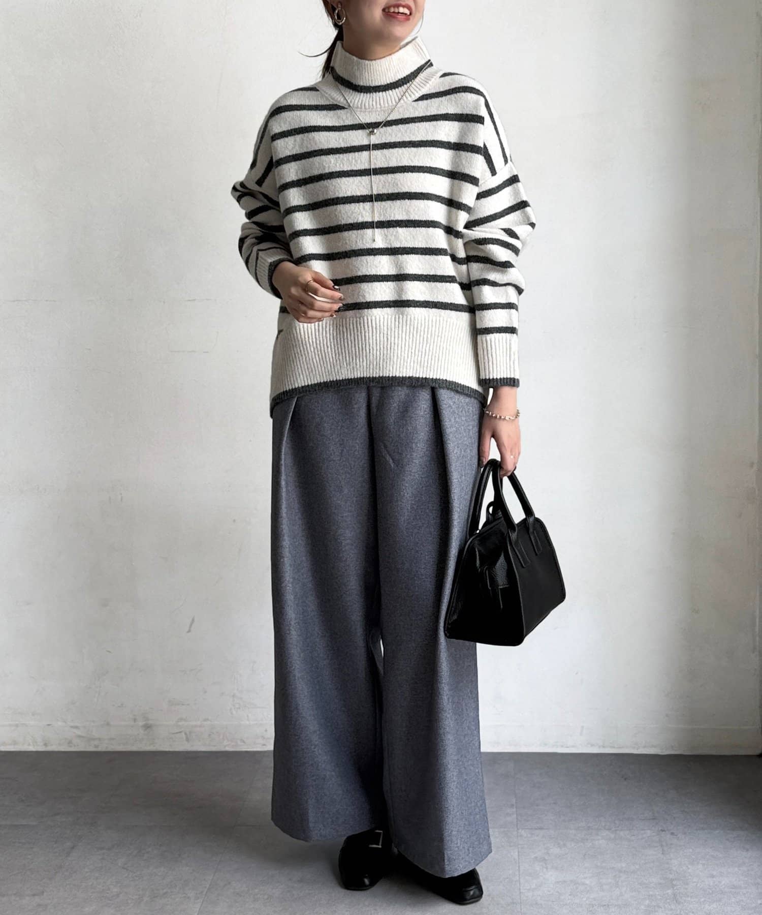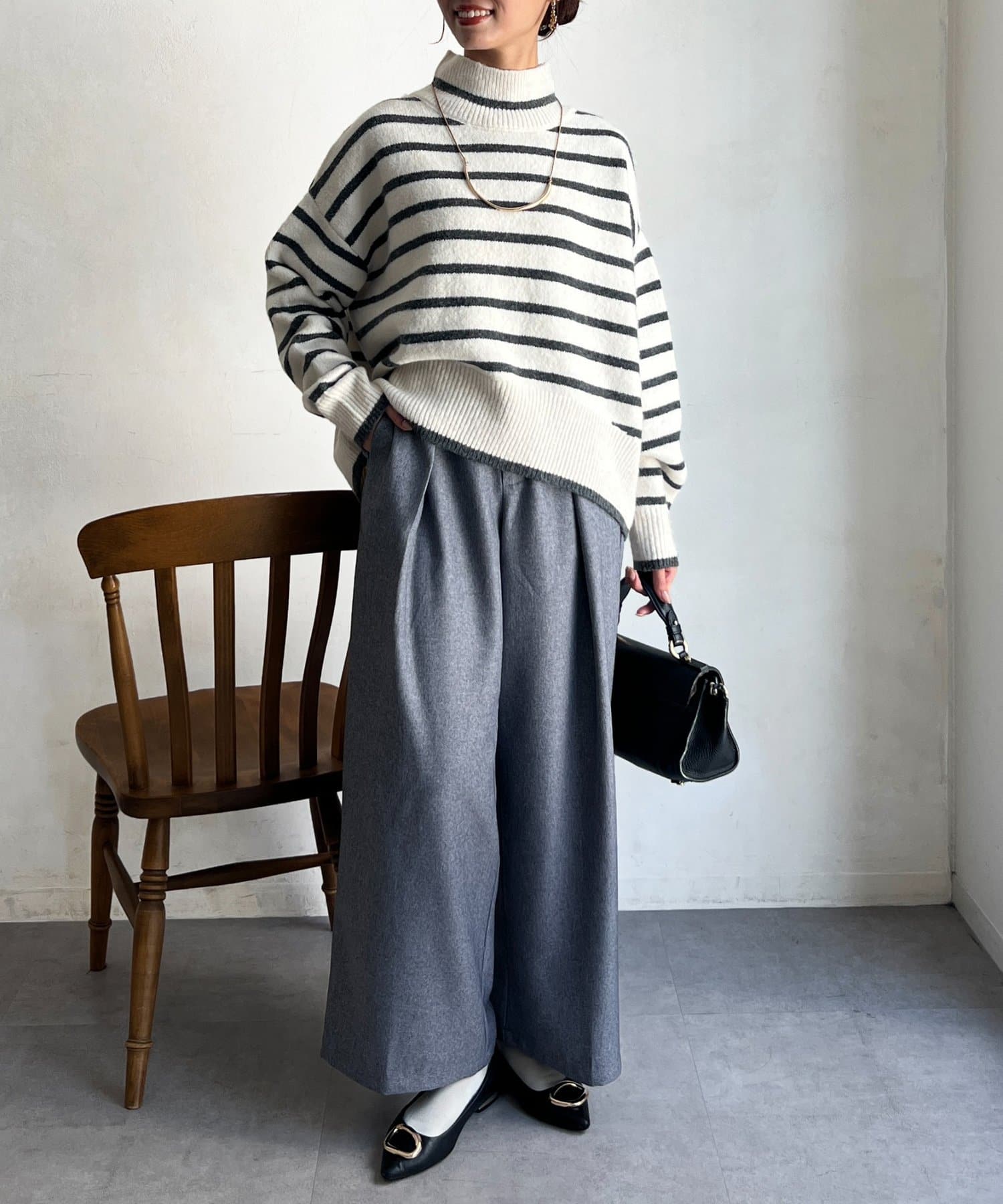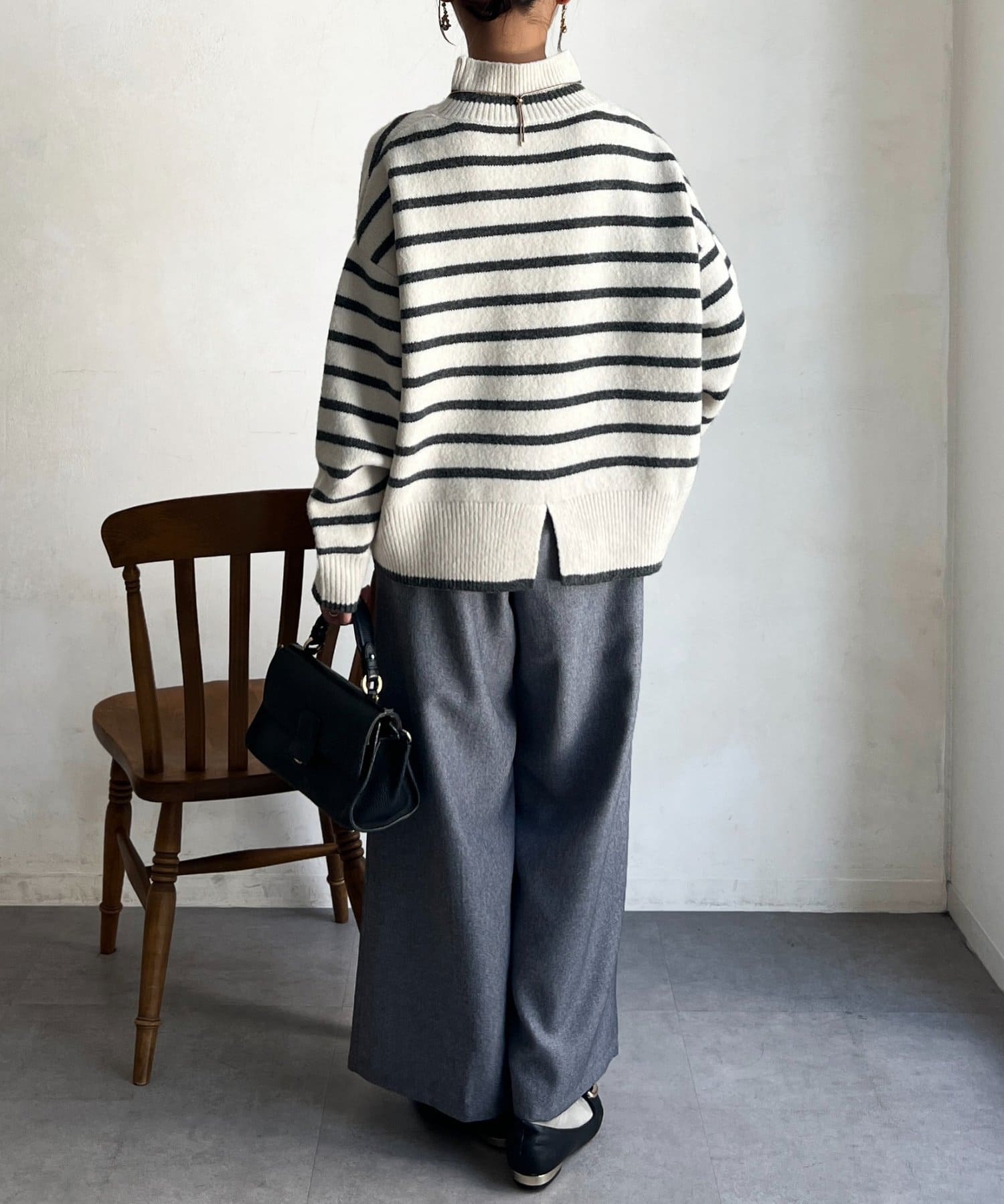 程よいゆるさにこだわった緩やかなハイネックはお顔周りもすっきりとした印象に♪