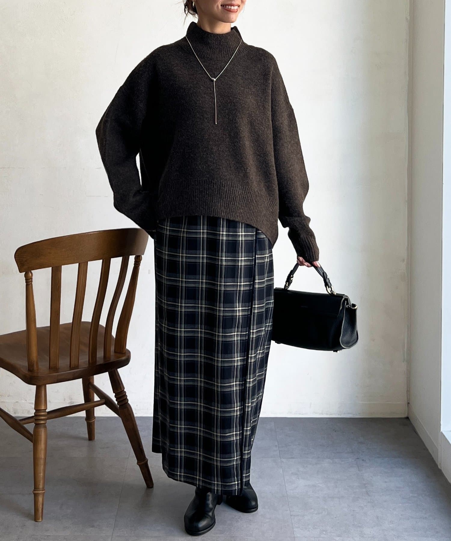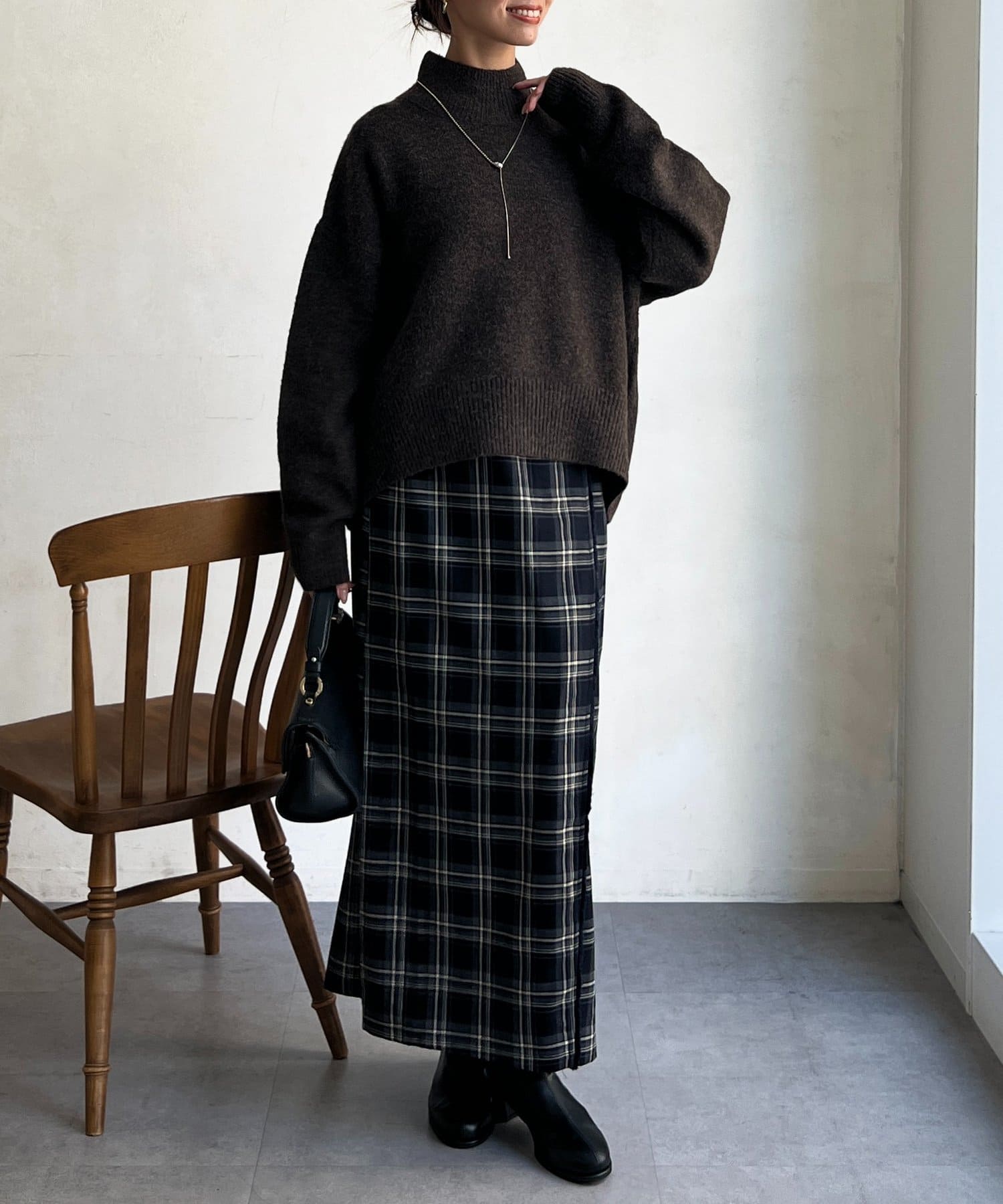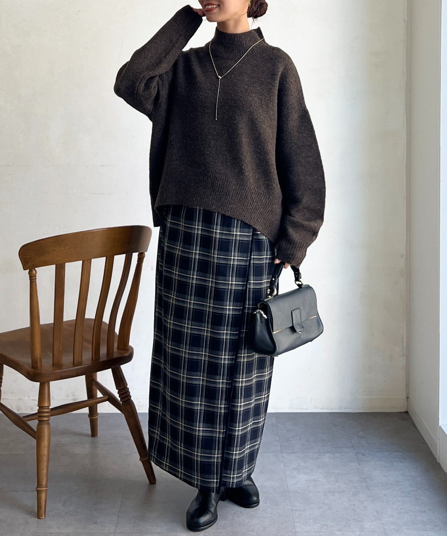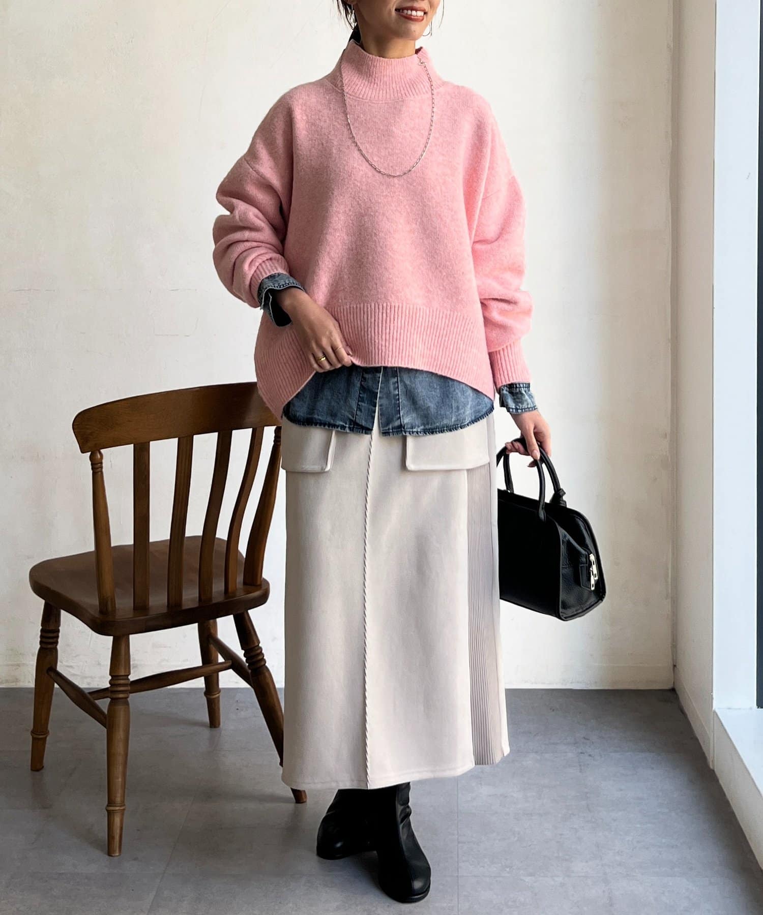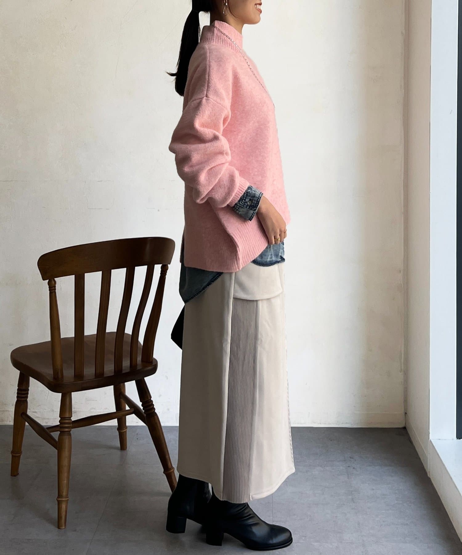 程よいゆるさにこだわった緩やかなハイネックはお顔周りもすっきりとした印象に♪