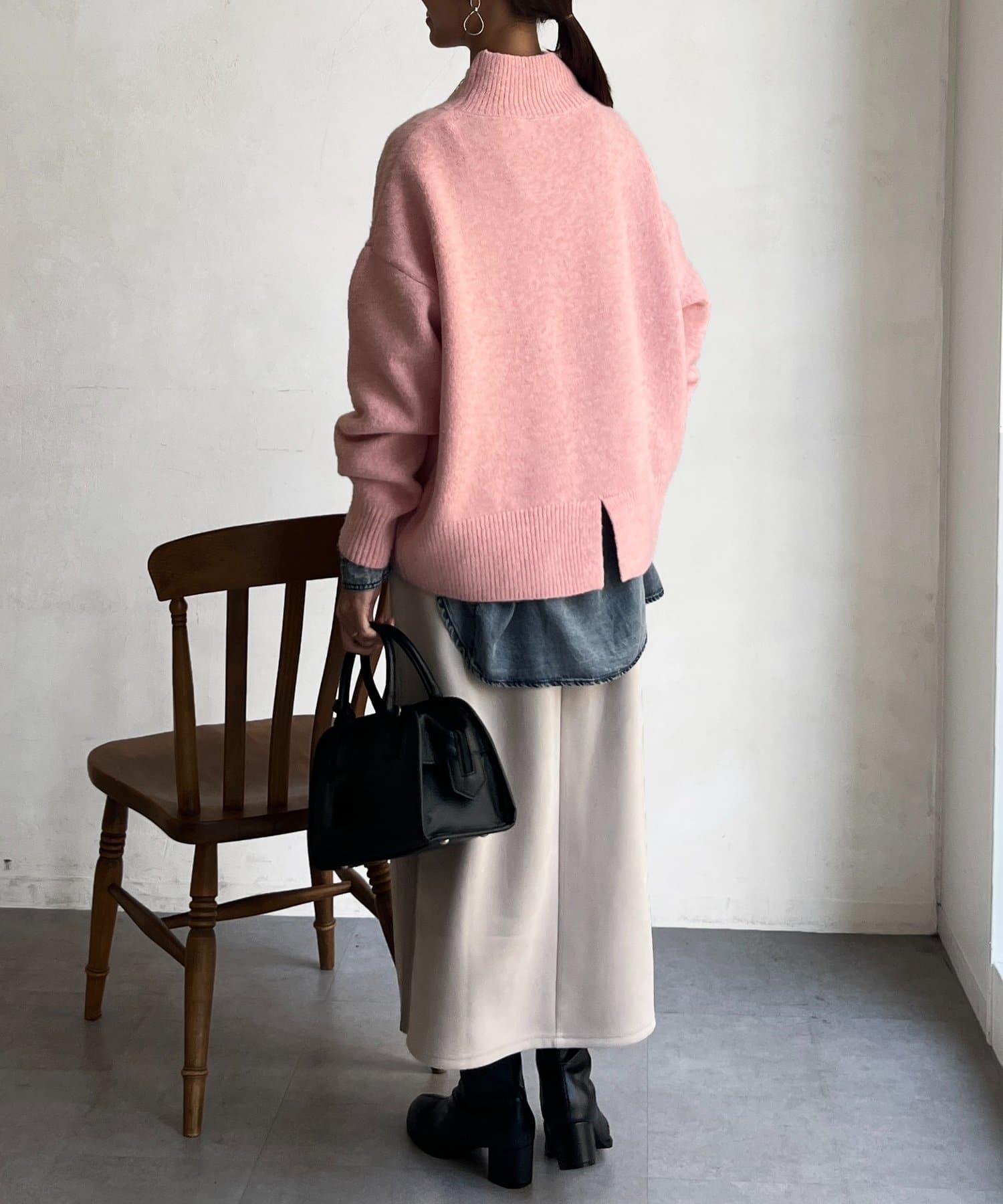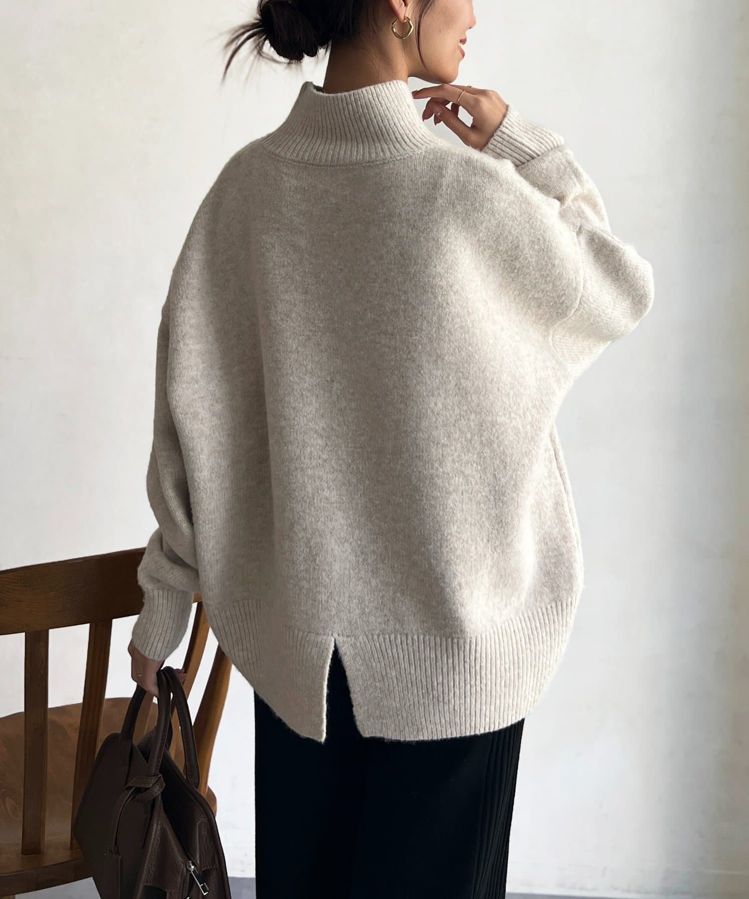 BACKスリットハイネックニットプルオーバー