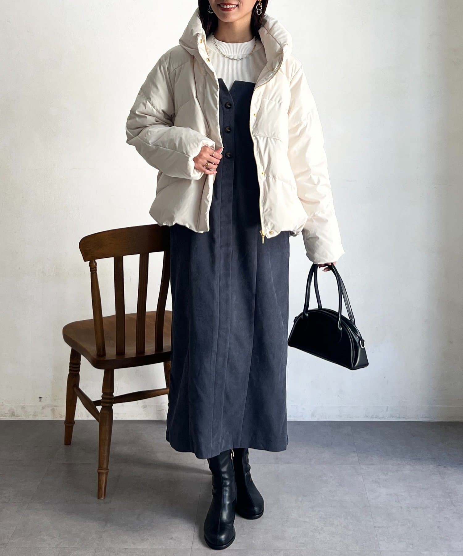 ボリュームネックのあったかショートダウン