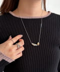 シンプルながらもさり気ない大小異なるモチーフがポイントになるネックレス。