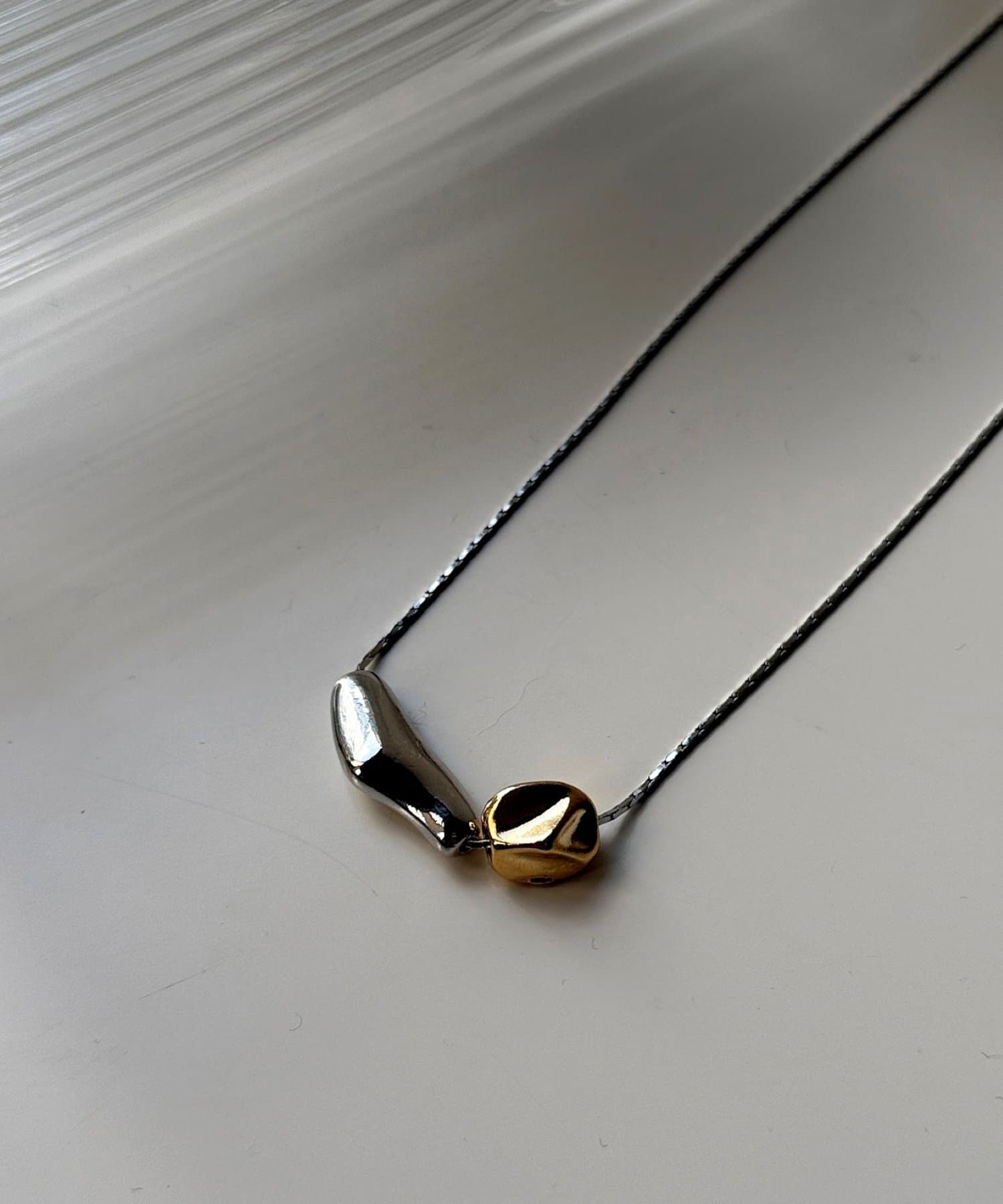 変形ぷっくり大小プレートネックレス